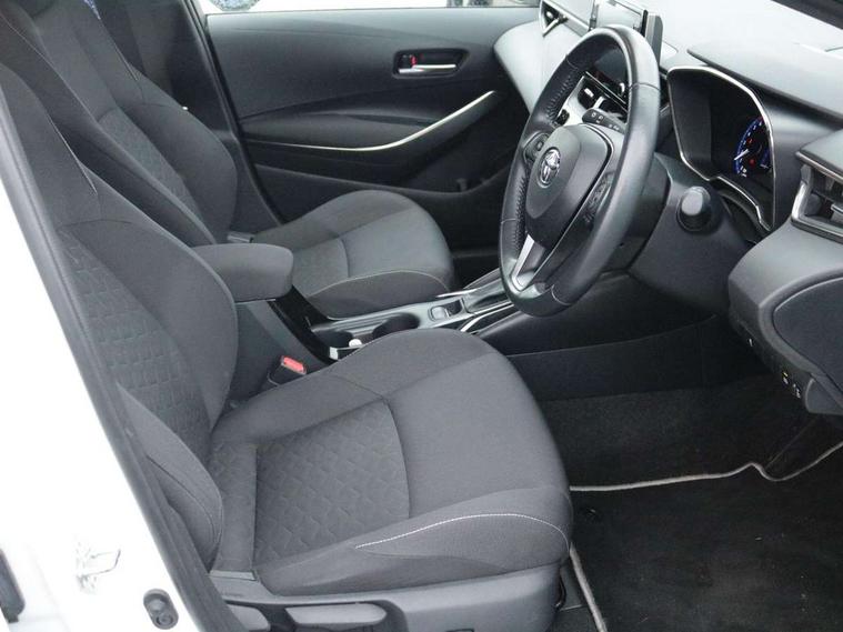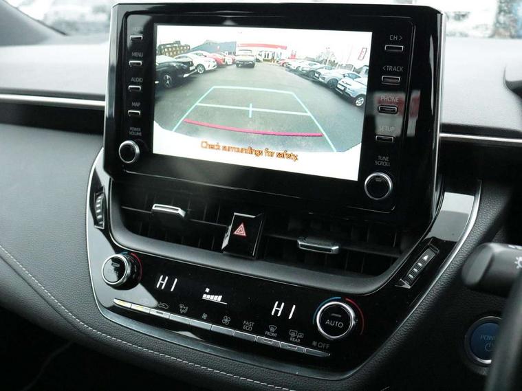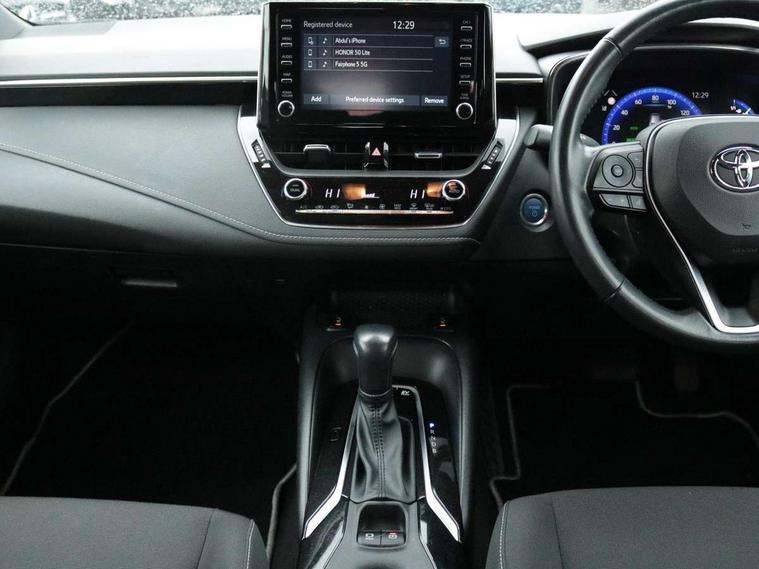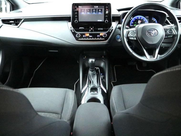 7" Multi information display screen, Bluetooth telephone connectivity, Connected car functionality upgrade, tracker, remote status and e-care, Dynamic radar cruise control (with RSA) including switch on steering wheel, E-call, Electrically assisted power steering, EV drive indicator, Lane Departure Alert (LDA) switch on steering wheel, Memory on adjustable speed limiter, Push button start, Reversing camera, Smartphone integration with Apple CarPlay and Android auto, Gasoline particulate filter, Vehicle Stability Control (VSC), 6 speakers, 8" Touchscreen with MM19 Multimedia system and voice recognition, AM/FM radio, DAB Digital radio, USB and Aux in connectors + 12V front outlet, Anti-jam protection on power windows, Auto up and down function on all power windows, Automatic headlights with high beam assist, Black metallic surround on lower front grille, Black toyota logo in front, Black window frames, Body colour rear spoiler, Body coloured bumpers, Body coloured door mirrors, Body coloured outside door handles, Follow me home headlights, LED daytime running lights, LED front fog lights, LED Headlights, LED High mounted stop light, Manual day/night rear view mirror, Power adjustable heated door mirrors, Power front windows, Power rear windows, Rain sensor, Rear side wing doors, Rear window defogger, Rear window wiper, Shark fin antenna, Time adjustment on intermittent wiper, Turning signal integrated indicators in door mirrors, Unique lower skirt, Unique side rocker with black insert, UV-filter on driver and passenger windows, 3 rear headrests, 3 seat bench in 2nd row, 3 spoke leather steering wheel + gear knob, 60/40 split folding rear seat, Adjustable speed limiter switch on steering wheel, Audio, multimedia and telephone switches on steering wheel, Boot light, Centre room light, Clean air filter, Driver and front passenger personal light, Driver and passenger assist grip, Driver and passenger sun visor with mirror and light, Dual zone automatic air conditioning with ECO mode switch, Fabric armrests, Front and rear cup and bottle holders, Front door pockets, Front head restraints, Front passenger seat, Heated driver and front passenger seats, Illuminated entry system in room lamp, ISOFIX seat fixing (2 fixings on rear outer seats), Leather gear shift with satin chrome on gear shift console, Manual height adjustable for driver and front passenger seat, Parcel shelf, Passenger seat back pocket, Pollen filter, Power adjustable lumbar support on driver seat, Power window switches with satin chrome inserts, Quilted fabric upholstery with grey stitches seats, Rear armrest with 2 cupholders, Rear passenger coat hooks (2), Satin chrome inside door handles, Shopping bag hooks in luggage compartment, Sliding armrest on centre console box, Slow opening glovebox with lights, Tilt/telescopic steering column, Voice recognition switch on steering wheel, Whiplash Injury Lessening (WIL) feature (active headrest) for seats, Toyota safety sense 2 pack - Corolla, 3x3 point rear seatbelts, Adjustable driver and front passenger seat belt extender to top anchor point, Anti lock braking system + Electronic brake force distribution, Brake assist function, Child locks on rear doors, Downhill Assist Control (DAC), Electronic parking brake, Emergency brake light signal (EBS), Front passenger airbag on/off switch, Front seatbelt reminder, HAC - Hill start assist control, Rear seat belt reminder, Seatbelt pretensioners and force limiters, Supplemental restraint system (SRS) 7 airbags - dual driver, dual side curtain, side impact and driver knee airbags, Traction control, Tyre pressure warning system, Acoustic vehicle alert system (AVAS), Alarm with motion sensor and immobilizer, Remote central locking + deadlocks, Satin chrome dash trim, Soft touch texture on upper dashboard, Unique wheel finish with red wheel cap,
