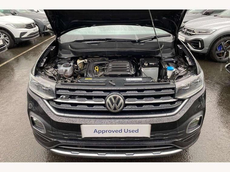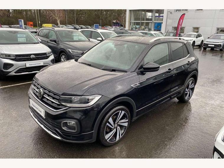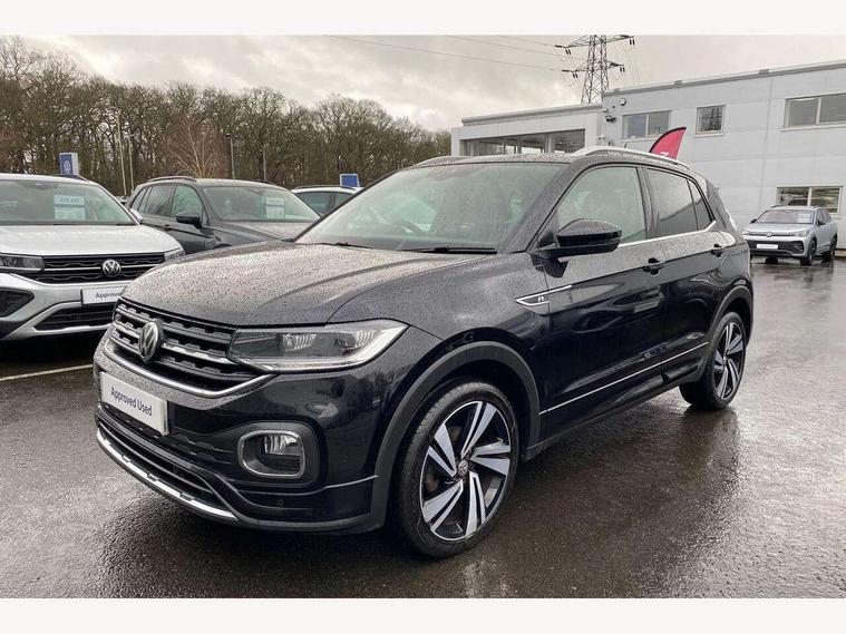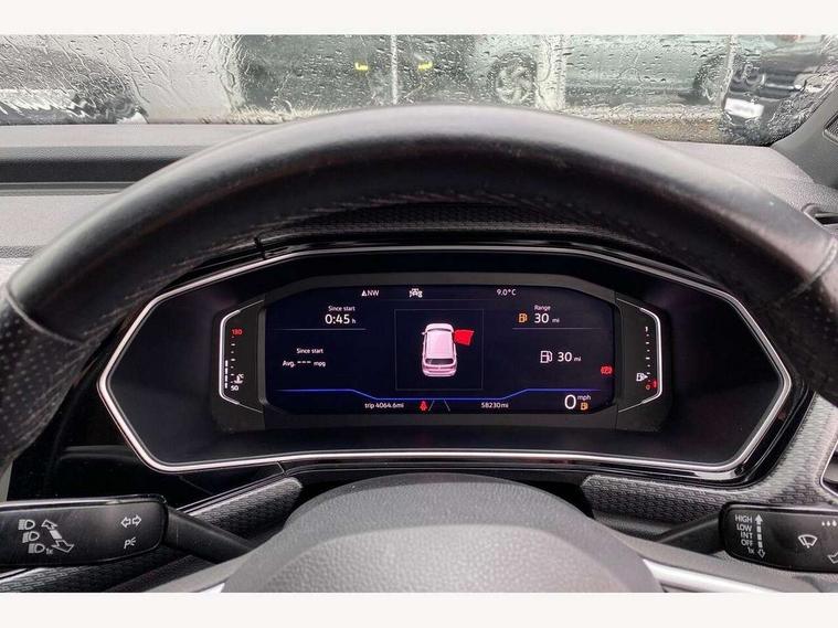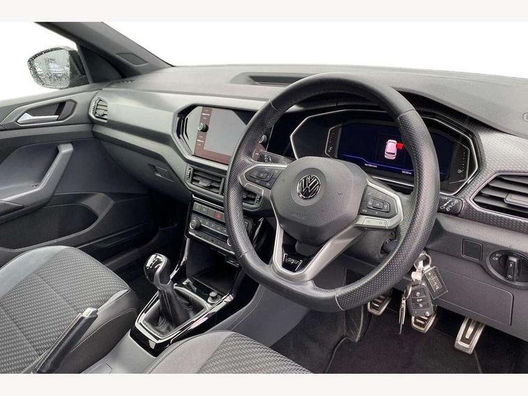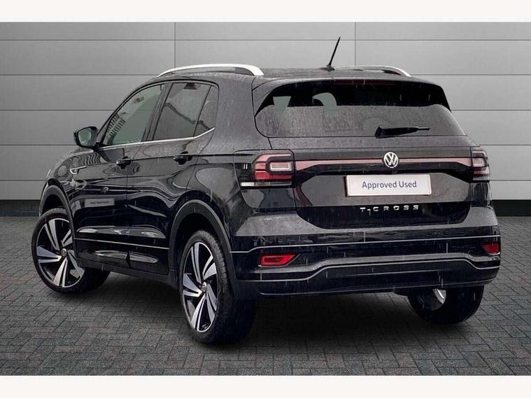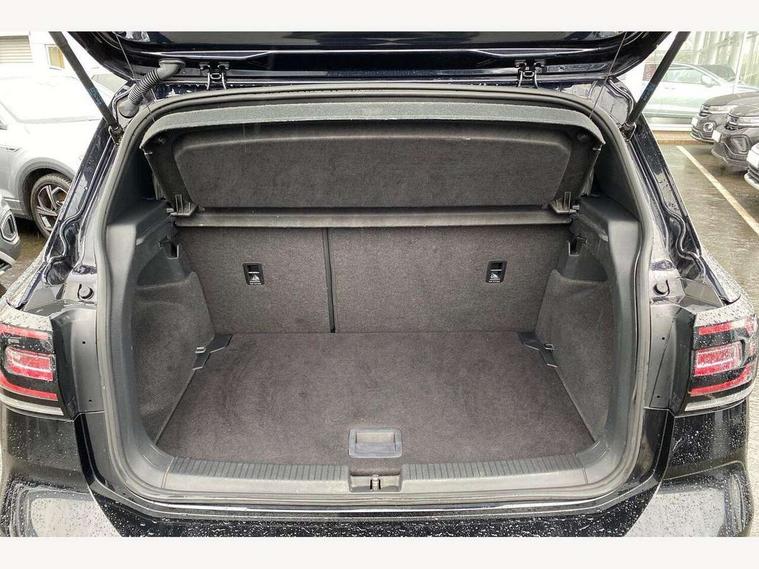 'Lights On' Reminder warning buzzer, Active Info display 10.25" high resolution TFT dash display with customisable menu and information, Adaptive cruise control including front assist, radar sensor controlled distance monitoring system, city emergency braking, cruise control/speed limit, Car net app connect combined functionality of Apple CarPlay, Android Auto and MirrorLink, USB connection, audio and voice control, Driver alert system, eCall emergency call system, Lane assist, Multifunction computer with visual gear change recommendation for fuel consumption, Power assisted speed sensitive steering, Speedo, rev counter, electronic odometer, trip, service interval display, exterior temperature and fuel gauge, Stop/start system, Warning sound and light for doors and tailgate open, Warning sound and light for front seatbelts unfastened, We Connect Go Dongle, Battery regeneration during braking, Misfuel prevention device, 2x USB connection with USB charging sockets and in rear centre console, Premium USB cable for Apple or Android smartphone compatibility, Automatic dimming interior rear view mirror, Automatic hazard lights activation under emergency braking, Body colour door handles, Body colour rear roof spoiler, Body coloured bumpers, Dusk sensor + automatic driving lights, Front and rear electric windows, Front fog lights with static cornering function, Galvanised body, Heated rear window, High level 3rd brake light, LED dipped and main beam headlights with automatic range adjustment including separate unique signature LED daytime running lights, Lower door sills and door pillars in black, Manual coming/automatic leaving home lighting function, Radiator grille with high gloss surface and chrome strip, Rain sensor, Rear lights incorporating LED technology, Rear tinted glass 65% approx light absorbing from B pillar backwards, Rear window aerial, Rear windscreen washer and wiper with interval delay, Reflectors in all doors, Silver roof rails, Stainless steel door sill protection, Tailgate with integrated roof spoiler, Unique R Line badging, Windscreen wipers/ intermittent wipe + 4 position delay, 12V Accessory socket in centre console, 2 Front and rear reading lights incorporating LED technology, 2 Zone electronic climate control with automatic air recirculation, 3 rear head restraints and 3 rear three point seat belts with ECE label, 60/40 split folding rear seat backrest, Aluminium pedals, Black headlining, Carbon flag cloth upholstery, Drawer under drivers seat, Driver and front passenger sunvisor with vanity mirror, Driver's sunvisor with ticket holder, Dust and pollen filter, Front + rear carpet mats, Front centre armrest with storage compartment and two rear air vents, Front seat back storage pockets, Front seat R Line logo with rear seat backrest, Front sports seat with height and lumbar adjustment, Glovebox, Heating and fresh air system with 4 stage blower, Height/reach adjust steering wheel, Instrument lighting white adjustable panel illumination, Interior light with delay, Isofix child seat preparation for 2 rear child seats, Leather trimmed three spoke multifunction steering wheel with contrast stitching and aluminium inserts with R Line logo, Luggage compartment cover, Luggage compartment lighting, Moveable and foldable Rear bench seat, Storage compartment in drivers and front passengers door, Variable boot floor, Discover Navigation infotainment system pack - T cross, R Line styling pack - T-cross, Anti-lock Braking System (ABS) with Hydraulic Brake Assist (HBA), Automatic post collision braking system, Driver and front passenger safety-optimised head restraints, Drivers and Front Passengers airbags with front passengers airbag deactivation switch, ESC with EDL, ASR, EDTC and trailer stabilisation function, Extended and proactive pedestrian protection, Front and rear curtain airbags, Front seat side impact airbags, Height adjustable 3 point automatic front seatbelts with pretensioners, Hill start assist, Pre crash preventive occupant protection, Rigid safety cell with front and rear crumple zones, Tyre pressure loss indicator, Volkswagen roadside assistance, Alarm with interior protection and deactivation via infotainment system, Child security locks in rear doors, Remote tailgate unlocking using key fob, Race decorative inserts in dash and doors, 18" Nevada black alloy wheels + anti theft wheel bolts,