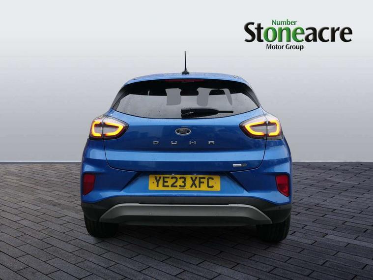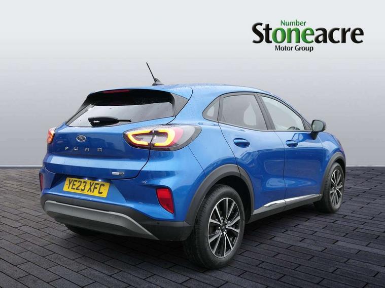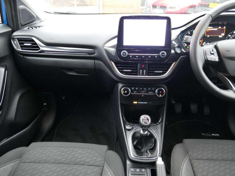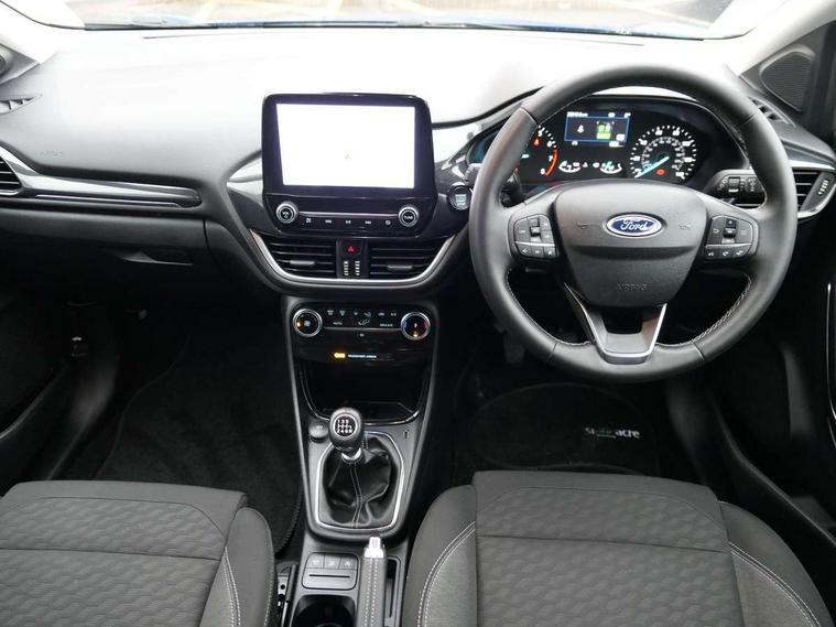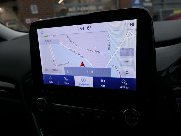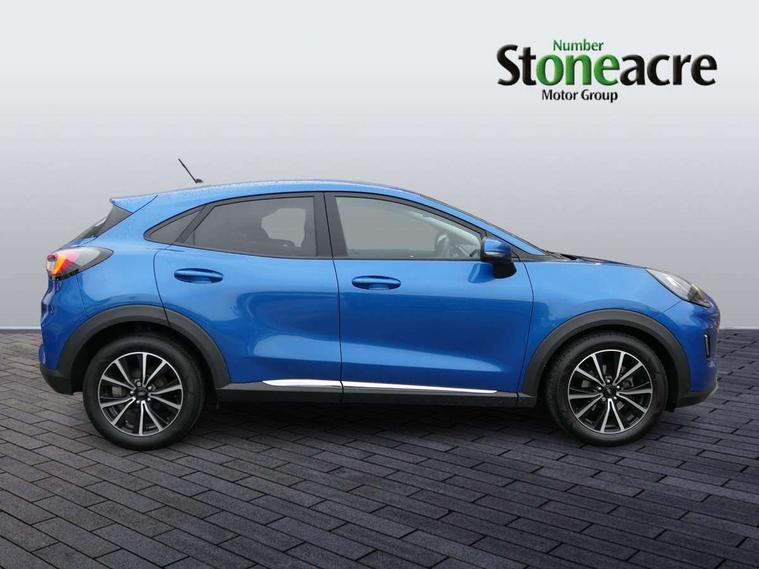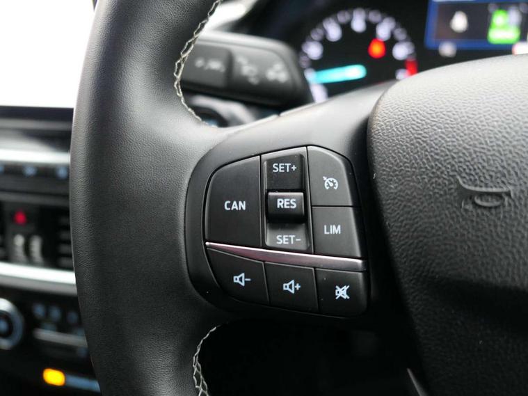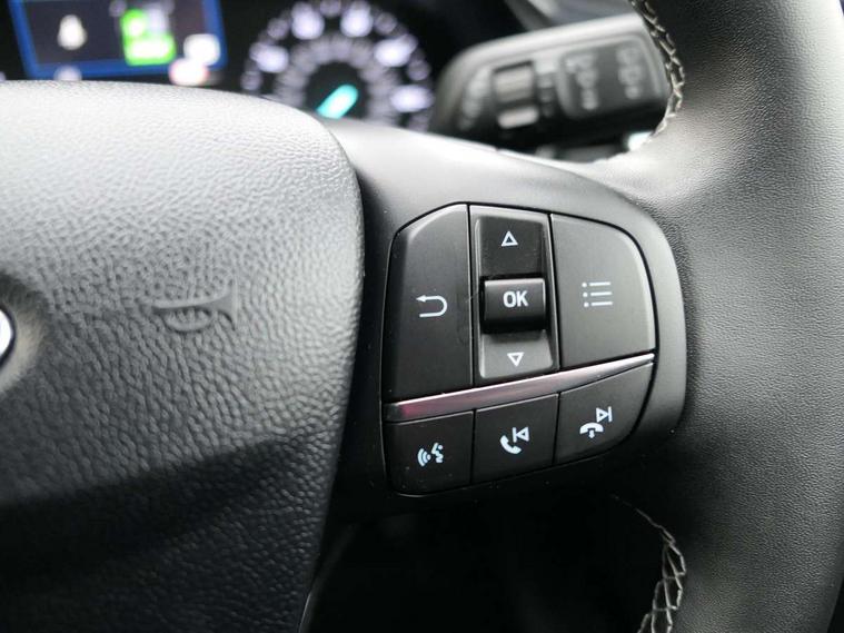 Driver impairment monitor, Emergency call service, Ford easy fuel, Lane keeping aid with lane departure warning, Power assist steering, Power start button, Rear parking sensor, Selectable drive modes(Normal, Eco, Sport, Slippery and Trail), Speed sign recognition, Standard suspension, Automatic headlights with auto high beam, Automatic rain sensing wipers, Body colour rear spoiler, LED rear lamps, Power foldable heated door mirrors with puddle lamps, Projector headlamps with LED day time running lights and front fog lamps, Quickclear heated windscreen, Rear side wing doors, Rear wiper, Third brake light, 3 seat bench in 2nd row, Centre console with armrest and stowage, Electronic automatic temperature control (EATC), Ford megabox extended bootspace, Front and rear head restraints, Front floor mats, Manual 2 way passenger seat adjustment, Manual 4 way driver seat adjust with lumbar adjustment, Sensico leather steering wheel/gear knob/handbrake, Single front passenger seat, Titanium cloth upholstery, Ford SYNC 3 navigation pack - Puma, 3 rear seatbelts, Child safety lock, Electronic stability control (ESC) and hill start assist, Pedestrian/cyclist detection & post-collision braking, Pre collision assist system, Tyre pressure monitoring system (TPMS), Thatcham alarm, 17" 10 spoke absolute black machined finish alloy wheel,