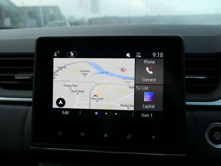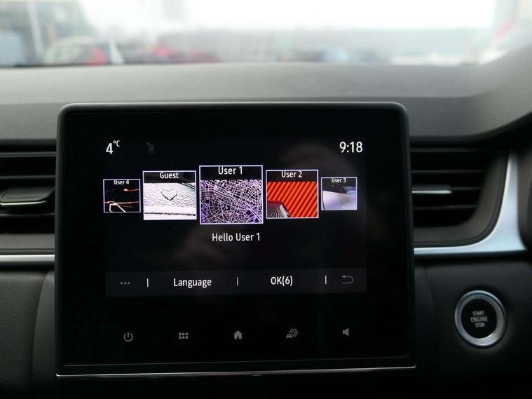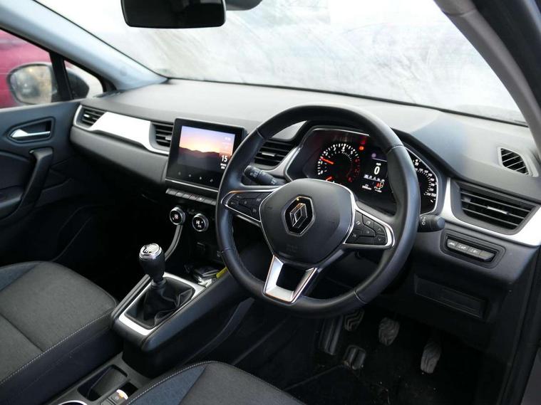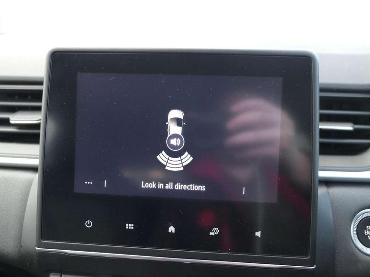 4.2" TFT Driver information display, Cruise control + speed limiter, EasyLink 7" touchscreen with navigation, google search and traffic information, Eco mode, Gear change indicator, Lane departure warning system, Lane keep assist, Rear parking sensor, Renault automatic emergency assist, Smartphone integration compatible with Apple CarPlay and Android Auto, Traffic sign recognition with over speed prevention, Trip computer, Variable assistance power steering, DAB Radio with Bluetooth and USB, 2 reverse gear LED lamps and 1 rear LED fog lamp in the bumper, Automatic front wipers with rain sensors, Automatic headlights, Black side door protection, Body colour door handles, Body coloured bumpers, Body coloured door mirrors, Day time running light, Drivers one touch window with anti-pinch feature, Extra tinted glass in rear windows and tailgate, Front and rear electric windows, Full LED headlights, Grey front and rear skid plate, LED front fog lights, LED high level brake lights, LED turn indicators on door mirrors, Rear side wing doors, Rear wiper, 12V Accessory socket, 3 rear headrests, 60/40 split and fixed base rear seat bench, Automatic climate control with one touch demist function and air quality regulator, Centre console storage tray, Cloth upholstery, Front head restraints, Glovebox, Heating system with pollen filter, Height adjustable driver's seat, Height/reach adjust steering wheel, ISOFIX child seat fixing points on rear outermost seats, Middle console with armrest and storage, Rear air vents, Single front passenger seat, Sliding rear bench, Standard bulb in front roof lights, Synthetic leather steering wheel, 3 rear seatbelts, ABS+EBA, Distance warning alert, Driver and front passenger, side, head and curtain airbags, Driver height adjustable seat belt, Electric parking brake, Electronic stability control, Front and rear no seatbelt warning sound, Front dash warning indicator in case of heavy braking, Front driver and passenger side airbag deactivation, Hill start assist, Rear door and window child locking function for rear door, Tyre pressure warning light, Anti drill door locks and locking fuel cap, Central door locking, Deadlocking system, Hands free keycard with push button and start/stop function, RAID (Renault Anti-Intruder Device) automatic door locking, Black soft touch dashboard, 17" Ediris diamond cut alloy wheels,