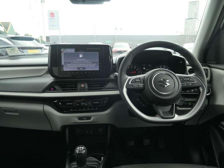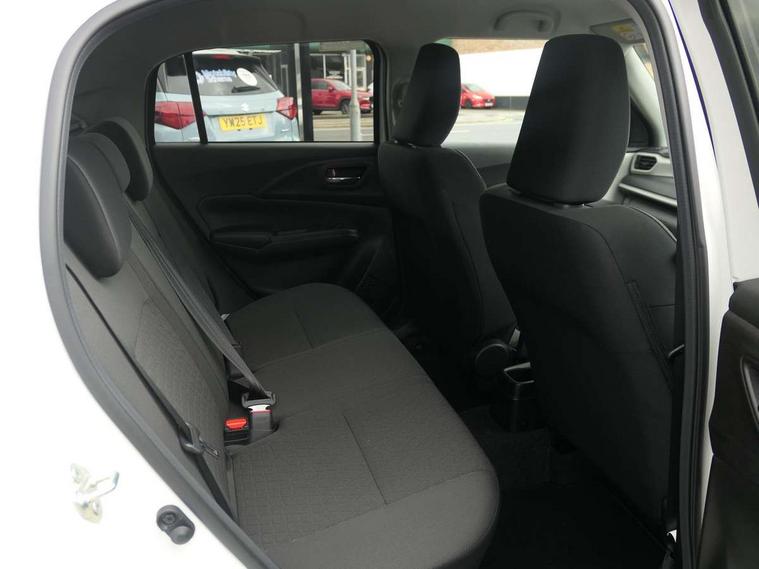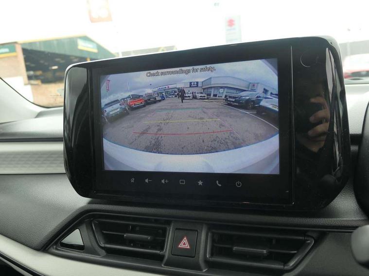 Adaptive cruise control, Automatic start/stop system, Blind spot monitoring, Colour LCD information display, Digital clock, Driver monitoring system, eCall, Fuel consumption display (average/instantaneous) and range display, Intelligent speed control support, Lane departure prevention, Lane departure warning system, Lane keeping assist (LKA), Low fuel level warning light, Navigation system, Outside temperature display, PAS, Rear cross traffic alert, Rear parking camera, Rear parking sensors, Remote fuel cap release, Smartphone integration with Apple CarPlay and Android auto, Suzuki connect, Tailgate, Traffic sign recognition, Weaving alert, 4 speakers + 2 tweeters, 9-inch infotainment display, Auxiliary input socket, Bluetooth audio streaming, DAB Digital radio, Steering wheel audio controls, USB Type A and C, 'Guide me home' headlamps, 1 speed with intermittent rear wiper + washer, 2 speeds front wiper with intermittent + washer, Automatic headlights, Black coloured A & B pillars, Black Upper and lower front grille, Body colour door mirrors and handles, C pillar trim moulding, Electric door mirrors, Electric front windows, Electric rear windows, Green tinted glass, Heated door mirrors, High beam assist, LED daytime running lights, LED High mounted stop light, LED position lamps, LED projector headlamps, LED rear combination lamp, Manual headlamp level control, Rain sensor, Rear fog lights, Rear privacy glass, Rear side wing doors, Rear spoiler, Side spoiler, 1 cup holder in rear, 12V Accessory socket in front console, 2 cup holders in front, 2 Isofix seat anchors, 3 bench rear seats in 2nd row, 3 rear head restraints, 3 spoke leather covered steering wheel, 60/40 split rear seats, Accessory socket, Centre console storage, Centre lower box, Child seat tether anchorages x 2, Chrome handbrake release button, Chrome interior door handles, Cloth upholstery, Door pockets with bottle holder, Driver/passenger sunvisors with ticket holders + vanity mirrors, Front cabin lights, Front headrests, Front map light, Front passenger side assist grip, Glovebox, Heated front seats, Heater, Height adjustable driver's seat, Luggage area lamp, Manual air conditioning with digital control panel, Material door trim ornament, Parcel shelf, Passenger seat back pocket, Pollen filter, Single front passenger seat, Tilt adjustable steering wheel, Tilt/telescopic adjustable steering wheel, 3 point ELR seatbelts for centre seat, 3 point ELR seatbelts front and rear, ABS+EBD+Brake assist, Curtain airbags, Driver airbag, Dual sensor brake support, ESP + traction control, Front and rear seatbelt reminder, Front passenger airbag, Front passenger airbag deactivation, Front seatbelt pretensioners with force limiters, Hill hold control, Rear child proof door locks, Rear seatbelts with pre-tensioners and load limiters, Side airbags with incorporated into front seats, Tyre pressure indicator, Deadlocks, Freewheeling key cylinders, Immobiliser, Keyless entry and start, Light - on and Key in reminder, Locking wheel nuts, Remote central locking, Painted instrument panel ornament, 16" Painted alloy wheels, Emergency flat tyre repair kit,