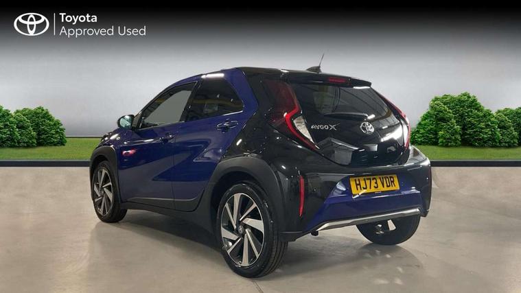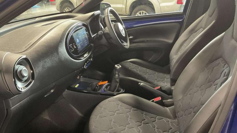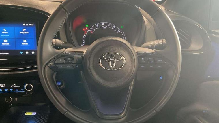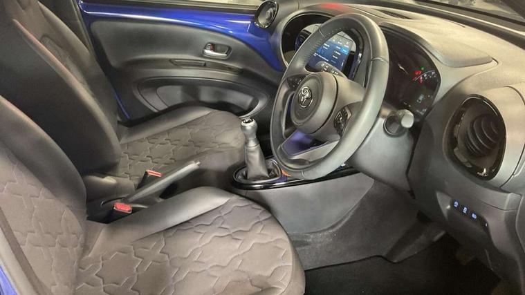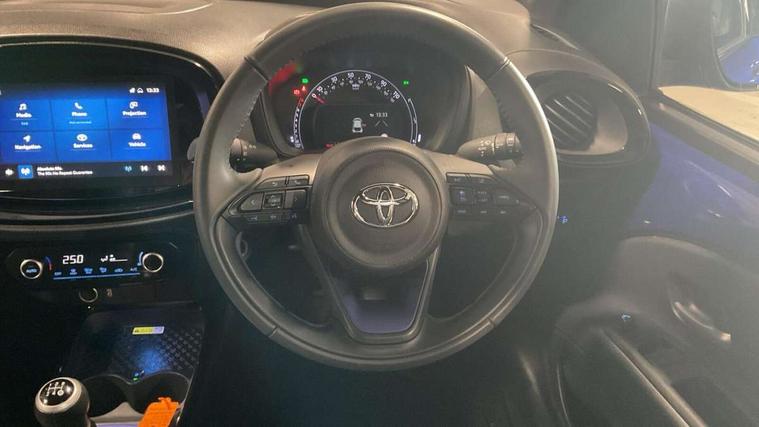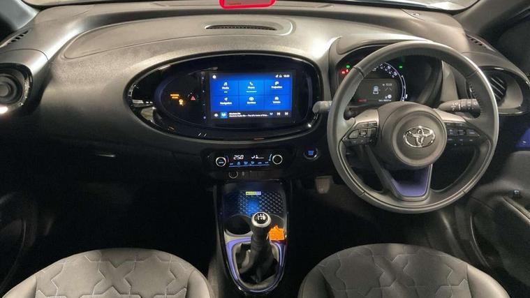 4.2" TFT colour screen, Adjustable speed limiter, Analogue speedometer, Bluetooth connectivity, Digital tachograph, Driver attention alert system, eCall emergency call system, Electric power steering, Front and rear parking sensors with auto brake, Intersection turn assist, Key reminder warning, Noise reduction kit, Pre collision system with emergency steering assist, Remote boot door release on key, Reversing camera with static guide lines, Smart entry and push button start, Speed limit display, Start and stop, Wireless charger, Wireless Smartphone Integration includes Apple CarPlay and Android auto, Vehicle Stability Control (VSC), 4 speakers, 9" HD multimedia display touch screen with Toyota smart connect, DAB digital audio broadcast, USB connector, Auto headlights, Auto wipers, Automatic headlights cut-off, Automatic high beam On/Off switch, Bicycle towing hook, Black fog light surrounds, Black side protection mouldings, Black wheel arch mouldings, Body colour door handles, Body coloured front bumper, Boot door scuff plate, Eclipse black rear bumper, Electric heated door mirrors, Follow me home headlights, Front and rear underruns in silver, Front fog lights, Front power windows, Gloss black door mirrors, Gloss black upper front grille, Headlight cut-off reminder, LED daytime running lights guide, LED front light guide, LED High mounted stop lamp, LED projector headlights, Manual day/night rear view mirror, Manual headlight levelling, Pagoda roof, Power adjustable door mirrors, Power back door, Privacy glass, Rain sensor, Rear combination lights LED bulb type, Rear side wing doors, Rear windscreen defogger, Rear windscreen wiper, Remote hazard lights system, Short antenna, Variable intermittent windscreen wipers, 12v power outlet - front, 2 seat bench in 2nd row, 3 spoke leather steering wheel, 50/50 split folding rear seat, Adhesive roof headlining, Adjustable speed limiter switch on steering wheel, Audio and telephone switches on steering wheel, Auto air conditioning, Black roof lining, Body colour satin anodised insert on steering wheel, Boot light, Centre room light, Chrome interior door handles, Chrome surround on air conditioning buttons, Clean air filter, Console box storage, Floor mats, Front and rear cup holders, Front head rest deco art, Front head restraints, Height adjustable driver seat, Intelligent adaptive cruise control switch on steering wheel, ISOFIX child restraint system on rear seats, Lane departure alert switch on steering wheel, Leather gearshift knob, Light blue ambient lighting in centre console, Manual tilt steering wheel, Manually reclining and sliding driver seat, Manually reclining and sliding front passenger seat, Multimedia switches on steering wheel, Partial synthetic leather upholstery, Pollen filter, Rear door pockets, Rear head restraints, Satin silver insert on gear shift knob, Single compartment glovebox with lights, Single front passenger seat, Soft tonneau cover, Sun visors with mirror on driver and passenger side, Voice recognition switch on steering wheel, Toyota safety sense pack - Aygo X, Anti lock braking system + Electronic brake force distribution, Child safety door lock, Emergency brake light signal (EBS), Hill start assist control (HAC), Passenger airbag on/off switch, Seat belt reminder for front and rear seats, Supplement restraints system (SRS) - 6 airbags, Traction control, Tyre pressure warning system, Immobiliser, Remote power door locks, Black wheel centre caps, Tyre repair kit,