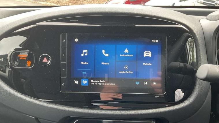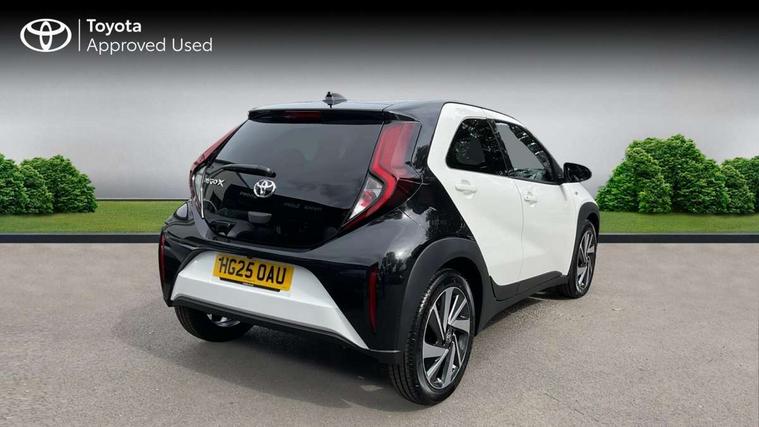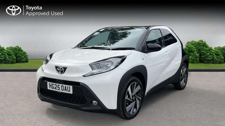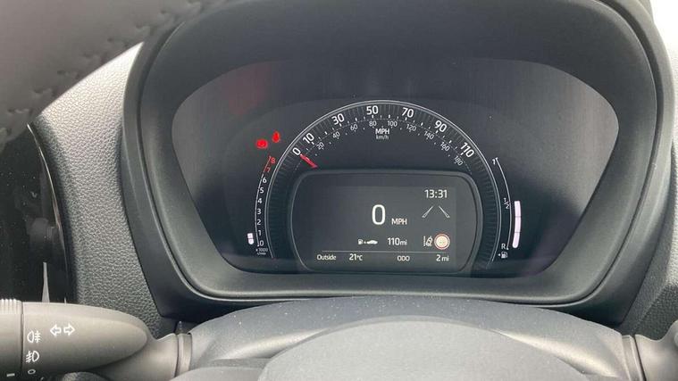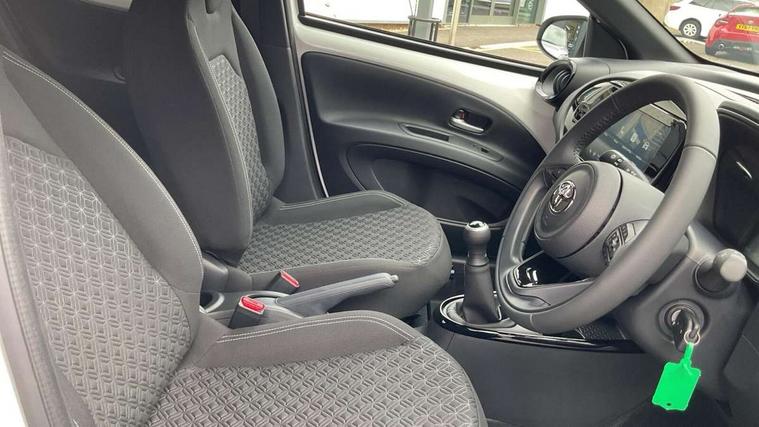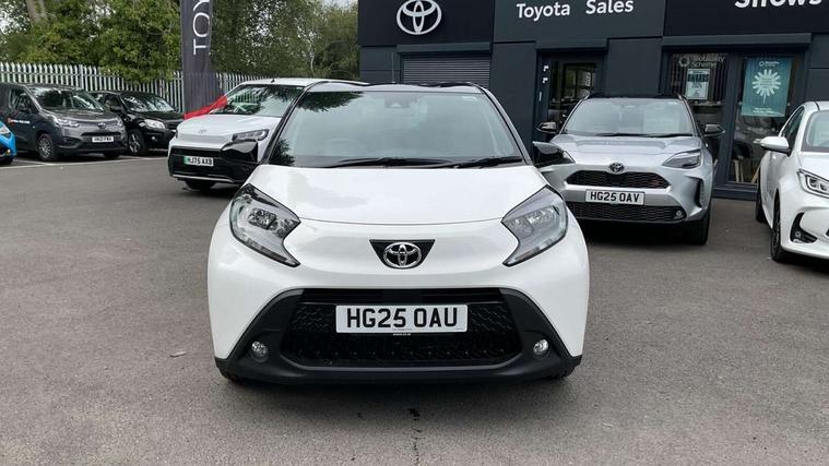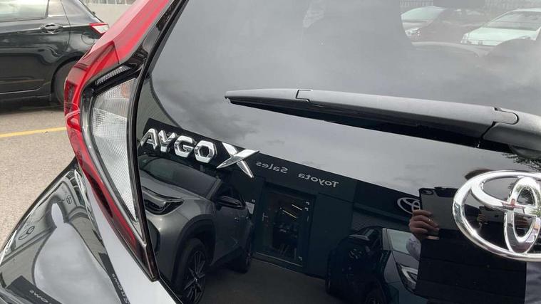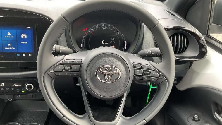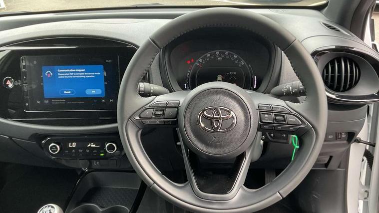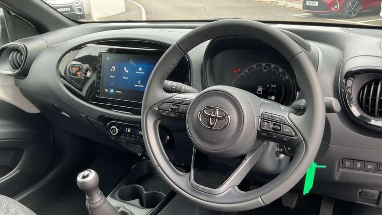 4.2" TFT colour screen, Adjustable speed limiter, Analogue speedometer, Bluetooth connectivity, Digital tachograph, Driver attention alert system, eCall emergency call system, Electric power steering, Intersection turn assist, Key reminder warning, Noise reduction kit, Pre collision system with emergency steering assist, Reversing camera with static guide lines, Smart phone integration with Apple car play/Android Auto, Speed limit display, Start and stop, Vehicle Stability Control (VSC), 4 speakers, 9" HD multimedia display touch screen with Toyota smart connect, DAB digital audio broadcast, USB connector, Auto headlights, Auto wipers, Automatic headlights cut-off, Bicycle towing hook, Black contrast roof, Black side protection mouldings, Black wheel arch mouldings, Body colour door handles, Body coloured front bumper, Boot door scuff plate, Eclipse black rear bumper, Electric heated door mirrors, Follow me home headlights, Front fog lights, Front power windows, Gloss black door mirrors, Gloss black upper front grille, Headlight cut-off reminder, LED daytime running lights, LED front light guide, LED High mounted stop lamp, Manual day/night rear view mirror, Manual headlight levelling, Pagoda roof, Power adjustable door mirrors, Power back door, Privacy glass, Projector halogen headlights, Rain sensor, Rear combination lights LED bulb type, Rear side wing doors, Rear windscreen defogger, Rear windscreen wiper, Short antenna, Variable intermittent windscreen wipers, 12v power outlet - front, 2 seat bench in 2nd row, 3 spoke leather steering wheel, 50/50 split folding rear seat, Adhesive roof headlining, Adjustable speed limiter switch on steering wheel, Audio and telephone switches on steering wheel, Auto air conditioning, Black insert on steering wheel, Black roof lining, Boot light, Centre room light, Chrome interior door handles, Chrome surround on air conditioning buttons, Clean air filter, Console box storage in body color, Fabric upholstery, Floor mats, Front and rear cup holders, Front head rest deco art, Front head restraints, Height adjustable driver seat, Intelligent adaptive cruise control switch on steering wheel, ISOFIX child restraint system on rear seats, Lane departure alert switch on steering wheel, Leather gearshift knob, Manual tilt steering wheel, Manually reclining and sliding driver seat, Manually reclining and sliding front passenger seat, Multimedia switches on steering wheel, Pollen filter, Rear door pockets, Rear head restraints, Satin silver insert on gear shift knob, Single compartment glovebox with lights, Single front passenger seat, Soft tonneau cover, Sun visors with mirror on driver and passenger side, Voice recognition switch on steering wheel, Toyota safety sense pack - Aygo X, Anti lock braking system + Electronic brake force distribution, Child safety door lock, Emergency brake light signal (EBS), Hill start assist control (HAC), Passenger airbag on/off switch, Seat belt reminder for front and rear seats, Supplement restraints system (SRS) - 6 airbags, Traction control, Tyre pressure warning system, Immobiliser, Remote power door locks, Black wheel centre caps, Tyre repair kit,