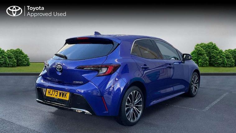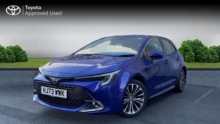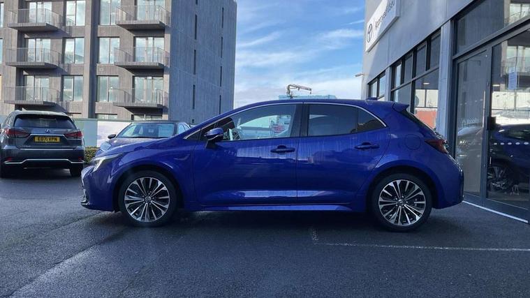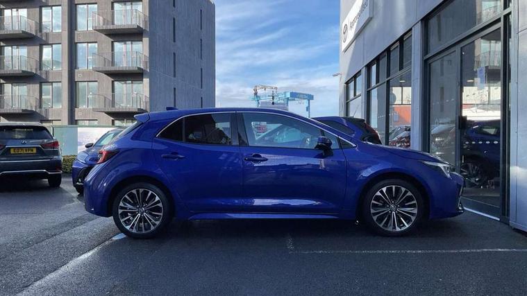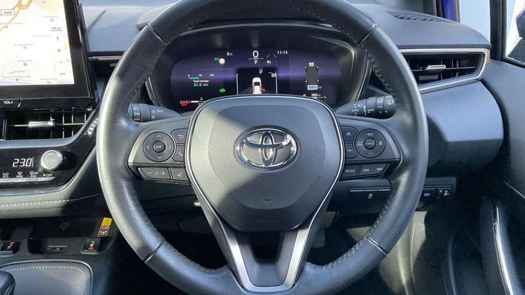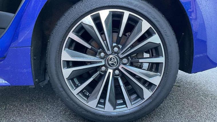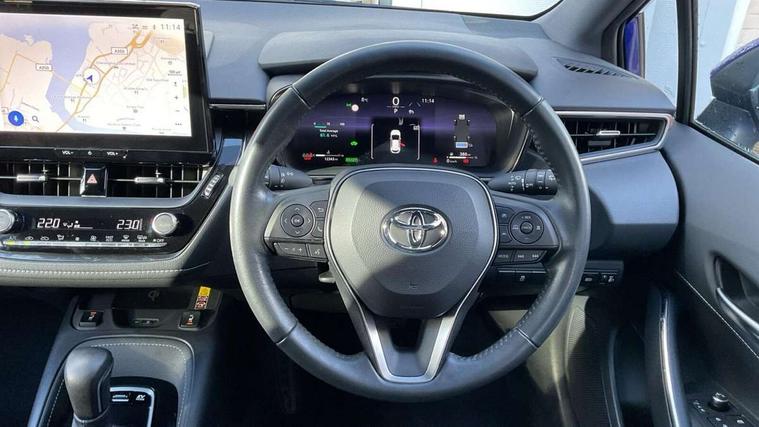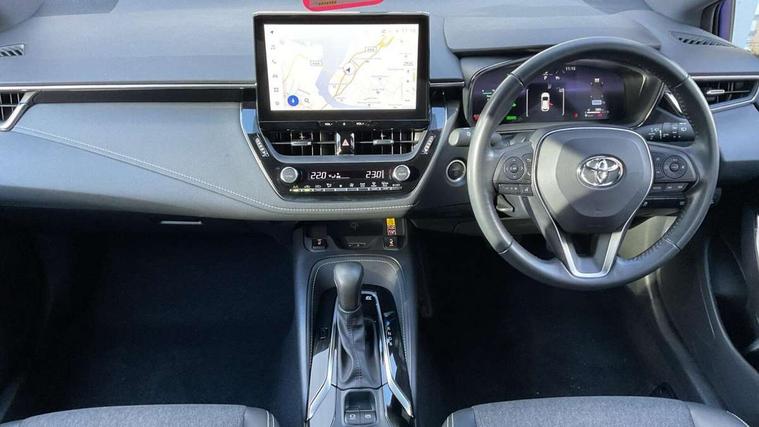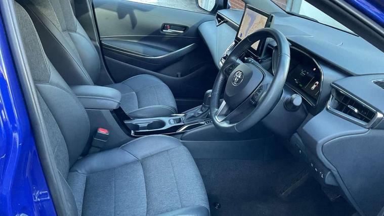10.5" Multimedia display screen, Attention assist, Bluetooth telephone connectivity, Connected car functionality upgrade, tracker, remote status and e-care, Drive mode select (Eco, Normal), E-call, Electrically assisted power steering, EV drive indicator, Front and rear parking sensors with auto brake, Full Digital 12.3" TFT Digital Combimeter, Key reminder warning, Lane Departure Alert (LDA) switch on steering wheel, Memory on adjustable speed limiter, MyT connected services, Proactive driving assist (PDA), Reversing camera, Smartphone integration with Apple CarPlay and wired android auto, Tailgate, Toyota remote services, Toyota smart connect navigation, Wireless charger, Gasoline particulate filter, Vehicle Stability Control (VSC), 6 speakers, AM/FM radio, DAB Digital radio, Front USB-C in dashboard, Smart voice assist/ Voice recognition, USB and Aux in connectors + 12V front outlet, Anti-jam protection on power windows, Auto up and down function on all power windows, Automatic folding mirrors, Automatic headlights with high beam assist, Black centre and side air vents, Black metallic meshed front grille, Black toyota logo in front, Body coloured bumpers, Body coloured door mirrors, Body coloured front spoiler, Body coloured outside door handles, COROLLA alloy door scuff plates, Electrochromatic mirror, Follow me home headlights, LED daytime running lights, LED dual beam projector headlights, LED front fog lights, LED High mounted stop light, LED multi reflector in headlights, LED rear combi lights with LED lightguide, Manual headlight levelling system, New grille pattern, Noise reduction layer on windscreen, Piano black diffuser, Power adjustable heated door mirrors, Power front windows, Power rear windows, Privacy glass with UV filter, Rain sensing wipers, Rear bumper decoration with chrome plated inserts, Rear side wing doors, Rear under guard with chrome ornament, Rear window defogger, Rear window wiper, Reverse tilting door mirrors, Roof spoiler, Satin chrome insert on front air vents, Satin chrome insert on front door assist grips, Shark fin antenna, Tailgate release with push button, Time adjustment on intermittent wiper, Turning signal integrated indicators in door mirrors, Unique lower skirt, Unique side rocker with black insert, UV-filter on driver and passenger windows, 2 Shopping bag hooks in luggage compartment, 3 rear headrests, 3 seat bench in 2nd row, 3 spoke leather steering wheel with satin insert + gear knob, 4 tie down hooks in luggage compartment, 60/40 split folding rear seat, Adaptive cruise control (ACC) switch on steering wheel, Adjustable speed limiter switch on steering wheel, Audio, multimedia and telephone switches on steering wheel, Black armrest on centre console box, Black gear shift console, Boot light, Centre room light, Driver and front passenger personal light, Driver and passenger assist grip, Driver and passenger sun visor with mirror and light, Dual zone automatic air conditioning with ECO mode switch, Fabric/synthetic leather upholstery, Front and rear cup and bottle holders, Front door pockets, Front head restraints, Front passenger seat, Front sliding synthetic leather armrest, Heated seats, Illuminated entry system in room lamp, ISOFIX seat fixing (2 fixings on rear outer seats), Leather gear shift with satin chrome on gear shift console, Manual height adjustable for driver and front passenger seat, Manually tilt with sliding driver and front passenger seat, Parcel shelf, Passenger seat back pocket, Pollen filter, Power adjustable lumbar support on driver seat, Power window switches with satin chrome inserts, Rear armrest with 2 cupholders, Rear passenger coat hooks (2), Remote air conditioning, Satin chrome inside door handles, Satin chrome surround on heater control panel, Satin chrome surround on speedometer, Sliding armrest on centre console box, Slow opening glovebox with lights, Textile floor mats, Tilt/telescopic steering column, Voice recognition switch on steering wheel, Whiplash Injury Lessening (WIL) feature (active headrest) for seats, White ambient lighting on open tray and front cup holder, Toyota safety sense 3 pack - Corolla, 3x3 point rear seatbelts, Adjustable driver and front passenger seat belt extender to top anchor point, Anti lock braking system + Electronic brake force distribution, Brake assist function, Child locks on rear doors, Downhill Assist Control (DAC), Electronic parking brake, Emergency brake light signal (EBS), Front passenger airbag on/off switch, Front seatbelt reminder, HAC - Hill start assist control, Rear seat belt reminder, Seatbelt pretensioners and force limiters, Supplemental restraint system (SRS) 7 airbags - dual driver, dual side curtain, side impact and driver knee airbags, Traction control, Tyre pressure warning system, Acoustic vehicle alert system (AVAS), Alarm with motion sensor and immobilizer, Power passenger window lock, Remote central locking + deadlocks, Satin chrome dash trim, Soft touch texture on upper dashboard, Stitching on lower dashboard, 17" Black machined face 5 double spoke alloy wheels, Tyre repair kit, Unique wheel finish with red wheel cap,
