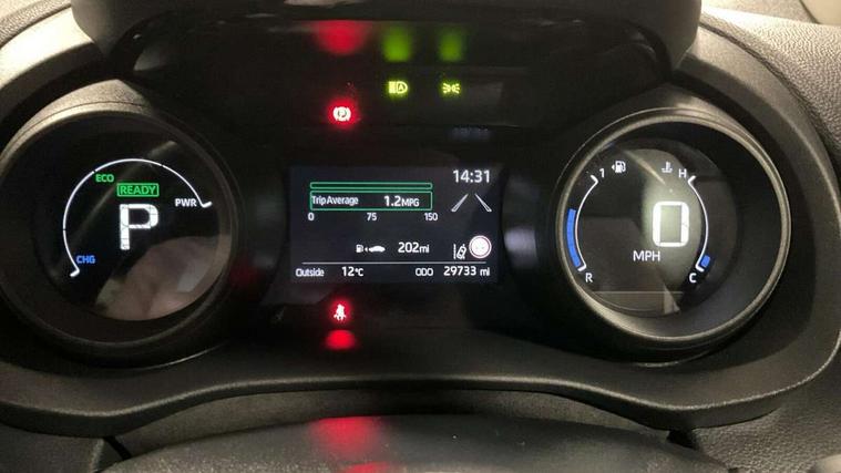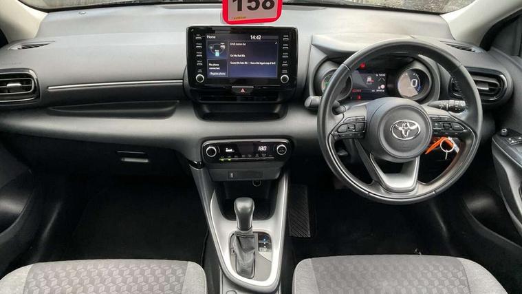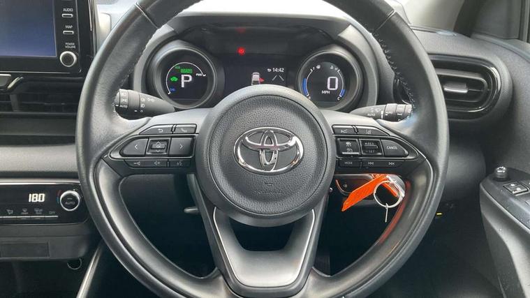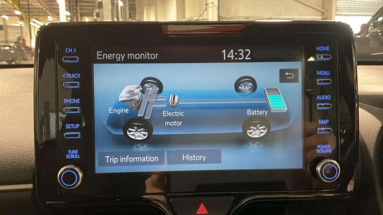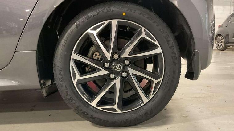 Adaptive cruise control, Adjustable speed limit with speed warning, Bluetooth connectivity, Colour binocular inspired displays with digital speedometer, E-call, Electric power steering, Hybrid energy display, Multi information display switches on steering wheel, Reversing camera, Smartphone integration with Apple CarPlay and Android auto, Tailgate, Voice recognition, Vehicle Stability Control (VSC), 4 speakers, 8" Multimedia display touch screen, USB connection, Acoustic windscreen glass, Auto windscreen wipers, Automatic headlights, Body coloured door mirrors, Electric adjustable heated door mirrors, Follow me home headlights, Front auto power windows with anti jam protection, Full LED rear lights, LED daytime running lights, LED front fog lights, LED front light guide, LED Headlights, LED High mounted stop lamp, LED Indicators, LED rear light guide, Manual headlight levelling, Painted chequered front grille, Rain sensor, Rear auto power windows with anti jam protection, Rear privacy glass, Rear side wing doors, Rear spoiler, Rear wiper, Shark fin antenna, Turning signal integrated indicators in door mirrors, Variable front intermittent wipers, 3 adjustable rear headrests, 3 spoke leather steering wheel, 60/40 split folding rear seat, Active headrests, Adjustable boot height, Auto air conditioning, Coat hooks in rear grab handles, Cup holders (2 front & door), Data Communication Module (DCM) connected services, Fabric upholstery, Front armrest, Glovebox, Grey roof lining, Height adjustable driver's seat, Isofix seat fixing, Leather gearshift, Pollen filter, Shopping bag hooks, Single front passenger seat, Tilt/telescopic steering column, 3 point seatbelts on all rear seats, ABS+EBD+Brake assist, Electronic parking brake, Emergency brake light system (EBS), Front passenger airbag on/off switch, Front seatbelt reminder, Hill start assist control (HAC), Rear child proof door locks, Rear seat belt reminder, Supplemental Restraint System (SRS) 8 airbags: Driver & passenger's airbags, dual side curtain airbags, side impact airbags, front centre airbag, Toyota Safety Sense 2, Precollison + Night time Pedestrian & Cyclist Detection, Lane Trace Assist, Auto High Beam, Intelligent ACC & Road Sign Assist, Tyre pressure warning system, 2x Master key, Alarm/immobiliser, Remote powered central double locking doors, Soft touch instrument panel, Space saver spare wheel,