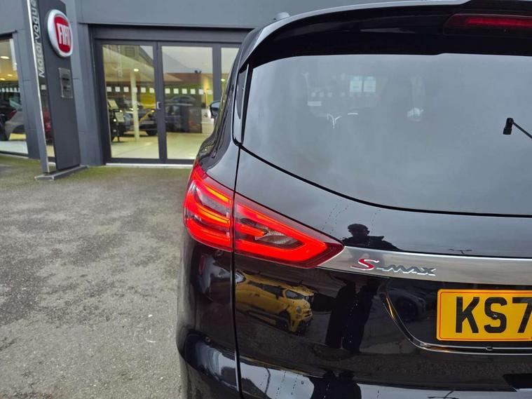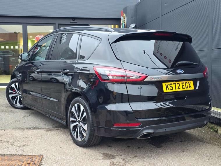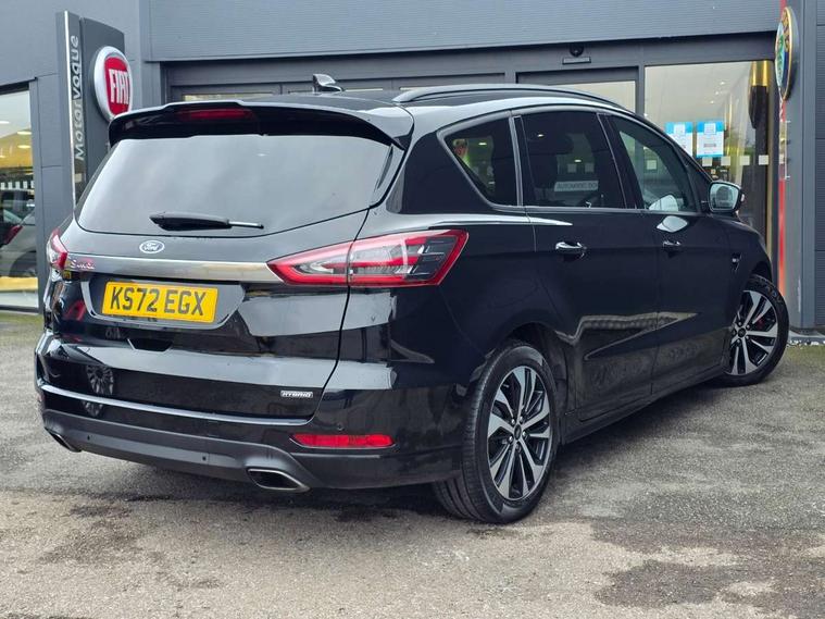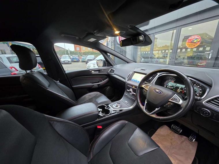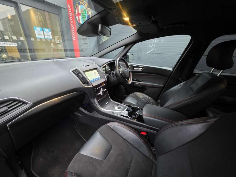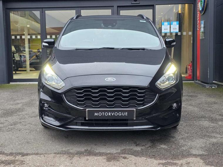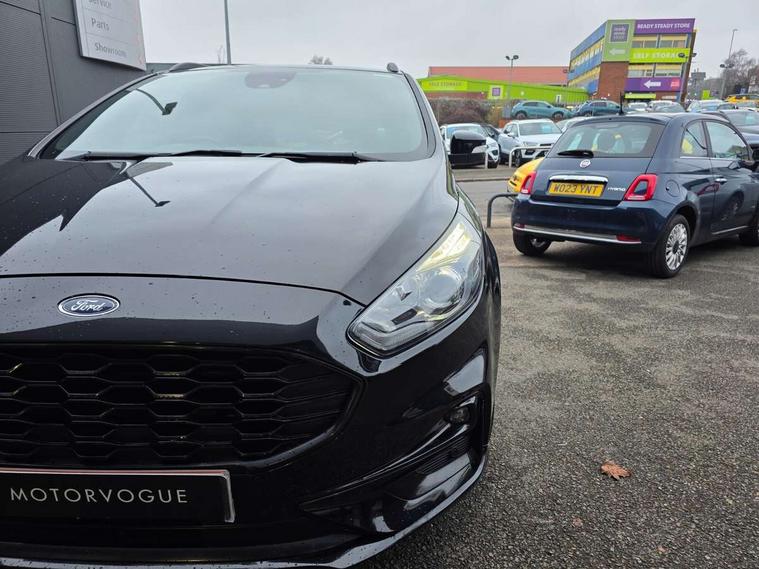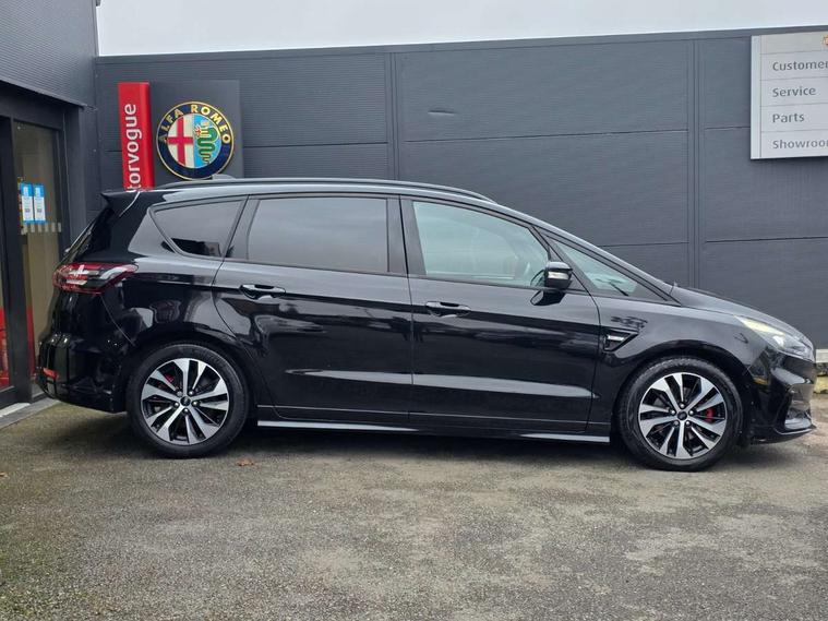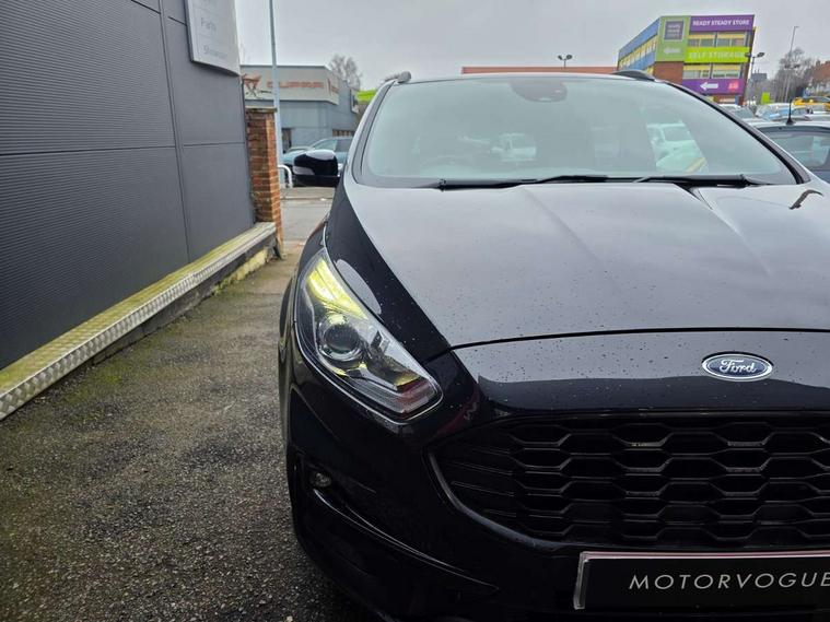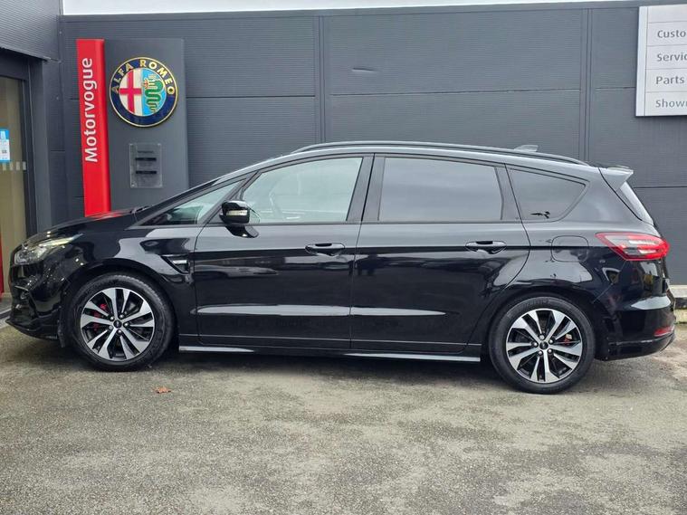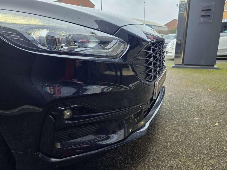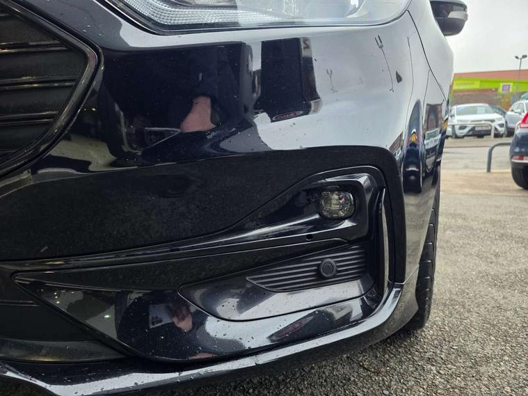 'Ford Power' starter button, 10.1" semi digital cluster, Easy fuel capless refuelling system, eCall emergency call system, Lane keeping aid including driver impairment monitor and active steering with lane departure warning, PAS, Rotary gear shift dial, Traffic sign recognition, Unique instrument cluster, Sports suspension, Steering wheel mounted controls, 3rd brake light, Auto dimming rear view mirror, Automatic headlights, Automatic wipers with variable sensitivity adjustment, Black trim to side windows, Body colour door handles, Body coloured bumpers, Full body coloured trim, Halogen front fog lights, Halogen projector headlights, LED daytime running lights, LED rear lights, Lower front grille with chrome surround, Power fold mirrors - heated, indicators with puddle lamps, Power operated front and rear windows, Quickclear heated front windscreen, Rear privacy glass - dark glass to rear windows, Rear side wing doors, Rear spoiler, ST-Line illuminated scuff plates, Tailgate wash/wipe, Tinted glass, Unique front, rear and side sports bodystyling with dark exterior detailing, Unique ST-Line badging, 10 way power adjustable drivers seat with memory function, 10 way power passenger seats, 2 x 3rd row individual seats with fold flat, 230V power outlet in centre console, 3 x 2nd row individual seats wih fold flat, slide and recline, Aluminium sports pedals, Ambient lighting, Dark headliner, Dual zone electronic automatic temperature control, Floor mats in all three rows, Front and rear head restraints, Front seat back table trays, Heated steering wheel, ISOFIX attachments for child seats in 2nd row, Overhead console with sunglasses stowage, Perforated leather trimmed steering wheel with red stitching, Pollen and odor air filter, Reach and rake adjustable steering column, Salerno part leather upholstery with perforated miko suede inserts + red stitching, Single front passenger seat, Sports seats, Variable heated front seats, 3 point seatbelts on all seats, ABS/EBD, Driver/Front Passenger airbags, Drivers knee airbag, Electric handbrake, ESP+EBA, Front and rear (row 2) curtain airbags, Front side airbags, Manual child lock in rear doors, Passenger airbag deactivate switch, Pre collision assist system, Traction control, Tyre pressure monitoring system, Immobiliser, Keyless entry system, Locking wheel nuts, MyKey system, Remote control central locking, Thatcham alarm, Tyre inflation kit,