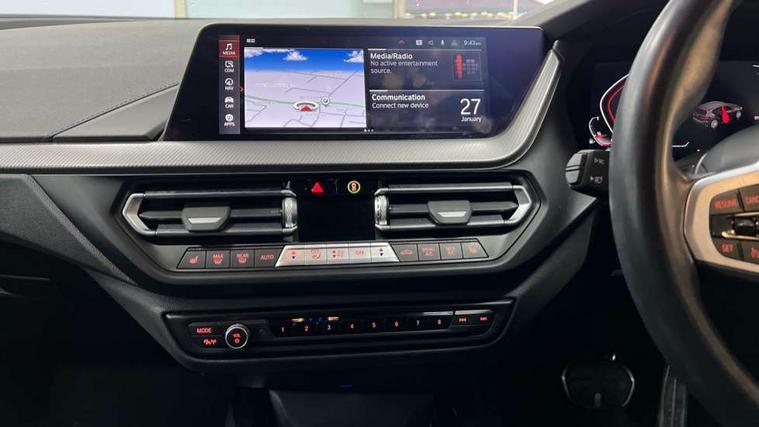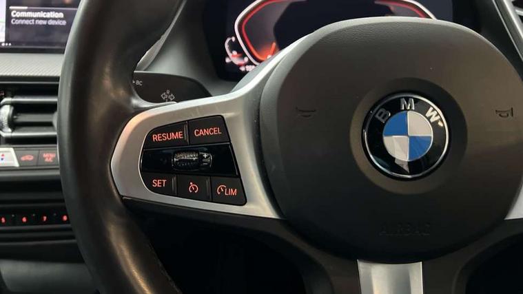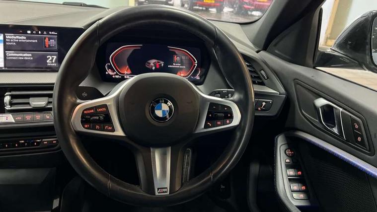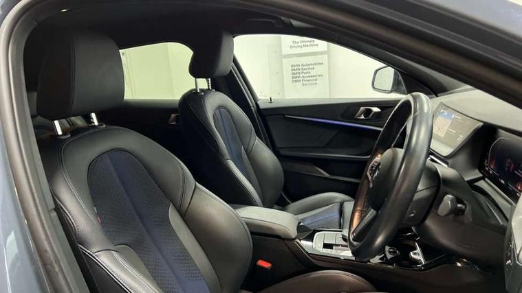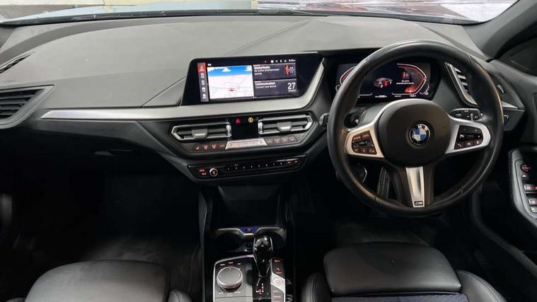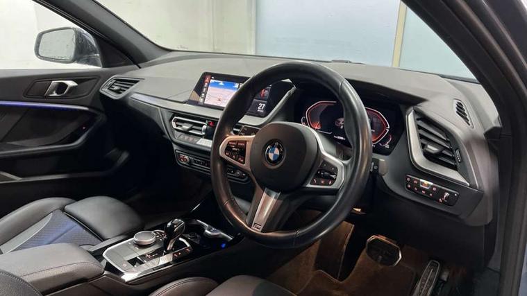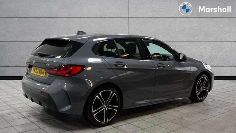 Active guard plus, Attentiveness assist, BMW ConnectedDrive online services, BMW Teleservices, Check Control warning system for monitoring of lights and door/luggage compartment open warning, Cruise control with speed limiter, Eco pro mode, Front axle single joint with specific axle kinematics to minimise drive influences on steering + provide increased rigidity agile driving behaviour, Integrated owners handbook, Lane departure warning system, Oil sensor for level and grade, On board computer, Optimum shift indicator, Personal Profile, Pull away assistant, Rigidly mounted rear subframe - Multi link construction with separate spring / damper configuration and excellent driving characteristics, Speed limit Info including no-overtaking indicator, Aluminium lightweight construction, Anti roll bar front and rear, Balancer shaft, Double VANOS twin scroll turbocharging system, Drive Performance Control, Electronic differential lock, High precision injection, M sport suspension, Petrol Particulate Filter, Twin tube gas filled shock absorbers with degressive characteristic curve, VALVETRONIC engine management, DAB Digital radio, Auto dimming rear view mirror, Automatic headlight beam throw control, Automatic windscreen wipers and automatic headlight, Body colour door handles, Body colour mirror caps, Body colour roof trims, Chrome 'M' logo side designation, Chrome exhaust twin tailpipes round 90mm in left, Chrome kidney grille frame with Satin Aluminium struts, Direction indicator side lights in exterior mirrors, Electrically adjustable exterior mirror with mirror adjustment switch on drivers armrest and aspheric on driver side, convex on passenger side, Fading support, Folding side mirrors with auto dimming/folding wing mirrors with auto dimming, Follow me home headlights, Front and rear bumper system with replaceable deformation elements, Front and rear electric windows with open and close fingertip control, anti trap facility and comfort closing, Front door sill finishers in black plastic with M designation in metallic look, Green tinted heat protection glazing, High gloss shadowline window frame, Recess cover mirror frames and B/C pillar embelisher trim, High level third brake light, Integrated front windscreen with washer jets, LED daytime running lights, LED eyebrow turn indicators, LED front fog lights, Lightweight engineering, Matt black air guide grilles, Matt black wheel arch trim, Model designation on electric bootlid, Nearside reverse light in rear light cluster, Preparation for high beam assistant, Rear fog lights, Rear side wing doors, Rear window wiper, Shark fin antenna, Trailer stabilisation logic, Visible VIN plate, Welcome lighting, 12V power socket in front centre console with blanking plug, 3 rear seat head restraints, 3 seat bench in 2nd row, 3 spoke sports leather steering wheel with black leather and stitching, pearl chrome decorative finish, specific M Badge, Anthracite headlining, Black boot net with lashing eyes, Cargo function on 2nd seat row, Child seat ISOFIX attachment for two outer rear seats and front passenger seat with anchorage points, Conditioned based service, Driver and front passenger backrest net on rear, Driver and front passenger seat heating, Driver side folding compartment in instrument panel, Folding rear clothes hook, Four grab handles integrated in roof lining, Front and rear door pockets with bottle holders, Front and rear side armrest integrated into door trim, Front armrest, Front sports seats, Glove compartment, Height adjustable front head restraints, Luggage compartment for bag hooks on left and right, foldable luggage compartment liner and four lashing eyelets, Manual adjust steering wheel, Multi-function controls for steering wheel, Single front passenger seat, Storage compartment in centre console, Storage compartment in luggage compartment, Stowage of the parcel shelf in luggage compartment trim, Sun visors with vanity mirrors and insert tab, Two front centre console cupholders, Two zone automatic air conditioning, Type C two USB ports in rear centre console, Velour floor mats, Additional interior lighting pack - 1 Series, BMW live cockpit professional pack- 1 Series, Connected pack professional - 1 Series, Interior lights pack - 1 Series, M Sport exterior styling aerodynamics pack - 1 Series, 2 tone horn, 3 point seatbelts on all seats, front pyrotechnic belt tensioners, stopper and belt force limiters, rear coded belt buckles, Airbags - Front driver/passenger, front and rear curtain head protection, front side, manual deactivation of front passenger airbag, Anti lock braking system (ABS) with brake assist, BMW emergency call, Brake drying, Braking readiness, Child proof locking system in rear door, City braking function, Comfort modes, Cornering brake control, Crash sensor activating of airbags, Unlocking doors, hazard warning lights, fuel cut off, interior lighting+activation of safety battery terminal clamp, Driver and front passenger seat belt security check, Dynamic stability control + (DSC+), Dynamic Traction Control - DTC, Electrically operated hand brake including automatic hold function, Front and rear disc brakes, Seatbelt warning, Side impact protection, Tyre pressure monitoring system, Warning triangle and first aid kit, Central locking switch for all doors, fuel filler cap and luggage compartment, Deadlocking function system to all doors, Drive away locking system on all doors and luggage compartment with de-activated in iDrive settings, Locking wheel bolts, Remote control with integrated key with High-gloss Black inlay and M designation and 1 button for open/ close lock, window, open luggage compartment, Start/stop button illuminated in centre console with keyless engine start and auto start stop deactivation button, Thatcham Cat.1 alarm and immobiliser, Wheel slip limitation close to the actuator (ARB), Contrast stitching on instrument panel, 18" Burnished M double spoke bi-colour alloy wheels finished in orbit grey - styl