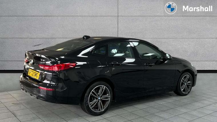 Active guard plus, Attentiveness assist, Auto start-stop, BMW Intelligent Personal Assistant, BMW Live Cockpit Professional with 10.25" high resolution instrument and control display, BMW Online services, BMW operating system with 7.0 mid interface, BMW Teleservices, Check Control warning system for monitoring of lights and door/luggage compartment open warning, Cruise control with braking function, Electric Power Steering (EPS) with Servotronic, iDrive controller with 7 short cut favourite buttons on centre console, Integrated navigation data with map data via USB +features such as 3D landmarks and micro city models, Integrated owners handbook, Intelligent voice assistant, Lane departure warning system, On board computer - average speed+fuel consumption, service interval, clock/date, odometer/trip meter, outside temperature display and ice warning, Optimum shift indicator, Personal Profile, Pull away assistant, Speed limiting function, Aluminium lightweight construction, Balancer shaft, Double VANOS, Drive performance control with ECO PRO comfort + sport mode, Dual clutch automatic transmission, Electronic differential lock, High precision injection, Performance Control, Petrol Particulate Filter, Suspension with twin tube gasfilled shock absorbers, Anti roll bars, single joint front axle kinematics to minimise drive + Rigidly mount rear subframe, VALVETRONIC engine management, 2x USB Type C ports (for charging and data transfer), 4G LTE Connectivity with hard wied 4G network sim card, DAB digital radio, MP3 players and RDS double tuner, Active aerodynamics, Auto wipers, Automatically dimming rear view mirror, Body colour door handles, Body colour mirror caps, Chrome exhaust single tailpipe, round, Direction indicator side lights integrated exterior mirrors, Electric windows - front and rear, with open/close fingertip control and trap release, Fading support, Follow me home headlights, Front and rear bumper system with replaceable deformation elements, Front bumper in Body colour with exclusive Sport air inlets finished in High gloss Black, Front door sill finishers in black plastic with BMW designation, Heated, electrically adjustable exterior mirror aspheric on driver side, convex on passenger side, High gloss black B pillar finish, High gloss shadow line exterior trim, High level third brake light, Kidney grille with 14 chrome high gloss black vertical bars, LED daytime running lights, LED front fog lights, LED Headlights, Lightweight engineering, Manual headlight beam throw control, Model designation on right side of tailgate, Preparation for high beam assistant, Rain sensor with automatic headlight activation, Rear boot, Rear bumper in Body colour with exclusive Sport design elements finished in High gloss Black, Rear fog lights, Rear side wing doors, Reversing light in rear light cluster, Welcome lighting, 12V power socket in centre console, 2 cupholders in front centre console, 3 rear seat head restraints, 3 rear seats, 3 spoke sports leather steering wheel and black leather rim with black stitching + decorative finisher in pearl chrome, Anthracite finished floor mats with contrasting surround, Automatic two zone climate control air conditioning, Child seat ISOFIX attachment for two outer rear seats and front passenger seat with anchorage points, Conditioned based service, Front and rear door pockets including bottle trays, Front and rear side armrests integrated into door trim, Front armrest foldable with integrated storage compartment, Front centre interior light over interior mirror and rear centre automatic interior light when door is opened/ignition switched off or via remote key, Front head restraints, Front passenger seat, Front sports seats with electric side bolster adjustment, Glove compartment, Glovebox with light, Luggage compartment lighting, Manually adjustment steering wheel column, Multi-function controls for steering wheel, Sun visors with vanity mirrors and insert tab, Through loading system with 40/20/40 split folding rear seat, Two lashing eyes, Extended storage pack - 2 Series Gran Coupe, 2 tone horn, Airbag - Front driver and passenger, front and rear head, front side, curtain head protection, manual deactivation of front passenger airbag possible, Anti lock braking system (ABS) with cornering brake control, BMW emergency call, Brake drying, Braking readiness, City braking function, Crash sensor activating of airbags, Unlocking doors, hazard warning lights, interior light, safety battery terminal, Dynamic stability control + (DSC+), Dynamic Traction Control - DTC, Electrically operated hand brake, Rear brake discs, Rear child proof door locks, Seat belt security check for driver and front passenger, Seatbelt warning, Side impact protection, Three point seat belts on all seats including front belt stopper, pyrotechnic belt tensioners and belt force limiters, Trailer stability control, Tyre pressure monitoring system, Ventilated front disc brakes, Warning triangle and first aid kit, Central locking switch for all doors, fuel filler cap and luggage compartment, Deadlocking function system to all doors, Drive away locking system on all doors and luggage compartment, Locking wheel bolts, Start/Stop button (illuminated) in centre console with keyless engine start and Auto Start-Stop deactivation button, Thatcham Cat.1 alarm and immobiliser, Two remote control key with integrated key - one button for open and close doors/fuel flap/tailgate and separate button for unlock luggage compartment, Contrast stitching on instrument panel, Illuminated Berlin interior trim, Reduced rolling resistance tyres,