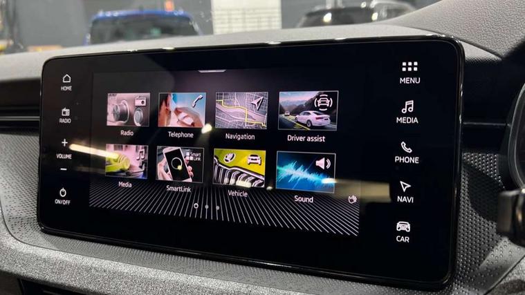 Advanced driver attention and drowsiness monitor, Bluetooth, e-Call (emergency call), Front assist system, PAS, Rear parking sensors, Rear view camera, Speed limiter, Tailgate, Traffic sign recognition, Virtual Cockpit - 10.25" digital display, Wireless smartlink, 4 USB C ports, 8 Speakers, 9.2" Skoda navigation display, DAB radio, Auto dimming rear view mirror, Automatic headlight control with manual coming and leaving home feature, Automatic intermittent wipers, Black window frames, Body colour bumpers, Body colour door mirrors and handles, Chrome moulding around grille, Front and rear electric windows, Full LED headlights, Heated rear window, LED 3rd brake light, LED daytime running lights, LED front turning lights, LED high beam, LED low beam, Rear LED fog light, Rear side wing doors, Rear wiper, Tinted windows, Unique dark chrome design logo on alloy wheels, 12V socket in luggage compartment, 3 seat bench in 2nd row, Black / Grey armrest stitching, Black hotstamping, Cargo elements, Chrome inner door handles, Door inserts in satin black, Driver and passenger sun visors with vanity mirror, Dual zone climate control, Front and rear roof lights, Front centre armrest, Front head restraints, Glasses storage in roof liner, Height adjustable driver seat, Height adjustable passenger seat, Ice scraper, Illuminated glove compartment, Inner circulation control with pollen filter, ISOFIX for front passenger seat, Isofix preparation for back seats, Leather gearknob and handbrake lever, Loft cloth upholstery, Luggage net under rear parcel shelf, Manual lumbar support for front seats, Net package and top tether hooks in boot space, Pocket on the back of both front seats, incl. mobile phone pockets, Single front passenger seat, Skoda lettering on steering wheel, Textile floor mats, Third rear headrest, Ticket holder, Top tether for front passenger seat, Umbrella in driver's door, 3x3 point rear seatbelts, ABS, Child locks, Curtain airbags and front side airbags, Disc brakes, Driver and front passenger airbags, ESP, Hill hold control, Manual leather parking brake, One tone horn, Passenger airbag switch off function, Seatbelt reminder for driver and front passenger, Tyre pressure monitoring system, Anti theft alarm system with interior monitoring, backup horn and towing protection, Anti-theft wheel bolts, Remote central locking with 2 remote folding keys, SAFE function for remote central locking, Decord pad, door inserts Kota uni,