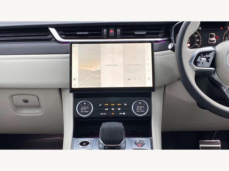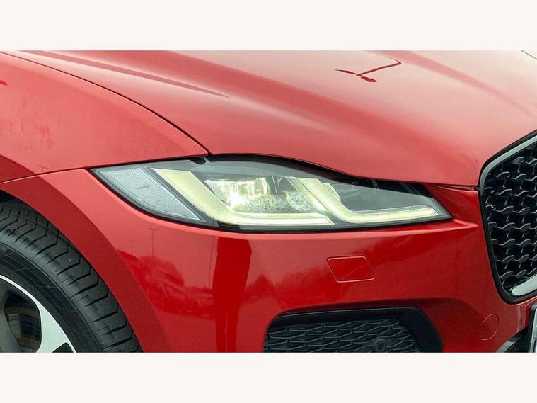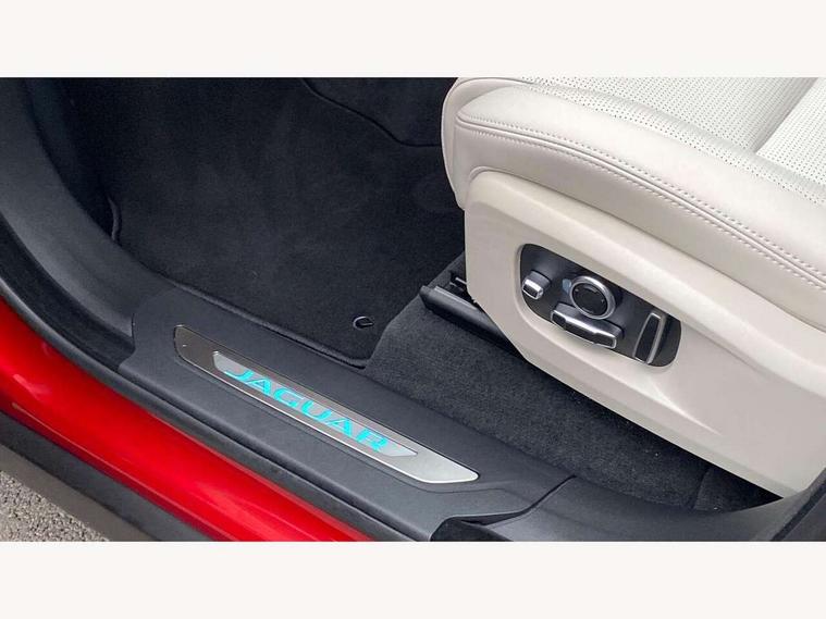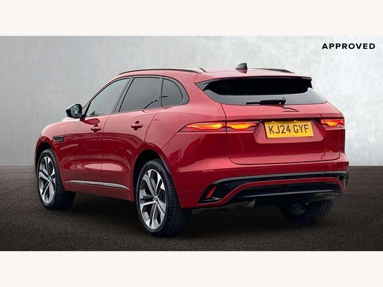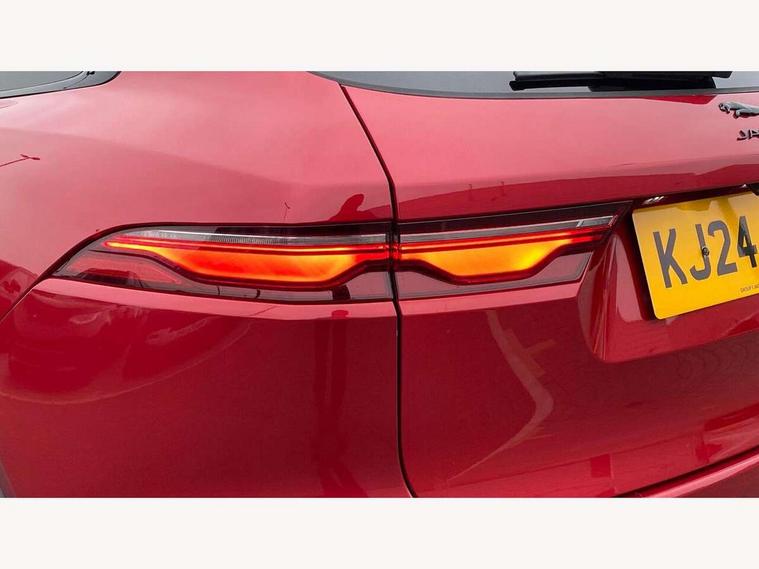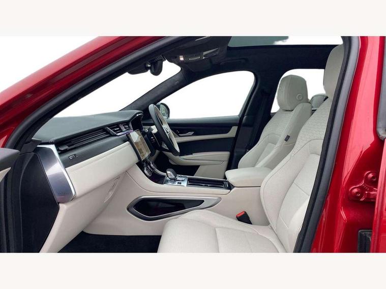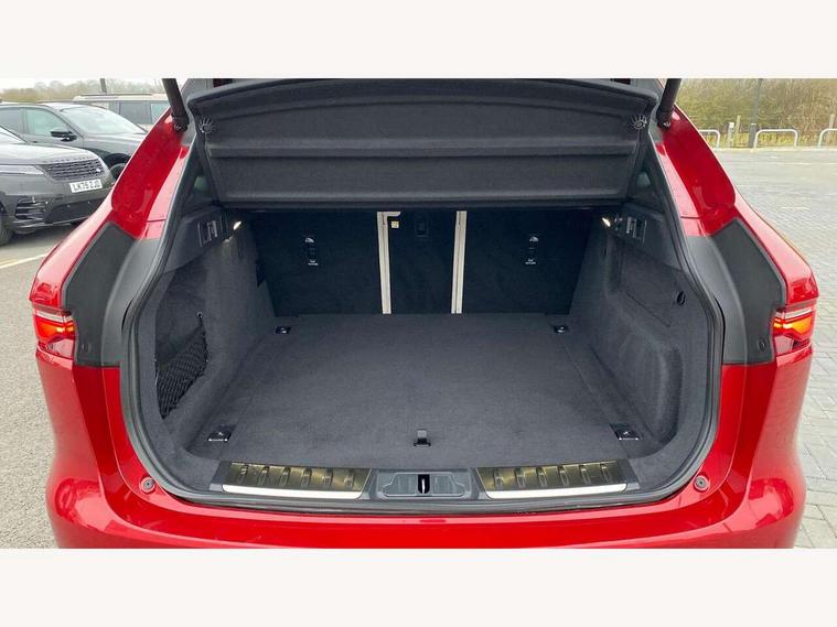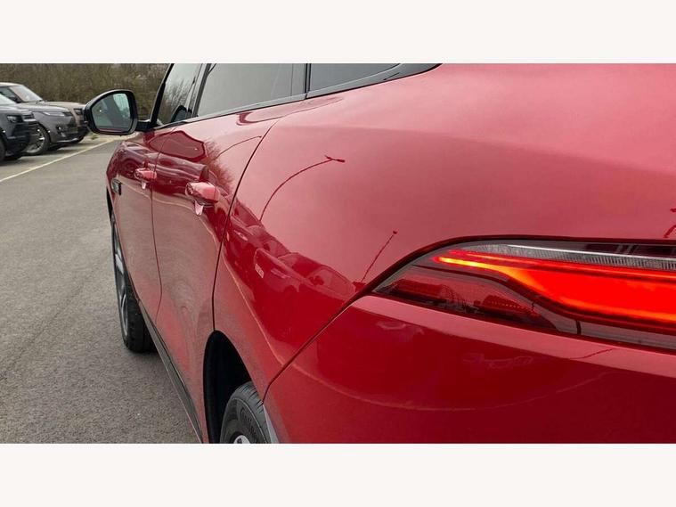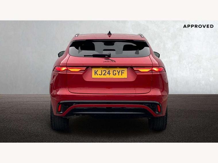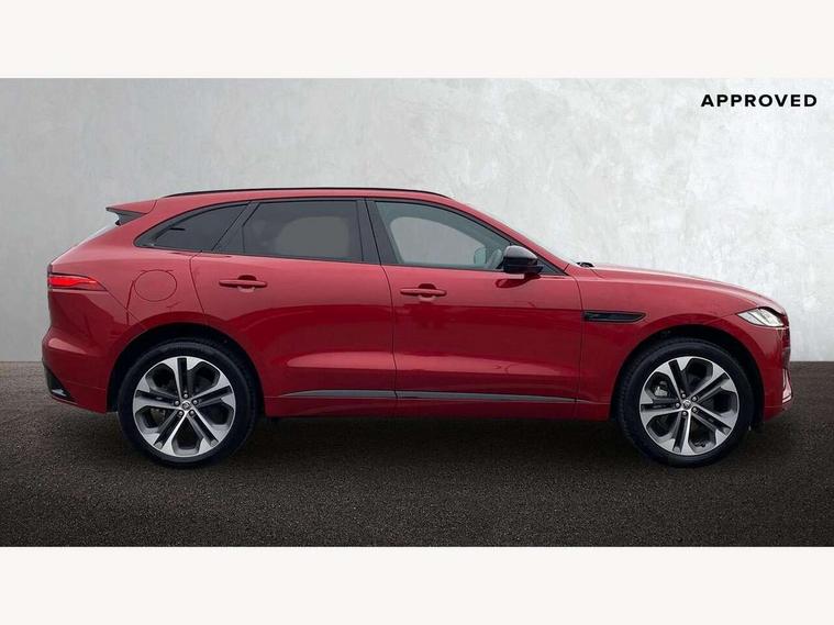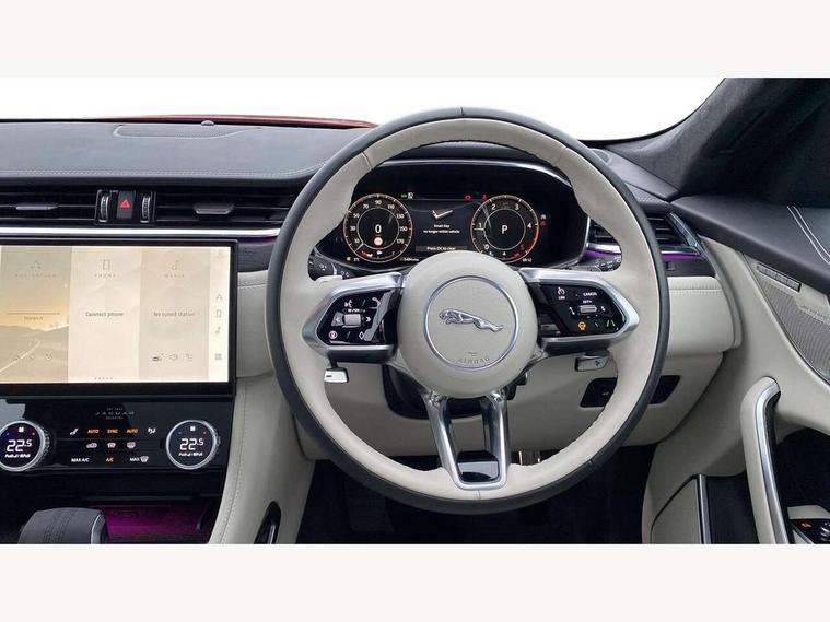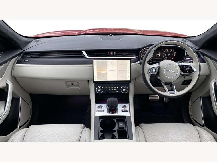 11.4" touchscreen, Adaptive cruise control with steering assist, Android Auto, Apple car play, Blind spot assist, Bluetooth connectivity, Clear exit monitor, Driver alert system, Driver condition monitor, eCall emergency call system, Eco driving style assistant, Electric power assisted steering, InControl remote, Interactive driver display digital with 12" TFT display, Jaguar Toggle shift selector, Lane departure warning system, Lane keep assist, Outside temperature gauge, Personalisation profile management, Pivi pro connected navigation system with app interface and media storage, Pro services and wifi hotspot, Push button starter, Rear collision monitor, Rear traffic monitor, Service interval indicator, Speed proportional steering, Start up sequence with movement in dials and lighting, Traffic sign recognition with adaptive speed limiter, Trip computer, Voice control system, Wireless device charging, 8 speed automatic transmission, Adaptive dynamics, All terrain progress control, All Wheel Drive (AWD), Configurable dynamics, Open differential with torque vectoring by braking, AM/FM radio, Bluetooth streaming, DAB Radio (Digital Audio Broadcasting), Dynamic volume control, InControl apps, InControl protect, iPod integration, 3 flash lane change indicators, AHBA and animated directional indicators, Approach Illumination, Auto dimming rear view mirror, Automatic headlights, Electric heated/power fold memory door mirrors with approach lights and auto dimming driver side, Electric windows with one touch open/close and anti trap, F-Pace and R Dynamic badge, Green tinted glass, Heated front windscreen + heated washer jets, Heated rear window with timer, Illuminated metal tread plates with Jaguar script, Jaguar script and leaper, LED High level third brake light, LED tail lights, Metal load space scuff plates, Non acoustic front windscreen, Privacy glass (rear side windows and rear screen), R Dynamic badge on side door, Rain sensor windscreen wipers, Rear fog lights, Rear metal tread plates, Rear side wing doors, Rear wiper, Trailer stability assist, Variable front intermittent wipers, 12V power point front, 3 rear headrests, 3 seat bench in 2nd row, Additional power sockets - Two additional USB sockets in rear centre console and one 12V socket in trunk, Air distribution speed, Bright metal foot pedals, Centre armrest console, Centre console with side storage, Configurable cabin lighting, Deletion loadspace storage rails, Door sill tread plates, Ebony suede cloth headlining, Electrically adjustable steering column, Fold flat front seats, Front centre armrest with storage compartment, Front door storage space, Glovebox finisher with jaguar script, Heated steering wheel, Hooks in loadspace, Illuminated glovebox, Interior front door handles with separate locking switches, ISOFIX on outer rear seats, Jaguar sense, Leather steering wheel, Luggage tie downs in loadspace, Mist sensing, Multifunction steering wheel, Overhead lighting console, Overhead stowage for sunglasses, Passive front head restraints, Premium carpet mats, Rear air vents, Rear armrest with twin cupholders, Rear centre headrest, Rear door storage space, Reversible boot floor, Satin chrome gearshift paddles, Shopping bag hook, Single front passenger seat, Sunvisors with illuminated vanity mirrors, Twin front cupholders with cover, Online Pack with data plan - F-Pace, 355mm front brakes and 325mm rear brakes, 3x3 point rear seatbelts, ABS, All surface progress control (ASPC), Brake pad warning light, DSC - Dynamic Stability Control, Electric parking brake (EPB), Emergency brake assist, Front airbags with passenger seat occupant detector, Front and rear seatbelt reminder, Front side airbags, Full length side window curtain airbag, Hill launch assist, Power operated child locks, Traction control, Tyre pressure monitoring system, Immobiliser, Keyless entry, Keyless start, Locking wheel nuts, Perimeter alarm, Remote central locking, Valet mode,