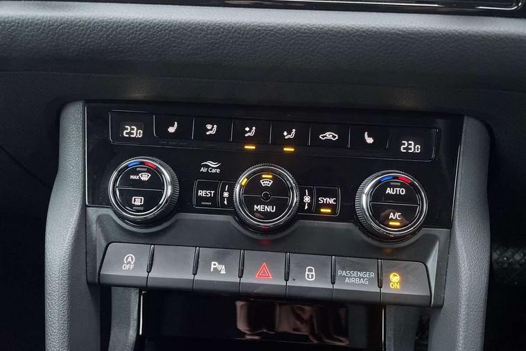 8" Digital display, Amundsen satellite navigation with 8" touchscreen, integrated Wi-Fi, web radio, Bluetooth system, Digital voice enhancement, E-call, ECO Stop/start function, Exterior temperature indicator, Power assist steering, Rear view camera, Smartlink wireless for apple carplay and wired for android auto, Speed limiter, Tailgate unlocking from outside, USB C Port x 2 in front centre console, 8 Speakers, DAB Digital radio, Aero front windscreen wipers with intermittent function, Aero rear window wiper, Auto dimming rear view mirror, Black wheel arch surrounds, Body colour bumpers, Body colour door mirrors and handles, Electric front and rear windows, Extended rear spoiler with finlets in gloss black, Front fog lights, Headlight washers, Heated rear window, Invisible tailpipe, LED rear fog light, LED third brake light in rear spoiler, Light assistant (coming/leaving home/tunnel light), Off-road style lower front bumper element, Privacy glass, Radiator grille frame in matt black with chrome strip, Rain and light sensors, Rear LED lights (high functionality) with welcome effect and dynamic indicators, Rear side wing doors, Safety reflectors on front and rear doors, Window control switches with black trim, 12V socket in boot, 2 rails with 2 hooks, 2 seat bench in 3rd row, 3 seat bench in 2nd row, 4 foldable roof handles with rear coat hooks, 60:40 foldable rear seat with sliding adjustment and backrest angle adjustment, Bottle holders in door panel in the 1.5 litre front and 1 litre rear, Cargo storage compartments, Chrome interior door handles, Cloth upholstery, Coat hooks on B pillar, Covered storage compartment on driver side, Dual zone automatic air conditioning with humidity sensor and control, Front centre armrest with storage compartment, cup holder and 12V socket, Gear shift lever with chrome frame and black gloss insert, Grey headlining, Grey stitching in front and rear armrests and door armrests + door inserts, Height adjustable front headrests, Height adjustable front seats, Illuminated and cooled glovebox, Illuminated luggage compartment, Isofix child seat fittings in outer rear seats with top tether, Manually adjustable steering column, Net programme in boot (1x horizontal Net, 2x vertical Nets), Overhead glasses storage compartment, Pollen filter, Rear centre armrest with cupholders, Single front passenger seat, Sliding trunk cover, Small Bags on the inner sides of the front backrests, Sunvisors with illuminated vanity mirrors, Three rear height adjustable headrests, Ticket holder on A Pillar, Umbrella in door panel, Variable boot floor, Auto door release and activation of warning lights in the event of an accident, Child locks on rear doors, Driver and front passenger airbag with knee airbag and front passenger airbag deactivation, Electronic parking brake with hill start assist, Emergency rear braking signal, ESC (incl. ABS+MSR+ASR+EDS+HBA+DSR+RBS+MKB), Front assist with autonomous emergency braking, Front side airbags with curtain airbags, Fuel cut off safety device, Height adjustable front 3 point seatbelts + pretensioners, Hill hold control, Rear disc brakes, Safety vest holder in door, Seat belt reminder for all seats, Three point rear seat belts, Two tone horn, Tyre pressure monitor, Alarm with interior monitoring and tilt sensor with safe function, Anti-theft wheel bolts, Immobiliser, Keyless entry and start system (KESSY), Remote central locking with 2 keys, Grey stitching in dashboard, Temporary spare wheel (space saver),