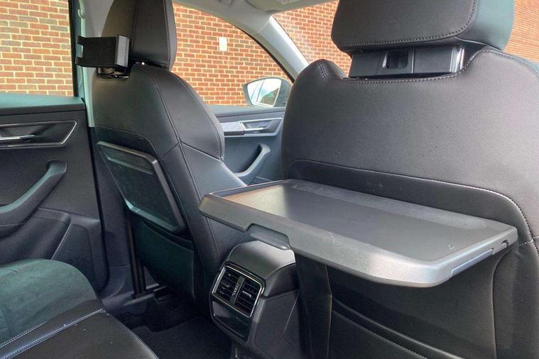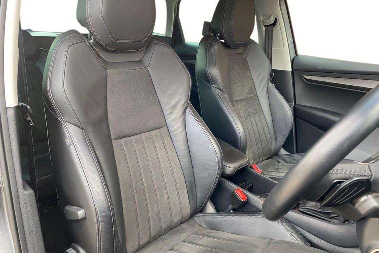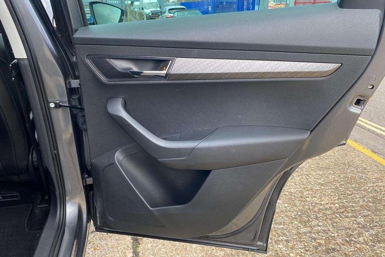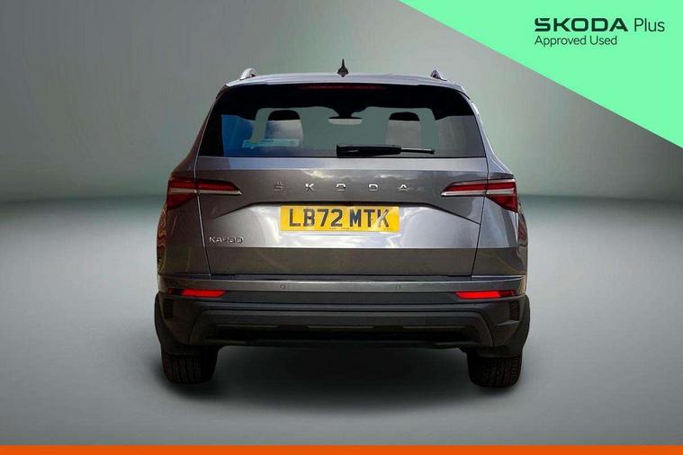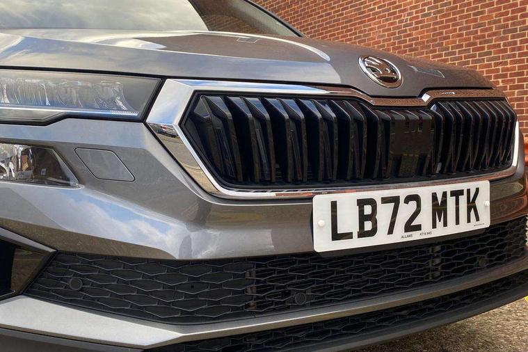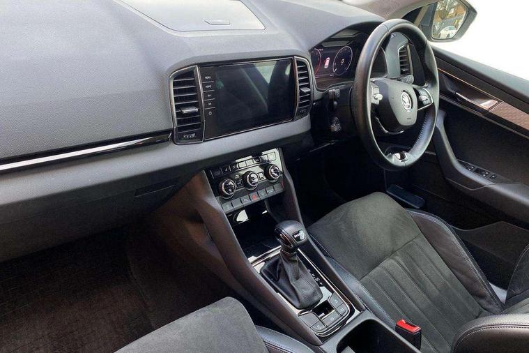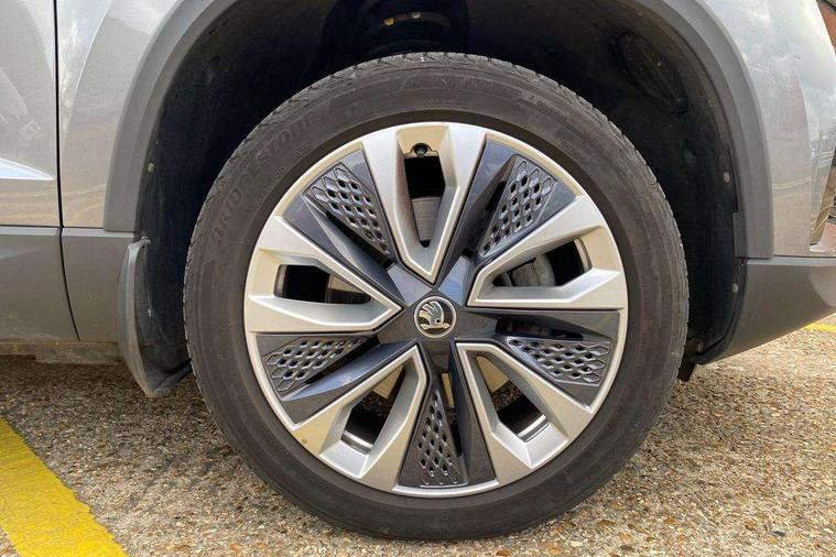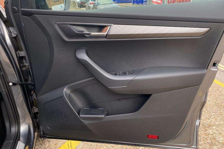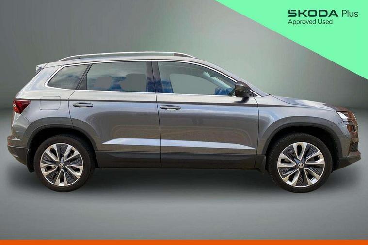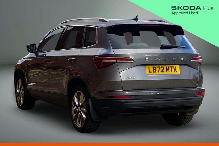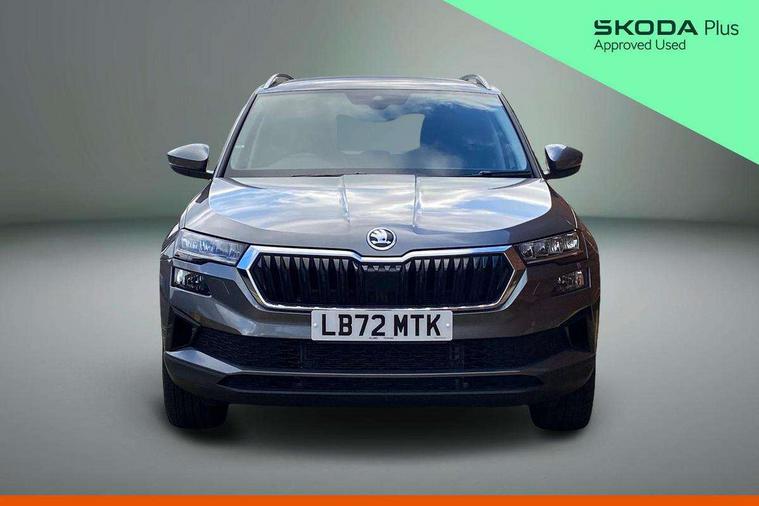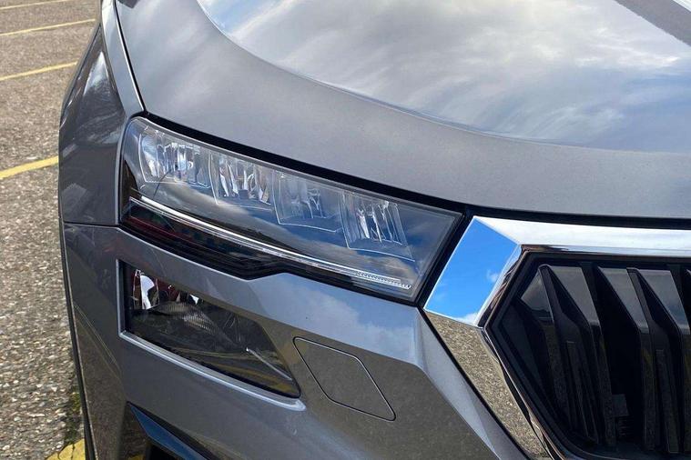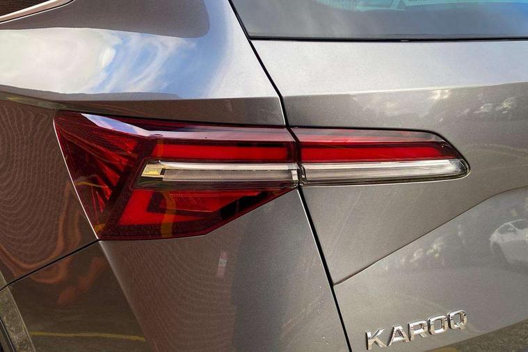 8" Digital display, Care connect, Driver fatigue sensor, Emergency services call system, Outside temperature gauge, Service interval indicator, SmartLink wireless for Apple and wired for Android, Start/stop system with regenerative braking, USB C Port x 2 in front centre console, 8 Speakers, DAB radio with Bluetooth, USB connection, Acoustic glass, Aero front windscreen wipers with intermittent function, Auto dimming rear view mirror with light and rain sensors, Black electric window control buttons, Body colour door mirrors and handles, Dynamic headlight range control with cornering light function, Electric front and rear windows with child proof lock, Heated rear windscreen, LED daytime running lights, LED rear lights with high functionality welcome effect and dynamic indicators, Light assistant (coming/leaving home/tunnel light), Plastic scuff plates, Privacy glass, Rear side wing doors, Rear spoiler, Rear window wiper with washer system and intermittent control, Safety reflectors on front doors, 1.5 litre bottle holders in driver and front passenger door panels, 12V socket in boot, 12v socket in front centre armrest with storage compartment and rear air vents, 2 Folding hooks and nets in boot, 2 spoke leather heated multifunction steering wheel with DSG paddles, 2 x Tablet holder, 3 rear height adjustable headrests, 3 seat bench in 2nd row, 4 foldable roof handles with rear coat hooks, Black floor carpet, Chrome inner door handles, Decorative door sills with KAROQ badging, Double sided boot floor, Foldable hooks in the boot, Front head restraints, Height adjustable front three point seats belts with tensioners, Height/reach adjust steering wheel, Ice scraper, Illuminated glovebox, Illuminated luggage compartment, Isofix child seat preparation for front passenger seat, Isofix child seat preparation outer rear, Manual lumbar support for front seats, Pen holder, Pollen filter, Rear boot cover, Rear reading lights, Rubbish bin door, Safety vest holder, Single front passenger seat, Storage box in upper central dashboard closed, Sunvisors with illuminated vanity mirrors, Textile floor mats, Ticket holder, VarioFlex seats with standard rear seat release, Chrome roof rails + chrome pack - Karoq, Parking pack - Karoq, Automatic door unlocking in case of crash, Automatic fuel cut off in case of crash, Child locks on rear doors, Driver airbag, Electronic parking brake with auto hold function, Emergency rear braking signal, ESC including ABS, MSR, ASR, EDS, HBA, DSR, RBS, MKB and traction control, Front side airbags, Hill hold control, Knee airbags, Passenger airbag with switch-off function, Pedestrian monitor, Seatbelt reminder signalisation and pretensioner for all seats, Three point seatbelts rear, Two tone horn, Tyre pressure display, Tyre pressure monitor, Alarm with interior monitoring, back up horn and tilt sensor with safe function, Electronic engine immobiliser, Keyless entry and start/stop, Remote central locking with 2 remote folding keys, Chrome framed air vents, Anti-theft wheel bolts protection, Storage on wheel cover, Tool kit,
