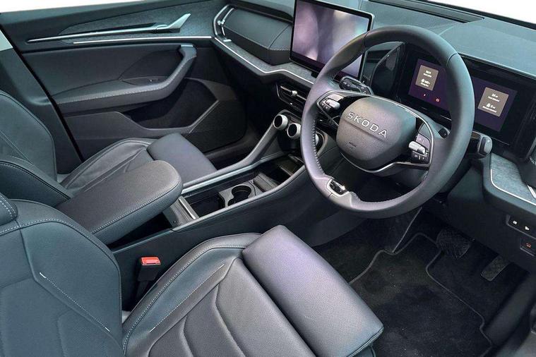 13" satellite navigation touchscreen display, Blind spot detection with door exit warning, Bluetooth system, ChatGPT functionality, Driver alert - Fatigue and drowsiness monitor, Dry display cleaner, Emergency call, Front and rear parking sensors, Front cross traffic assist, Lane assist, PAS, Rear traffic assist, Tailgate unlocking from outside, Traffic sign recognition, USB C Port x 2 in front centre console, Virtual Cockpit - 10.25" digital display, Voice control system, Wireless charging for two smartphones (15W) with cooling function, Wireless SmartLink for Apple CarPlay and Android Auto, Stop/start function, 2x USB-C in the rear, DAB Digital radio, Aero front windscreen wipers with intermittent function, Auto dimming rear view mirror, AWL (all weather lighting) and all weather light with cornering function, Black wheel arch surrounds, Body colour bumpers, Body colour door mirrors and handles, Cornering light and poor weather light, Electric folding /adjustable/separted heated/folding door mirrors, auto dimming with boarding sports and memory function, Electric front and rear windows, Exterior black decorative trims, Heat insulating glass in windshield, Heated rear window, Ice scraper in fuel tank cap, Invisible tailpipe, LED daytime running lights, LED third brake light in rear spoiler, Light assistant with automatic headlight control and coming home feature, Logo projection in door mirrors, Privacy glass, Rear roof spoiler, Rear side wing doors, Rear window wiper, Red decorative strip between rear LED lights, Safety reflectors on front and rear doors, Unique dark chrome design logo on alloy wheels, Window control switches with black trim, Windscreen wipers with rain sensor, Without engine designation, 1.5l bottle holder points in all door, 1x centre rear reading light, 2 seat bench in 3rd row, 3 configurable smart dials with 32mm coloured display, 3 seat bench in 2nd row, 4 foldable roof handles with rear coat hooks, Ambient interior lighting - Dashboard, front-door stowage compartments, front and rear door panels and footwell lighting, Automatic gear selector on steering column, Chrome interior door handles, Driver/front passenger reading lights, Fabric headlining, Fixed bench 40:60:40 split folding backrests, Front and rear floor mats, Front centre armrest with jumbo box storage compartment, cup holder and 12V socket, Height adjustable front headrests, Isofix child seat fittings in outer middle row rear seats and front passenger with top tether, Manually adjustable steering column, Pollen filter, Rear centre armrest with cupholders, Rear seat boot backrest release, Single front passenger seat, Skoda lettering on steering wheel, Storage pocket including mobile phone pockets on the backs of the front seats, Sunvisors with illuminated vanity mirrors, Three rear height adjustable headrests, Ticket holder on A Pillar, Tri zone climate control, Umbrella in door panel x1 made from sustainable materials, Upper and lower glovebox with card holder and coin compartment, USB C port by rear view mirror for charging only (15W), Exterior styling pack - Kodiaq, Auto door release and activation of warning lights in the event of an accident, Driver and front passenger airbag with knee airbag and front passenger airbag deactivation, Electric child locks, Electronic parking brake, ESC (incl. ABS+EMD+MSR+ASR+EDL+HBA+DSR+RBS+ESBS+MCB+TSA+XDS), Front assist with braking reaction to vehicles, pedestrians and cyclists, Front disc brakes, Fuel cut off safety device, Height adjustable front 3 point seatbelts + pretensioners, Hill hold assist, Junction assist with automatic emergency braking, Rear disc brakes, Safety vest holder in door, Seat belt reminder for all seats, Three point rear seat belts, Two tone horn, Tyre pressure monitor, Anti-theft wheel bolts, Immobiliser, Remote central locking with 2 keys,