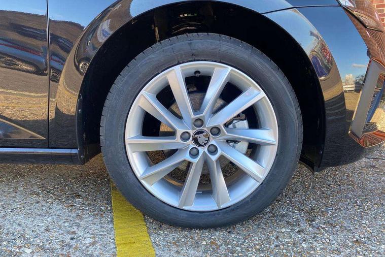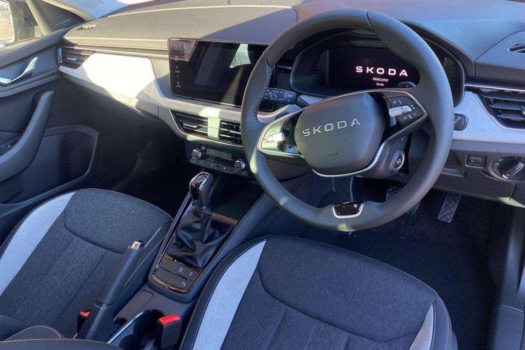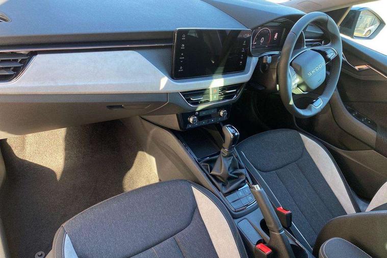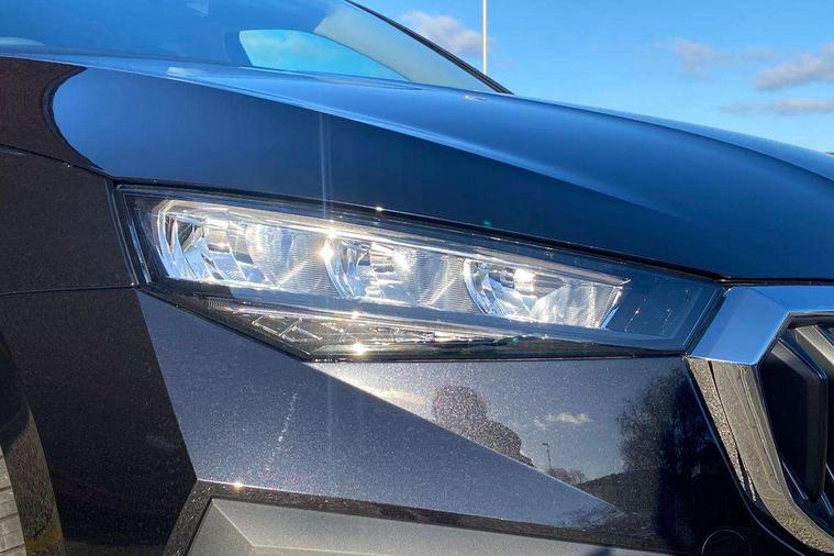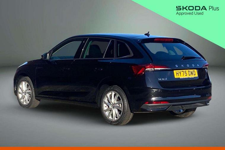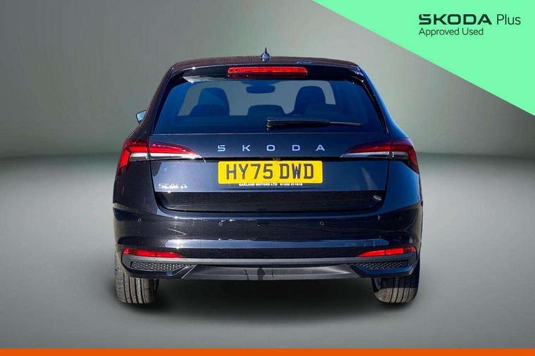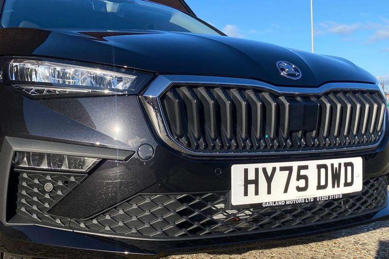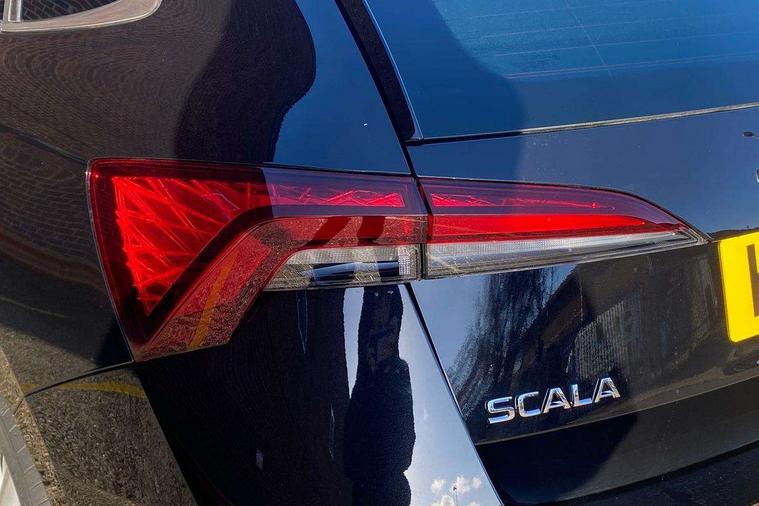 Advanced driver attention and drowsiness monitor, Bluetooth, e-Call (emergency call), Front assist system, PAS, Rear parking sensors, Rear view camera, Speed limiter, Tailgate, Traffic sign recognition, Virtual Cockpit - 10.25" digital display, Voice control system, Wireless smartlink, 4 USB C ports, 8 Speakers, 9.2" Skoda navigation display, DAB radio, Auto dimming rear view mirror, Automatic headlight control with manual coming and leaving home feature, Automatic intermittent wipers, Body colour bumpers, Body colour door mirrors and handles, Chrome moulding around grille, Chrome window frames, Front and rear electric windows, Heated rear window, LED 3rd brake light, LED daytime running lights, LED high beam, LED low beam, Light sensors, Privacy glass, Rear LED fog light, Rear side wing doors, Rear wiper, Tinted windows, Unique dark chrome design logo on alloy wheels, 12V socket in luggage compartment, 3 seat bench in 2nd row, Ambient lighting in white/red, Black / Copper armrest stitching, Cargo elements, Chrome inner door handles, Copper hotstamping, Door inserts in accent black, Driver and passenger sun visors with vanity mirror, Dual zone climate control, Front and rear roof lights, Front centre armrest, Front head restraints, Glasses storage in roof liner, Height adjustable driver seat, Height adjustable passenger seat, Ice scraper, Illuminated glove compartment, Inner circulation control with pollen filter, ISOFIX for front passenger seat, Isofix preparation for back seats, Leather gearknob and handbrake lever, Lodge cloth upholstery, Luggage net under rear parcel shelf, Manual lumbar support for front seats, Net package and top tether hooks in boot space, Pocket on the back of both front seats, incl. mobile phone pockets, Rear centre armrest, Single front passenger seat, Skoda lettering on steering wheel, Textile floor mats, Third rear headrest, Ticket holder, Top tether for front passenger seat, Umbrella in driver's door, Convenience pack without rear camera - Scala, 3x3 point rear seatbelts, ABS, Child locks, Curtain airbags and front side airbags, Disc brakes, Driver and front passenger airbags, ESP, Hill hold control, Manual leather parking brake, One tone horn, Passenger airbag switch off function, Seatbelt reminder for driver and front passenger, Tyre pressure monitoring system, Anti theft alarm system with interior monitoring, backup horn and towing protection, Anti-theft wheel bolts, Remote central locking with 2 remote folding keys, SAFE function for remote central locking, Decorative inserts,