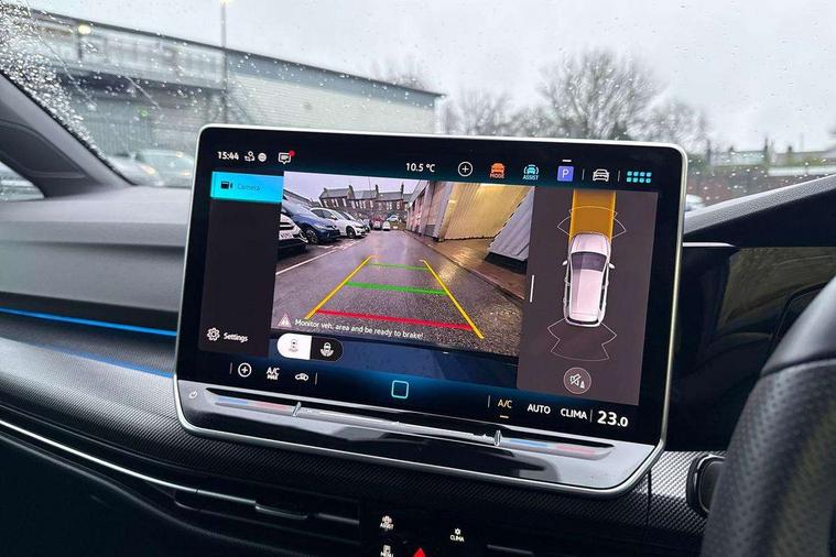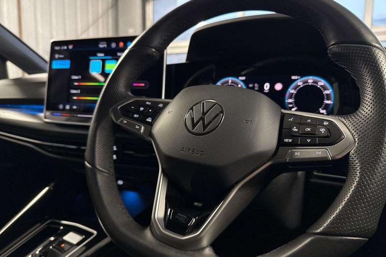 Activated carbon canister, Adaptive cruise control (ACC), Advanced driver attention and drowsiness monitor, Dynamic road sign display, Dynamic steering, E-Sim card for online connectivity, eCall emergency call system, Multi-color Digital cockpit pro, selection of different info profile possible, Multifunction front facing camera for distance control, Navigation system, Oncoming vehicle braking when turning including swerve support, Preparation for light assist system, Speed limiter, Speedo, rev counter, electronic odometer, trip, service interval display, exterior temperature and fuel gauge, Traffic jam assist, Voice enhancer and voice control, Warning signal and warning light for front and rear seatbelts not fastened, We connect plus preparation, We connect preparation, Wireless app connect, Diesel particulate filter, Hybrid propulsion system, Start-stop system with battery regeneration (recuperation - energy recovery during braking), XDS electronic differential lock for improved traction and handling, 2 USB C ports in front, 2 USB charging sockets on the centre console in the rear charging capacity upto 45W, Comfort telephony + wireless charging, without wireless aerial connection, Digital radio reception (DAB), Diversity antenna for FM reception, Gaming platform via car app, Infotainment system with 12.9" display, Mobile phone interface with inductive charging feature, 3rd brake light, Auto headlights, Automatic headlamp activation with Coming home and Leaving home feature, Body colored bumpers in R-Line style, Body colour door handles, Exterior ambient lighting with illuminated door handles, Exterior mirrors convex on the left and aspherical on the right, Front and rear electric windows, Heat insulating windshield made of laminated glass, LED daytime running lights, Rear exhaust tailpipe, Rear fog light on one side and reversing lights on both sides, Rear side wing doors, Rear windscreen washer and wiper with interval delay, Remote electrically foldable door mirrors, puddle lights and reverse activated passenger's door mirror, Welcome light with surround lighting, 12V socket in front centre console, 12V socket in luggage compartment, 3 rear head restraints, 3 seat bench in 2nd row, Ambient lighting with 30 colour including LED light unit in front footwell with selectable light colour, Brushed stainless steel pedals, Carpet mats, front and rear, Chrome plated radiator grille inserts, air vent surrounds and light switch surrounds, Front centre armrest, Integrated front head restraints, ISOFIX anchors for child seats on outer rear bench seats and on front passanger seat compatible for i-Size, Luggage compartment lighting, Plastic gear knob, Premium sports seats in front, Rear cupholder and loadthough, Single front passenger seat, Soul black instrument panel, Split folding backrest with centre armrest and unsplit rear seat bench, Storm grey roof lining, Sun visors with illuminated vanity mirrors, 3 point height adj front seatbelts + pretensioners, 3 rear three point seatbelts, ABS, Autonomous emergency braking front assist with pedestrian and cyclist monitoring, Child locks on rear doors, Driver and front passenger airbag with front passenger airbag deactivation, Electronic parking brake with auto hold, ESC (Electronic Stability Control), Extended pedestrian protection measures, Hill start assist, Rear disc brakes, Two tone horn, Tyre pressure loss indicator, Volkswagen roadside assistance, Anti theft wheel bolts, Preparation for alcohol interlock, Decorative inserts carbon grey for dashboard and front door trim panels,