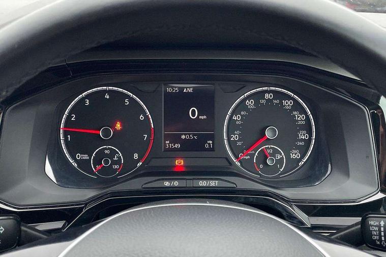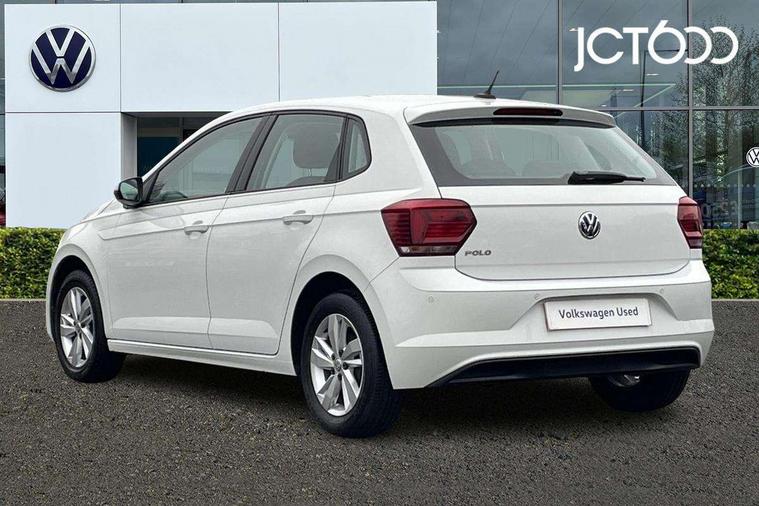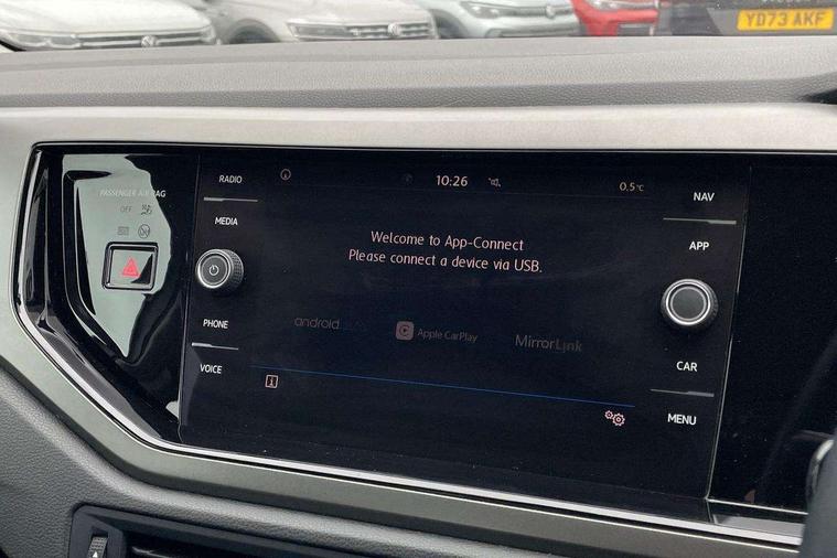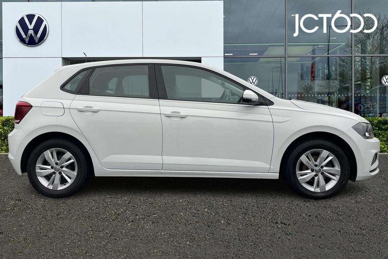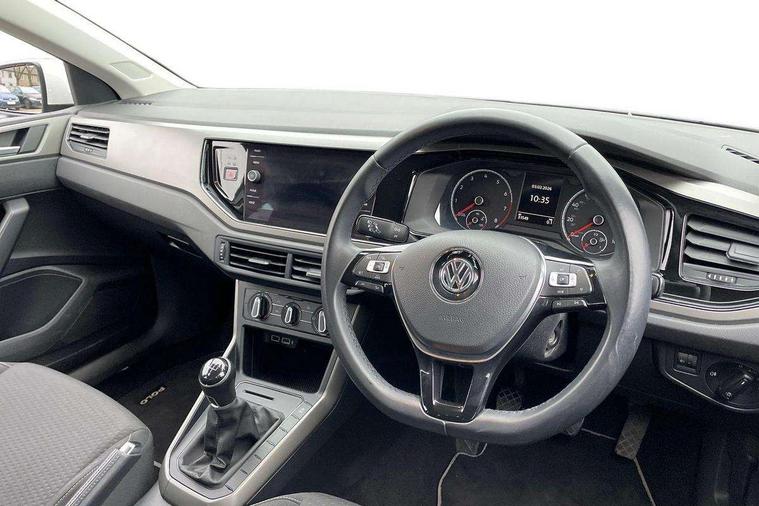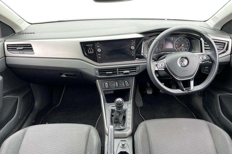 App-Connect, Bluetooth Telephone preparation, Discover navigation + European map data, Driver alert system, Multifunction colour display, PAS - speed related, Service interval indicator, Start/stop system, Trip computer, Warning buzzer and light for front seatbelts unfastened, Battery regeneration during braking, 6 speakers, Composition media system with radio, glovebox mounted CD, colour touch screen, SD card, aux-in, USB, multimedia interface, DAB Digital radio, Black grille with chrome surround, Black radiator grille with chrome insert, Body colour bumpers, Body colour door handles, Body colour rear spoiler, Body coloured side sills, Electric front windows, Front wash/wipe with interval delay, Fully galvanised body, Heat insulating tinted glass, Heated rear window with auto timer, High level 3rd brake light, LED daytime running lights, LED rear number plate lights, Rear electric windows, Rear windscreen washer and wiper with interval delay, 12V power socket in centre console, 2 bag hooks in luggage compartment, 2 cupholders, 3 rear head restraints, 3 spoke steering wheel, 4 grab handles, 60/40 split folding rear seat, Centre console storage, Chrome interior door handles, Chrome plated light switch, Driver/front passenger seat height adjustment + underseat drawers, Driver/passenger sunvisors with illuminated vanity mirrors, Dust/pollen filter, Front door pockets, Front seat backrest storage nets, Front/rear reading lights, Gear lever gaiter in high glass black trim surround, Glovebox, Handbrake grip button in chrome effect, Height/reach adjustable steering column, Instrument lighting, white adjustable panel illumination, Interior light with delay, Isofix Preparation 2 Rear child seats, Jack and tool kit, Luggage compartment cover, removable, Luggage compartment lighting, Multifunction leather steering wheel with leather gear knob/handbrake grip, Storage compartment in front doors, Storage compartment in rear doors, Storage compartment under front seats, Sunglasses holder, Variable boot floor, Variable Luggage compartment, Light and sight pack - Polo, 3 point height adj front seatbelts + pretensioners, 3x3 point rear seatbelts, ABS, Automatic post collision braking, Driver/front passenger airbag, Driver/Passenger whiplash optimised head restraints, ESP with EDL + ASR, Front and rear passengers curtain airbag system including front side airbags, Front disc brakes and rear drum brakes, Front passenger airbag deactivation, Hill hold control, Hydraulic Brake Assist (HBA), Two tone horn, Tyre pressure monitoring system, Alarm with remote central locking and interior protection, Electronic engine immobiliser, Air vents in High gloss black, Black high gloss trim, Full size spare wheel,