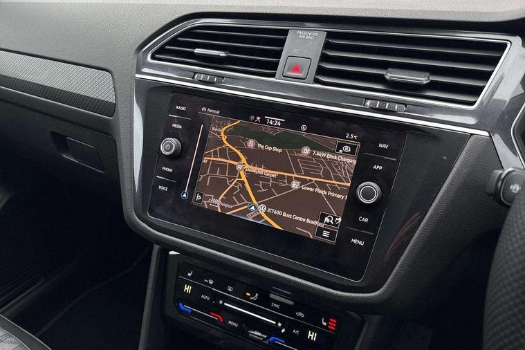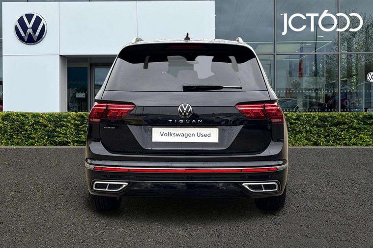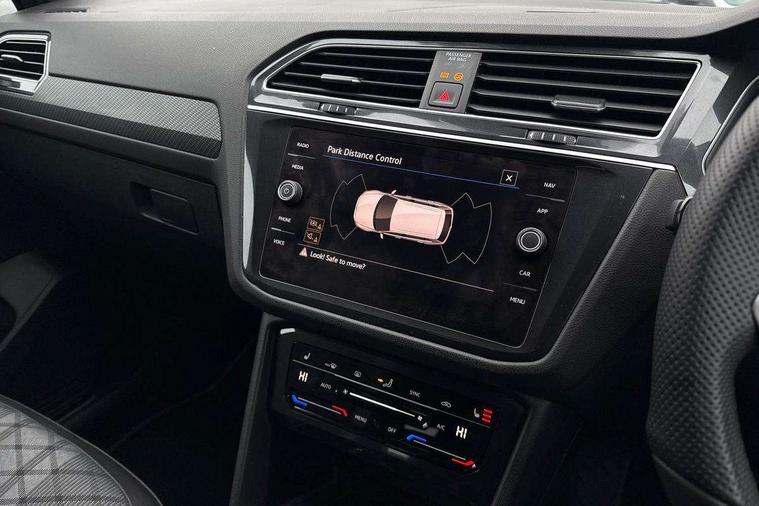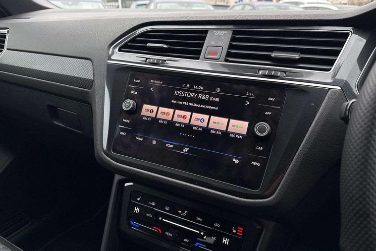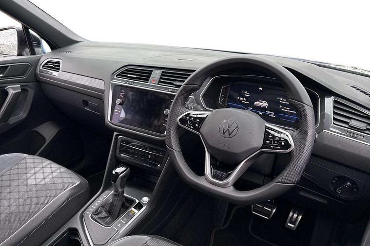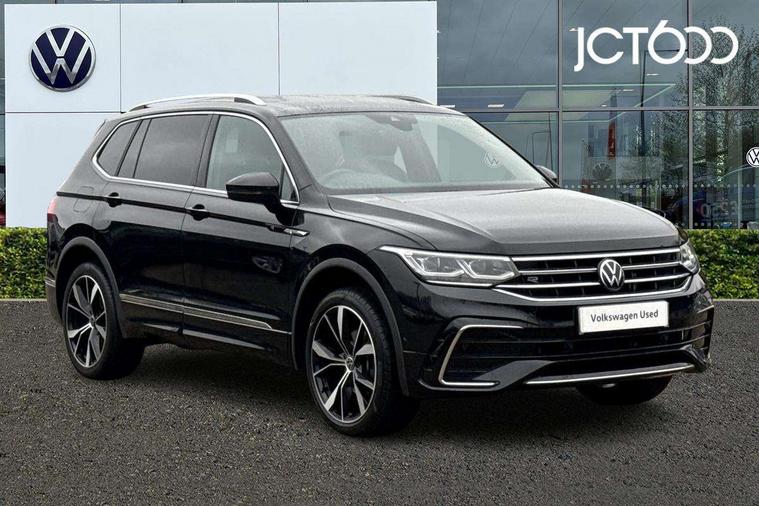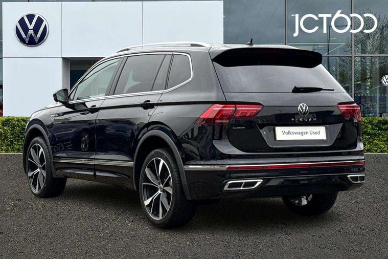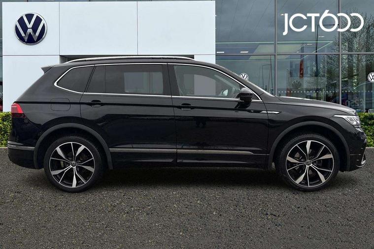 Adaptive cruise control, Advanced driver attention and drowsiness monitor, App-Connect, Digital cockpit pro, Driver profile selection, eCall emergency call service, Electric boot lid, Lane change assist, Lane keeping system Lane Assist, Mobile phone interface comfort with inductive charging feature, Multifunction front facing camera, Progressive steering, Speedo and rev counter, electronic odometer, trip, service interval display and exterior temperature gauge, Diesel particulate filter, Front wheel drive, Start-stop system with battery regeneration (recuperation - energy recovery during braking), 2 USB-C ports in the front, 1 USB-C charging socket on the center console in the rear, DAB Digital radio, Diversity antenna for FM reception, Auto dimming interior rear view mirror, Automatic headlight control system, Chrome mouldings on side window, Coming/leaving home lighting function, Exterior badge deletion, Rain sensor, Rear fog light, Rear side wing doors, Rear spoiler in R style, Rear wiper, Silver roof rails, Third brake light, 12-volt outlet in centre console rear and luggage compartment, 12V socket in centre console, 3 head restraints in rear, 3 individual folding 2nd row seats, 3rd row 2 individual seats, Air Care Climatronic 3 zone automatic climate control with enhanced air filter and controls in the rear, Black roof lining, Door and side trim panel with leatherette insert, Drawers under front seats, Driver + front passenger lumbar support, Driver and front passenger seat height adjustment, Foldable front passenger seat backrest, Front + rear carpet mats, Front centre armrest, Front footwell illumination, Illuminated scuff plates, ISOFIX anchorage points for mounting 2 child seats on rear seats and i-Size child seats, Leather gearshift handle, Leather wrapped multi function sports steering wheel with touch control and shifting paddles, LED interior light with switch off delay/dimmer and 2 front/rear LED reading lights, Stainless steel pedals, Sun visors with illuminated vanity mirrors, Top comfort sports seats in front with 'R' Logo, Ambience pack - Tiguan Allspace R Line, Driver assistance plus package - Tiguan Allspace, Park assist pack - Tiguan Allspace, 3 point seat belt for centre rear seat, 3 rear three point seatbelts, ABS+EBD+Brake assist, Driver and front passenger safety-optimised head restraints, Driver's and front passenger's airbag with front passenger's airbag deactivation switch, Electronic parking brake, Electronic Stability Control (ESC) inc EDL (Electronic Differential Lock) and ASR (Traction Control), Height adjustable front 3 point seatbelts + pretensioners, Manual rear child locks, Pedestrian monitoring, Rear disc brakes, Side airbag in front and rear with curtain airbag, Two tone horn, Warning buzzer for seatbelts if unfastened, Anti theft alarm system with interior monitoring, backup horn and towing protection, Anti-theft wheel bolts, Remote central locking with 2 remote folding keys,
