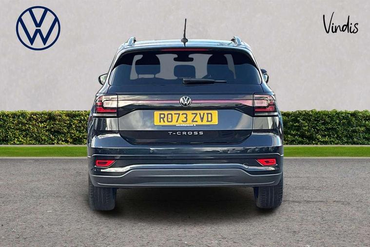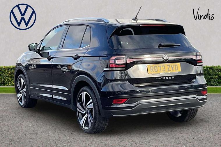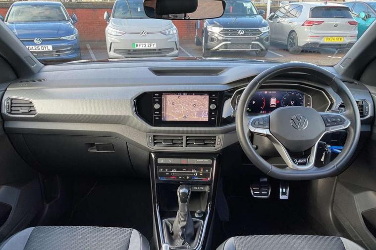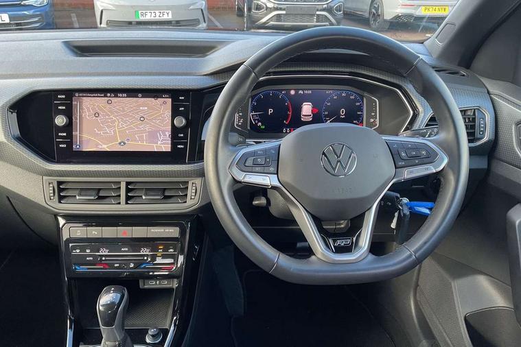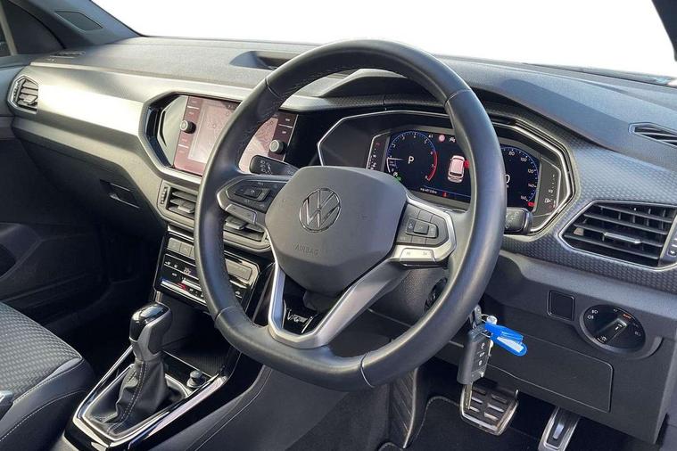 'Lights On' Reminder warning buzzer, 2D/3D map view, Active info display - 10.25" High resolution TFT dash display screen, Adaptive cruise control including front assist, forward collision warning, autonomous emergency braking, speed limiter, Blind spot monitoring, Bluetooth telephone and audio connection for compatible devices, Car information display, Driver alert system, eCall emergency call system, Lane assist, Low washer fluid warning light, Multifunction computer with visual gear change recommendation for fuel consumption, Operating permit alteration, Power assisted speed sensitive steering, Speed limit display, Speedo, rev counter, electronic odometer, trip, service interval display, exterior temperature and fuel gauge, Stop/start system, Tailgate, Warning sound and light for doors and tailgate open, Warning sound and light for front seatbelts unfastened, We connect plus preparation, Wireless Car net app connect with Apple CarPlay, combined functionality of Apple CarPlay/Android Auto and MirrorLink, Battery regeneration during braking, Misfuel prevention device, 2x USB connection with USB charging sockets and in rear centre console, DAB Digital radio receiver, Diversity antenna for FM reception, Multi device interface (MDI) with USB connection, Music playback - MP3, WMA and AAC files, Premium USB cable for Apple or Android smartphone compatibility, Simultaneous pairing of 2 compatible mobile devices, SMS Functionality, Three route options - Fast, Short, Eco, Title and cover art display, Automatic hazard lights activation under emergency braking, Body colour door handles, Body colour door mirrors with integrated indicators, Body colour rear roof spoiler, Body coloured bumpers, Dusk sensor + automatic driving lights, Electrically foldable, adjustable and heated door mirrors with reverse activated kerb view adjustment on passenger's side, Front and rear electric windows, Front fog lights with static cornering function, Galvanised body, Heated rear window, LED third brake light, Lower door sills and door pillars in black, Radiator grille with chrome trim and chrome bezel front fog lamp, Rear fog light on one side, reversing light on both sides, Rear lights incorporating LED technology, Rear side wing doors, Rear tinted glass 65% approx light absorbing from B pillar backwards, Rear window aerial, Rear windscreen washer and wiper with interval delay, Reflectors in all doors, Silver roof rails, Stainless steel door sill protection, Tailgate with integrated roof spoiler, Unique R Line badging, Windscreen wipers/ intermittent wipe + 4 position delay, 12V Accessory socket in centre console, 2 Front and rear reading lights incorporating LED technology, 2 Zone electronic climate control with automatic air recirculation, 3 rear head restraints and 3 rear three point seat belts with ECE label, 3 seat bench in 2nd row, 60/40 split folding rear seat backrest, Ambient lighting and sourround lighting, Black headlining, Branded points of interest, Brushed stainless steel pedals, Carbon flag cloth upholstery, Drawer under drivers seat, Driver and front passenger sunvisor with vanity mirror, Driver's sunvisor with ticket holder, Dust and pollen filter, Front and rear carpet mats with contrast stitching, Front centre armrest with storage compartment, Front footwell illumination, Front seat back storage pockets, Front seat R Line logo with rear seat backrest, Front sports seat with height and lumbar adjustment, Glovebox, Heating and fresh air system with 4 stage blower, Height/reach adjust steering wheel, Instrument lighting white adjustable panel illumination, Interior light with delay, Isofix child seat preparation for 2 rear child seats, Leather trimmed three spoke multifunction steering wheel with contrast stitching and aluminium inserts with R Line logo, Luggage compartment cover, Luggage compartment lighting, Moveable and foldable Rear bench seat, Scuff plates in door apertures, Steering wheel paddle shift, Storage compartment in drivers and front passengers door, R Line styling pack - T-cross, 3-point seat belts in front with electric tensioner + height adjustment, Anti-lock Braking System (ABS) with Hydraulic Brake Assist (HBA), Automatic post collision braking system, Driver and front passenger safety-optimised head restraints, Drivers and Front Passengers airbags with front passengers airbag deactivation switch, ESC with EDL, ASR, EDTC and trailer stabilisation function, Front and rear curtain airbags, Front seat side impact airbags, Hill start assist, Pre crash preventive occupant protection, Proactive passenger protection system in combination with front assist, Rear door child safety locks, Rigid safety cell with front and rear crumple zones, Single torn horn, Tyre pressure loss indicator, Volkswagen roadside assistance, Alarm with interior protection and deactivation via infotainment system, Child security locks in rear doors, Electronic engine immobiliser, Remote tailgate unlocking using key fob, Race decorative inserts in dash and doors, 18" Nevada black alloy wheels, Breakdown kit,