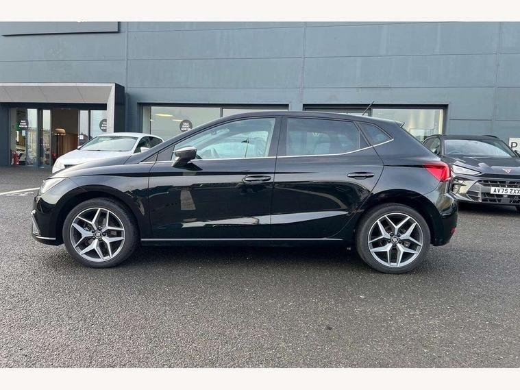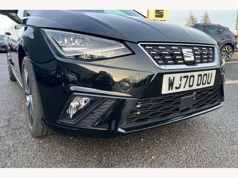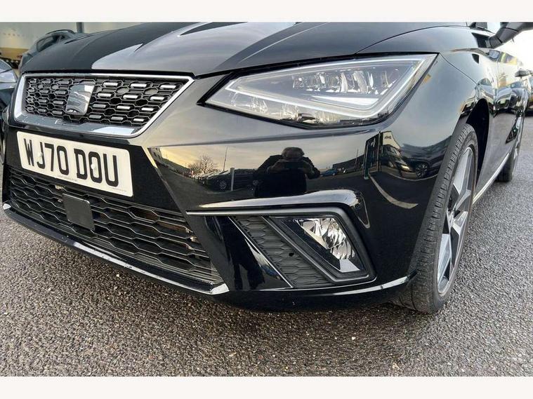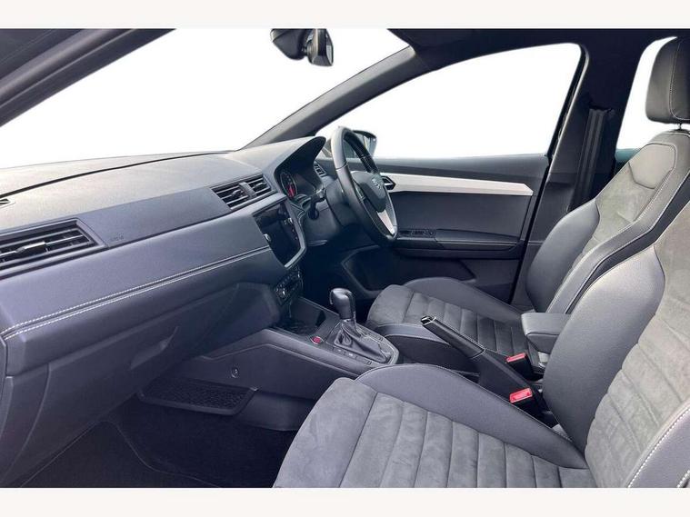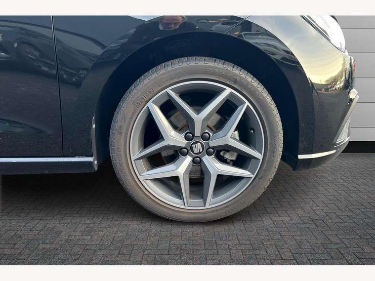 'Lights On' Reminder warning buzzer, Bluetooth Handsfree Phone Connection, Cruise control, Digital clock, Full Link Smartphone Integration with Mirror Link, Apple Car Play, Google Android Auto, Low fuel warning light, Outside temperature gauge, Power Steering, Rear parking sensor, Satellite navigation system with 3D mapping, 8" touch screen, voice control and additional USB port, SEAT logo boot release, Trip computer, Comfort suspension, 6 speakers, Auxiliary input socket, CD player, Digital Audio Broadcast (DAB) Tuner, Radio/MP3 player, SD card slot, SEAT USB media cable, Steering wheel mounted controls, USB port, Anti theft roof antenna, Atom grey door mirrors, Auto dimming rear view mirror, Automatic headlights, Automatic rain sensing wipers, Body colour bumpers, Body colour door handles, Chrome front grille frame, Chrome grille, Chrome side window trim, Coming/leaving home lighting function, Cornering front fog lights, Dark tinted rear windows, Electric folding door mirrors, Electric front windows, Electric headlight adjustment, Electric rear windows, Electrically adjustable and heated door mirrors, Full LED headlights, LED daytime running lights, LED tail lights, Rear fog lights, 3 rear headrests, 60/40 split folding rear seat, Door and steering wheel ice metal decorative inserts, Driver's sunvisor with ticket holder/vanity mirror, Dual zone climate control, Dust/pollen filter, Front centre armrest, Front courtesy lights, Front cupholders x 2, Front reading lights, Front seat and rear pockets, Gear shift indicator, Glovebox, Height adjustable driver's seat, Height adjustable front/rear head restraints, Height adjustable passenger seat, Height/reach adjust steering wheel, Illuminated boot, Instrument lighting with brightness control, Leather handbrake, Leather steering wheel and gear knob, Microsuede cloth upholstery, Multi-colour ambient interior lighting, Passenger sunvisor, Rear top tether child seat ISOFIX attachment, Steering column mounted gear shift paddles, Storage box under drivers seat, Full LED headlight pack - Ibiza, 3 point seatbelts on all 3 rear seats, ABS, Active front headrests, Child locks on rear doors, Curtain airbags, Driver/Front Passenger airbags, ESP+EBA, Front assist (AEB), Front passenger airbag deactivation, Front side airbags, Hill hold control, Multi-Collision braking, Seatbelt warning, Tiredness recognition system, Tyre pressure monitoring system, Electronic engine immobiliser, Keyless entry and go, Locking wheel bolts, Remote central locking + deadlocks, Volumetric alarm with back up horn, Leather dashboard, 17" Dynamic alloy wheels,