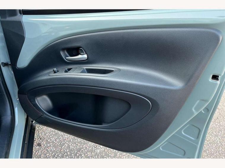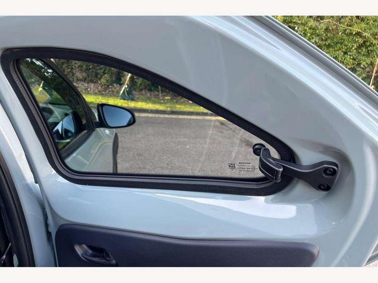 4.2" TFT colour screen, Adjustable speed limiter, Analogue speedometer, Bluetooth connectivity, Digital tachograph, Driver attention alert system, eCall emergency call system, Electric power steering, Intersection turn assist, Key reminder warning, Noise reduction kit, Pre collision system with emergency steering assist, Reversing camera with static guide lines, Smart phone integration with Apple car play/Android Auto, Speed limit display, Start and stop, Vehicle Stability Control (VSC), 4 speakers, 9" HD multimedia display touch screen with Toyota smart connect, DAB digital audio broadcast, USB connector, Auto headlights, Auto wipers, Automatic headlights cut-off, Bicycle towing hook, Black contrast roof, Black side protection mouldings, Black wheel arch mouldings, Body colour door handles, Body coloured front bumper, Boot door scuff plate, Eclipse black rear bumper, Electric heated door mirrors, Follow me home headlights, Front fog lights, Front power windows, Gloss black door mirrors, Gloss black upper front grille, Headlight cut-off reminder, LED daytime running lights, LED front light guide, LED High mounted stop lamp, Manual day/night rear view mirror, Manual headlight levelling, Pagoda roof, Power adjustable door mirrors, Power back door, Privacy glass, Projector halogen headlights, Rain sensor, Rear combination lights LED bulb type, Rear side wing doors, Rear windscreen defogger, Rear windscreen wiper, Short antenna, Variable intermittent windscreen wipers, 12v power outlet - front, 2 seat bench in 2nd row, 3 spoke leather steering wheel, 50/50 split folding rear seat, Adhesive roof headlining, Adjustable speed limiter switch on steering wheel, Audio and telephone switches on steering wheel, Auto air conditioning, Black insert on steering wheel, Black roof lining, Boot light, Centre room light, Chrome interior door handles, Chrome surround on air conditioning buttons, Clean air filter, Console box storage in body color, Fabric upholstery, Floor mats, Front and rear cup holders, Front head rest deco art, Front head restraints, Height adjustable driver seat, Intelligent adaptive cruise control switch on steering wheel, ISOFIX child restraint system on rear seats, Lane departure alert switch on steering wheel, Leather gearshift knob, Manual tilt steering wheel, Manually reclining and sliding driver seat, Manually reclining and sliding front passenger seat, Multimedia switches on steering wheel, Pollen filter, Rear door pockets, Rear head restraints, Satin silver insert on gear shift knob, Single compartment glovebox with lights, Single front passenger seat, Soft tonneau cover, Sun visors with mirror on driver and passenger side, Voice recognition switch on steering wheel, Toyota safety sense pack - Aygo X, Anti lock braking system + Electronic brake force distribution, Child safety door lock, Emergency brake light signal (EBS), Hill start assist control (HAC), Passenger airbag on/off switch, Seat belt reminder for front and rear seats, Supplement restraints system (SRS) - 6 airbags, Traction control, Tyre pressure warning system, Immobiliser, Remote power door locks, Black wheel centre caps, Tyre repair kit,