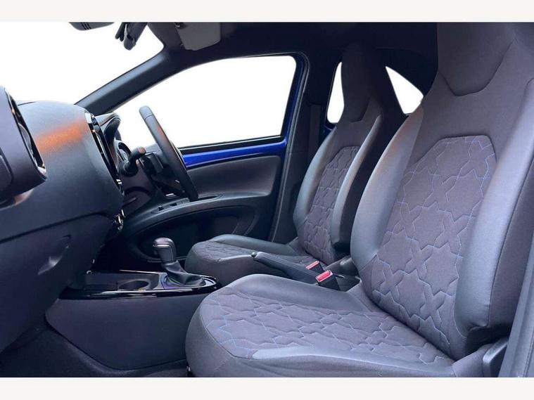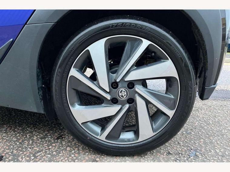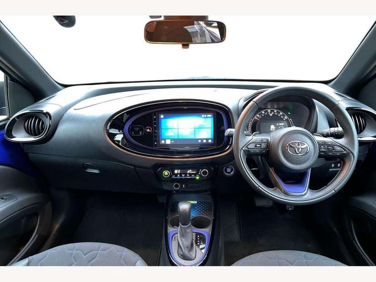 4.2" TFT colour screen, Adjustable speed limiter, Analogue speedometer, Bluetooth connectivity, Digital tachograph, Driver attention alert system, eCall emergency call system, ECO-driving indicator, Electric power steering, Front and rear parking sensors with auto brake, Intersection turn assist, Key reminder warning, Noise reduction kit, Pre collision system with emergency steering assist, Remote boot door release on key, Reversing camera with static guide lines, Smart entry and push button start, Speed limit display, Start and stop, Wireless charger, Wireless Smartphone Integration includes Apple CarPlay and Android auto, Vehicle Stability Control (VSC), 4 speakers, 9" HD multimedia display touch screen with Toyota smart connect, DAB digital audio broadcast, USB connector, Auto headlights, Auto wipers, Automatic headlights cut-off, Automatic high beam On/Off switch, Bicycle towing hook, Black fog light surrounds, Black side protection mouldings, Black wheel arch mouldings, Body colour door handles, Body coloured front bumper, Boot door scuff plate, Eclipse black rear bumper, Electric heated door mirrors, Follow me home headlights, Front and rear underruns in silver, Front fog lights, Front power windows, Gloss black door mirrors, Gloss black upper front grille, Headlight cut-off reminder, LED daytime running lights guide, LED front light guide, LED High mounted stop lamp, LED projector headlights, Manual day/night rear view mirror, Manual headlight levelling, Pagoda roof, Power adjustable door mirrors, Power back door, Privacy glass, Rain sensor, Rear combination lights LED bulb type, Rear side wing doors, Rear windscreen defogger, Rear windscreen wiper, Remote hazard lights system, Short antenna, Variable intermittent windscreen wipers, 12v power outlet - front, 2 seat bench in 2nd row, 3 spoke leather steering wheel, 50/50 split folding rear seat, Adhesive roof headlining, Adjustable speed limiter switch on steering wheel, Audio and telephone switches on steering wheel, Auto air conditioning, Black roof lining, Body colour satin anodised insert on steering wheel, Boot light, Centre room light, Chrome interior door handles, Chrome surround on air conditioning buttons, Clean air filter, Console box storage, Floor mats, Front and rear cup holders, Front head rest deco art, Front head restraints, Gear shift indicator, Height adjustable driver seat, Intelligent adaptive cruise control switch on steering wheel, ISOFIX child restraint system on rear seats, Lane departure alert switch on steering wheel, Leather gearshift knob, Light blue ambient lighting in centre console, Manual tilt steering wheel, Manually reclining and sliding driver seat, Manually reclining and sliding front passenger seat, Multimedia switches on steering wheel, Paddle shift levers on steering wheel, Partial synthetic leather upholstery, Pollen filter, Rear door pockets, Rear head restraints, Remote air-conditioning system, Satin silver insert on gear shift knob, Single compartment glovebox with lights, Single front passenger seat, Soft tonneau cover, Sun visors with mirror on driver and passenger side, Voice recognition switch on steering wheel, Toyota safety sense pack - Aygo X, Anti lock braking system + Electronic brake force distribution, Child safety door lock, Emergency brake light signal (EBS), Hill start assist control (HAC), Passenger airbag on/off switch, Seat belt reminder for front and rear seats, Supplement restraints system (SRS) - 6 airbags, Traction control, Tyre pressure warning system, Immobiliser, Remote power door locks, Black wheel centre caps, Tyre repair kit,