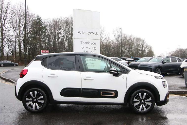 Coffee Break Alert, Cruise control + speed limiter, eCall emergency call system, Exterior temperature display, Instrument cluster with white LCD and analogue gauges, Multi function trip computer, Reversing camera, Variable assistance power steering, USB connection, 3D rear light signature, Airbump on side door panel, Auto headlights, Automatic activation of hazard warning lights, Badge under exterior door mirrors, Body colour bumpers, Body colour door handles, C column sticker, C-Series Edition roof sticker, Chrome decoration on front face, under chevrons and around daytime running lights, Citroen illuminated signature in LED headlights and LED daytime running lights, Dark tinted tailgate and rear side windows, Electrically adjustable door mirrors, Electrically folding door mirrors, Fog lights integrated into front bumper, Front sequential electric windows with one-touch open/close and anti-pinch system, Heated door mirrors, LED Headlights, LED third brake light, Matt black finish B pillar, Perla nera black bi-tone roof, Rear sequential electric windows with one-touch open/close and anti-pinch system, Rear side wing doors, Rear windscreen wiper with intermittent mode linked to vehicle speed and automatic activation when reverse gear selected, Roof colour rear view mirror caps, Standard day night switchable interior rear view mirror, Variable front intermittent wipers, 1/3 to 2/3 split folding rear seat, 12V socket, Automatic air conditioning, Boot light, C-Series Edition carpet mats, Driver and passenger's sun visor with courtesy mirror, Driver's seat height adjustment, Front lighting panel with map reading lights, Front seats adjustable with forward back slide and adjustable backrest, Height adjustable front head restraints, Height/reach adjust steering wheel, ISOFIX mounting on outer rear seats with top tether and labels indicating fixing points, Mica cloth upholstery, Parcel shelf, Row 2 - Three seats with individually adjustable head rests, Seatbelt unfastened on the move audible and visual alert for front and rear seats, Single front passenger seat, Soft touch gear lever with leather effect gaiter and overstitching, Standard ambience, Steering wheel with satin chrome elements and audio/telephone controls, Three rear headrests, Upholstered armrest in front and rear doors, Anodised bronze colour pack - C3, C-Series Edition style pack - C3, Safety pack 1 - C3, Visibility pack with automatic lights - C3, ABS with Electronic brakeforce distribution and Emergency braking assistance, Driver and front passenger seatbelts with pyrotechnic pretensioners and force limiters, Driver's airbag, Electric child locks, ESP with anti skid system, Front passenger airbag, Front passenger airbag deactivation, Front side airbags + front/rear curtain airbags, Hill start assist, Manual parking brake with chrome finish button, Mono-tone horn, Outer rear seats with pretensioners and force limiters, Three rear 3-point seatbelts, Tyre pressure monitoring system, Anti theft alarm, Automatic door and boot locking when moving off with automatic unlocking in case of impact, Central locking with locked indicator and interior one touch lock button, Immobiliser, Remote control central locking with two plip keys, Soft touch leather effect dashboard finish with grey surround, 16" Matrix diamond cut alloy wheels, Tyre puncture repair kit,