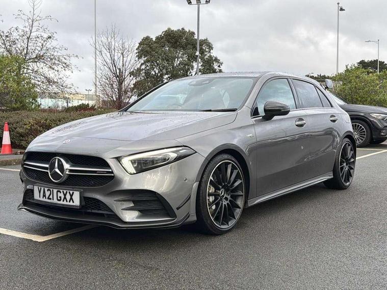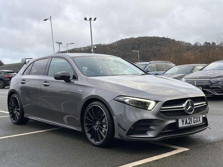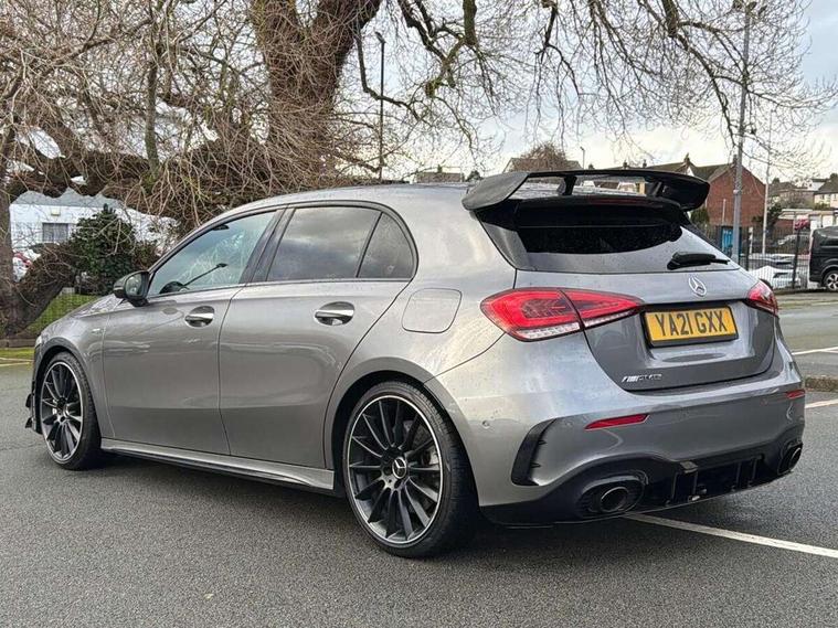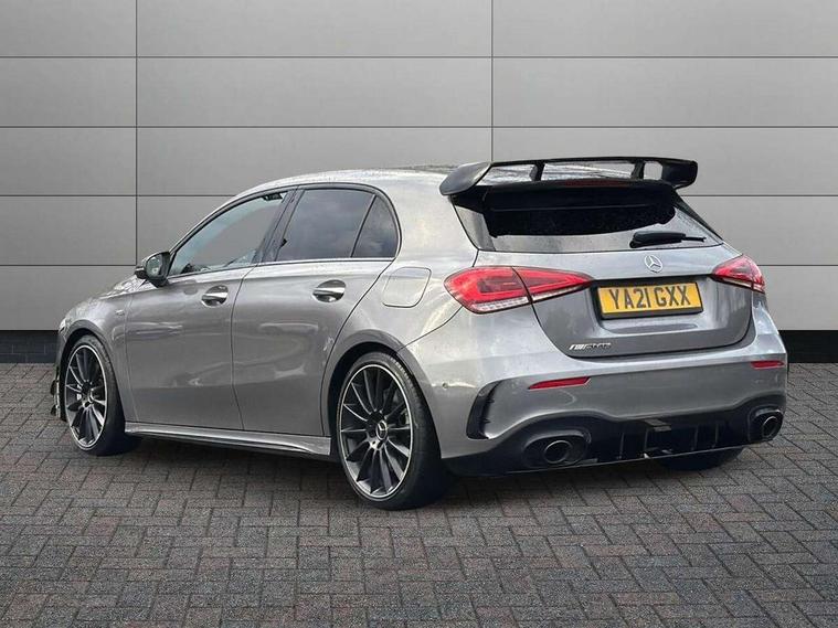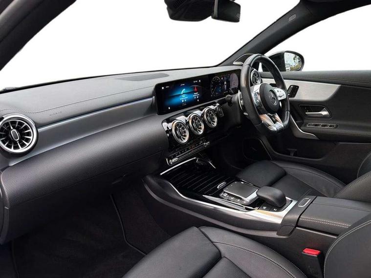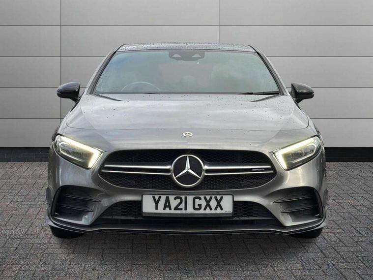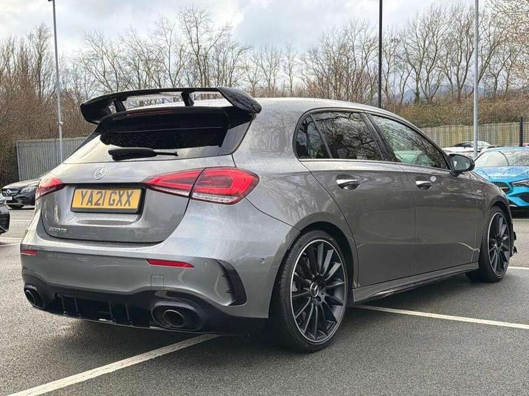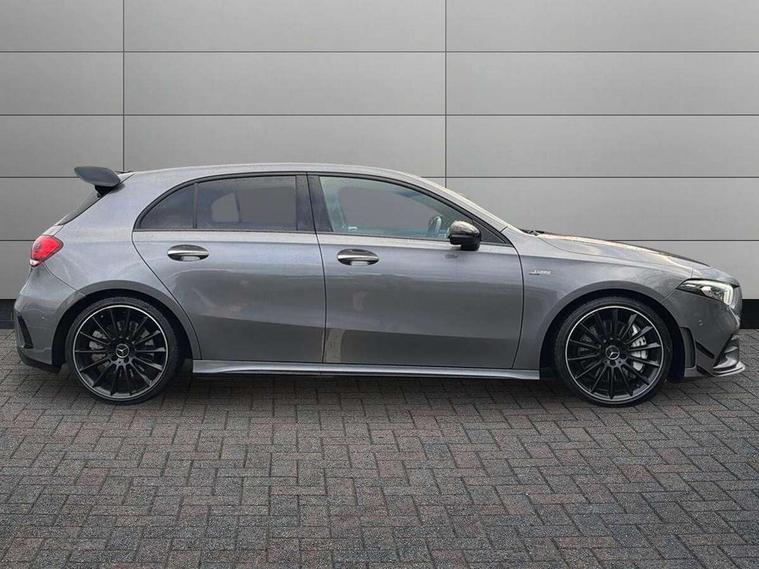 10.25" Digital instrument cluster display screen, 10.25" media display, 180 degree rear view camera with parking guidelines, Active parking assist with visual and audible warning of detected obstacles, Attention assist, Brake pad wear indicator warning light, Car wash mode, Direct steering, Dual bluetooth interfaces, DYNAMIC SELECT with driving programs (Slippery, Comfort, Sport, Sport+ and Individual), ECO start/stop function, Fluid level warning indicator for fuel, oil, coolant and washer fluid, Hard-disk navigation, Hey Mercedes Voice activation, Lamp failure indicator, MBUX augmented reality for navigation, Mercedes me connect including emergency call system, accident recovery, breakdown and maintenance management, Mercedes me remote services, Outside temperature gauge, Owners manual in English, Pre-installation for private car sharing, Preinstallation for Mercedes Benz link, Service indicator (ASSYST), Smartphone integration with Apple CarPlay and Android auto, Traffic sign assist, Trip computer, Ultrasonic sensors positioned in the front and rear bumpers, Wireless charging, Rear axle multi-link, 2 USB ports (type C) in rear stowage compartment and one in front of center console, Burmester surround sound system - 590W, DAB Digital radio, MBUX multimedia system with DAB digital radio and touchpad including satellite navigation, 4 Electric Front and Rear windows, Adaptive brake lights, AMG bodystyling - Front apron with splitter in chrome, rear apron with chrome trim and chrome visible trim elements in tailpipe, AMG Front apron with flics as air deflector elements on the outer air intakes, AMG radiator grille with twin blade lamella and AMG Lettering, AMG Rear apron with specific diffuser look with four vertical fins and two round chrome plated tailpipe trim elements with a diameter of 90 mm, AMG spoiler lip on roof, AMG Sports exhaust system with two round tailpipes measuring 90 mm in diameter attached in rear apron, AMG lettering plus ribbing on the inside of the, Black weather strip, Body colour bumpers, Body colour door handles, Body colour side skirt, Electric adjustable and heated door mirrors with integrated LED side indicators, Front wings wheel arches with TURBO 4MATIC lettering, Headlamp assist automatic headlamp activation, Heated glass rear windscreen + timer control, High gloss black beltline, LED high performance headlamps with integrated LED daytime running lights, LED tail lamp, LED third brake light, Multibeam LED with adaptive highbeam assist plus, Panoramic sliding sunroof, Privacy glass, Radio aerial, Rain sensing windscreen wipers with two sensitivity settings, Rear fog lights, Rear wiper, Trim elements on louvres in outer air inlets in silver chrome, Wider wheel arches for AMG wheels, Window line trim strip in high gloss black, 40:20:40 split folding rear seats, AMG Performance steering wheel in nappa leather, Auto Mercedes-Benz child seat recognition sensor, Black air vents with surround in silver chrome, Black roof lining, Brushed stainless steel sports pedals with rubber studs, Controller on centre console with chrome surround, Electrically adjustable front memory seats including lumbar support, Floor mats with stitched edging and AMG lettering, Front centre armrest with storage compartment, Front seat backs luggage nets, Front seat cushion length adjustment, Heated front seats, Height/reach adjustable steering column, Illuminated front door sills with changeable cover, Interior lighting - 64 colour Ambient lighting, Interior mirror with reading lamps in black and frameless, Rear armrest with 2 cupholders, Rear head restraints, Seat occupancy sensor for front passenger seat, Silver coloured aluminium gear shift paddles on steering wheel, Sports seats with integrated headrests, Stowage compartment in centre console with retractable cover, Sunvisors with illuminated vanity mirrors, Touchpad on center console, Twin front cupholders, Two zone thermotronic luxury automatic climate control, Aerodynamic pack - A Class, AMG night pack - A Class, Light and sight pack - A Class, Mirror package - A Class, Seat comfort pack - A Class, 3 rear 3 point seatbelts, ABS with Brake Assist, Active bonnet, Adaptive brake assist with hold function and hill start assist, Black seatbelts, Childproof locks manually operated for rear doors and electrically operated for rear power windows, Crash responsive emergency lighting, Driver and passenger head and side airbags, Drivers knee airbag, Dual stage driver/passenger airbags, Electronic parking brake, ESP curve dynamic assist, ESP with ASR, Front and rear seatbelt reminder, Front brake calipers with AMG lettering, ISOFIX and top tether child seat fixing points in two outer rear seats, Perforated front brake discs, Tyre pressure monitoring system, Warning triangle and first aid kit, Window airbags, Alarm system/interior protection/immobiliser, Keyless entry lock/unlock, Keyless Go, Remote central locking and crash sensor with emergency opening function, Urban guard vehicle protection system with immobiliser and interior protection, Light aluminium with longitudinal grain interior trim, 19" AMG multi-spoke matt black painted light alloy wheels with high sheen finish, Summer tyres, Tirefit sealant kit,