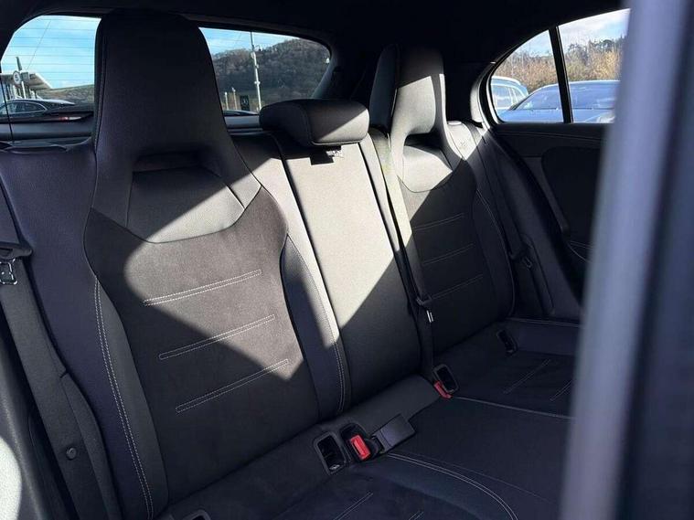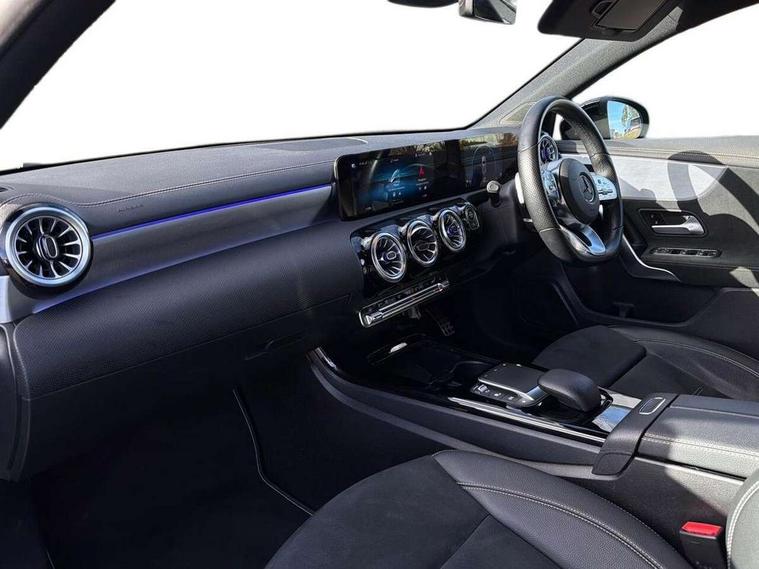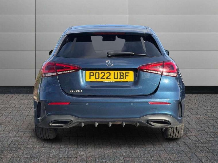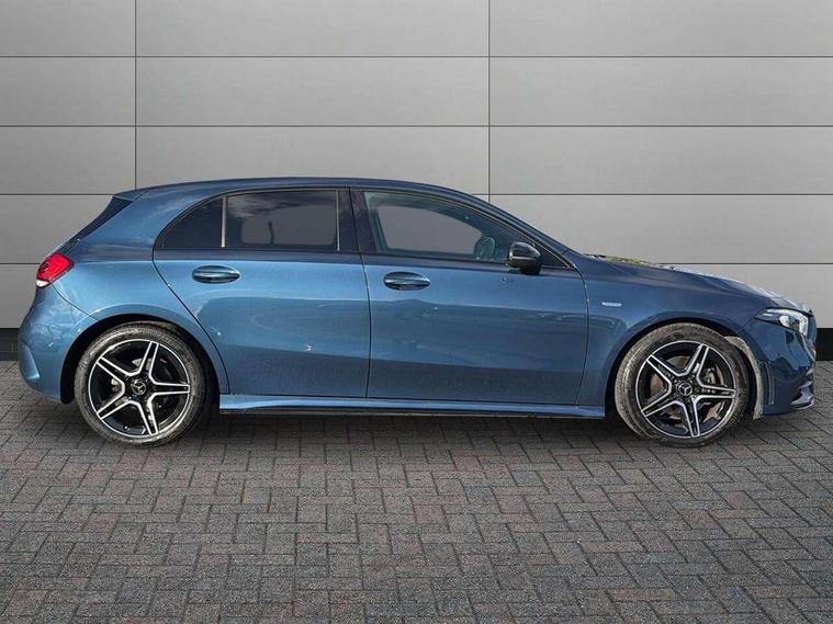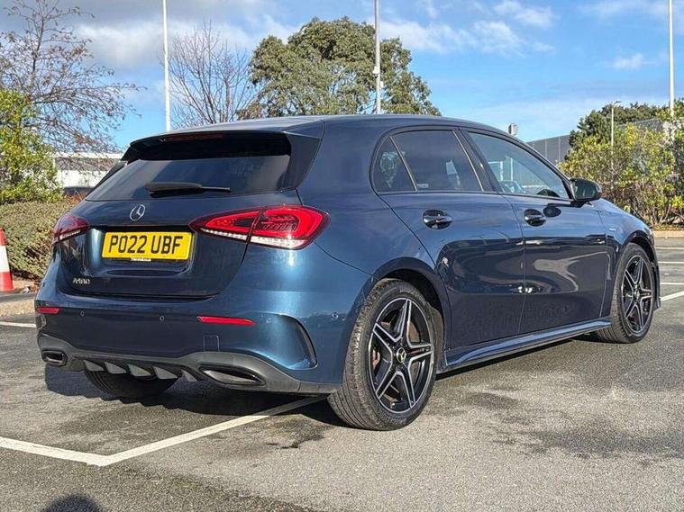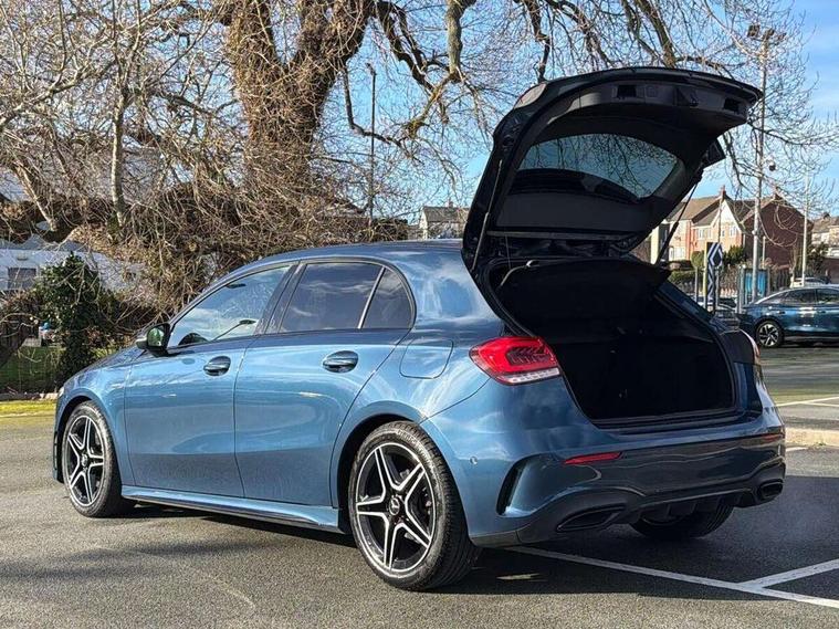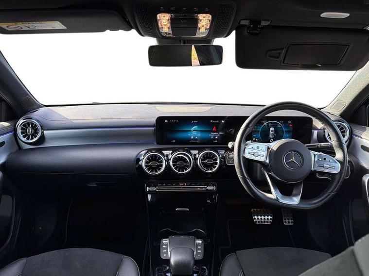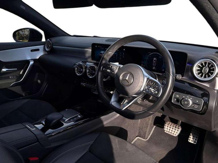 10.25" media display, 180 degree rear view camera with parking guidelines, 7" colour screen in instrument panel, Active parking assist with visual and audible warning of detected obstacles, Attention assist, Brake pad wear indicator warning light, Car wash mode, Cruise control + speed limiter, Direct steering, Dual bluetooth interfaces, DYNAMIC SELECT with a choice of driving modes (ECO, Comfort, Sport and Individual), ECO start/stop function, Fluid level warning indicator for fuel, oil, coolant and washer fluid, Hard-disk navigation, Hey Mercedes Voice activation, Lamp failure indicator, Lane keeping system, Mercedes me connect including emergency call system, accident recovery, breakdown management and maintenance, Mercedes me remote services, Outside temperature gauge, Owners manual in English, Pre-installation for car sharing, Preinstallation for Mercedes Benz link, Service indicator (ASSYST), Smartphone integration with Apple CarPlay and Android auto, Speed sensitive power steering, Trip computer, Ultrasonic sensors positioned in the front and rear bumpers, Lowered comfort suspension, Rear axle torsion beam, 2 USB ports (type C) in rear stowage compartment and one in front of center console, 6 speakers, DAB Digital radio, MBUX multimedia system with DAB digital radio and touchpad including satellite navigation, Mercedes-Benz sound system - 100W, 4 Electric Front and Rear windows, Adaptive brake lights, AMG bodystyling - Front apron with splitter in chrome, rear apron with chrome trim and chrome visible trim elements in tailpipe, Automatic headlights, Black weather strip, Body colour bumpers, Body colour door handles, Body colour side skirt, Body coloured door mirrors, Electric adjustable and heated door mirrors with integrated LED side indicators, Exclusive diamond radiator grille, Exhaust system - Twin visible tailpipes in polished stainless steel, Headlamp assist automatic headlamp activation, Heated glass rear windscreen + timer control, High gloss black beltline, LED High level third brake light, LED high performance headlamps with integrated LED daytime running lights, LED tail lamp, Privacy glass, Radio aerial, Rain sensing windscreen wipers with two sensitivity settings, Rear fog lights, Rear side wing doors, Rear wiper, Window line trim strip in high gloss black, 3 seat bench in 2nd row, 3 Spoke flat bottom leather multi function steering wheel with perforated leather in grip area, 40:20:40 split folding rear seats, Artico man-made leather/Microfibre Dinamica upholstery with contrast stitching in light grey, Auto Mercedes-Benz child seat recognition sensor, Black air vents with surround in silver chrome, Black roof lining, Brushed stainless steel sports pedals with rubber studs, Controller on centre console with chrome surround, Floor mats with black top stitching and embroidered edition logo and piping in light grey, Front centre armrest with storage compartment, Front door sills with Mercedes Benz lettering, Front seat backs luggage nets, Front seat cushion length adjustment, Galvanished gear shift paddles on steering wheel, Heated front seats, Height/reach adjustable steering column, Interior lighting - 64 colour Ambient lighting, Interior mirror with reading lamps in black and frameless, ISOFIX and top tether child seat fixing points in two outer rear seats, Manual height adjustable front seats, Rear head restraints, Seat occupancy sensor for front passenger seat, Single front passenger seat, Sports seats with integrated headrests, Stowage compartment in centre console with retractable cover, Sunvisors with illuminated vanity mirrors, Touchpad on center console, Twin front cupholders, Two zone thermotronic luxury automatic climate control, Light and sight pack - A Class, Mirror package - A Class, Night pack - A Class Saloon/Hatchback, Seat comfort pack - A Class, 3 rear 3 point seatbelts, ABS with Brake Assist, Active bonnet, Active brake assist includes forward collision warning system with autonomous braking, Adaptive brake assist with hold function and hill start assist, Black seatbelts, Childproof locks manually operated for rear doors and electrically operated for rear power windows, Crash responsive emergency lighting, Driver and passenger head and side airbags, Drivers knee airbag, Dual stage driver/passenger airbags, Electronic parking brake, ESP curve dynamic assist, ESP with ASR, Front and rear seatbelt reminder, Front brake callipers with Mercedes Benz lettering, Tyre pressure monitoring system, Warning triangle and first aid kit, Window airbags, Alarm system/interior protection/immobiliser, Keyless Go, Remote central locking and crash sensor with emergency opening function, Urban guard vehicle protection system with immobiliser and interior protection, Matrix look light longitudinal grain aluminium trim element, 18" AMG 5 twin spoke light alloy wheels aerodynamically optimised painted in black with highsheen finish, Summer tyres, Tirefit sealant kit,