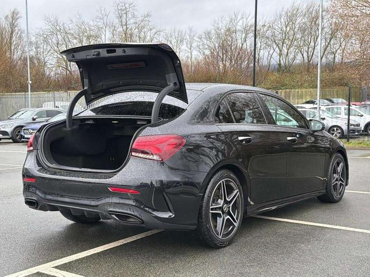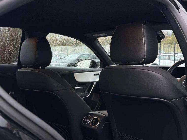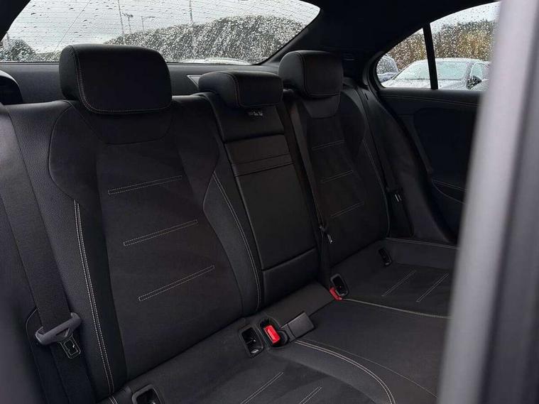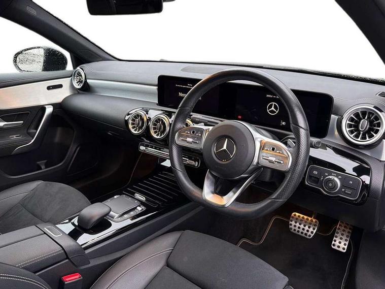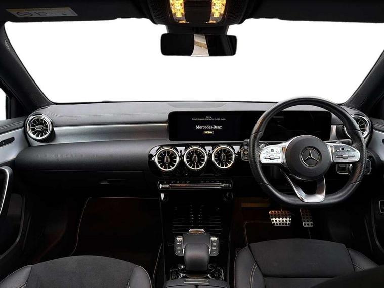 10.25" Digital instrument cluster display screen, 10.25" media display, 180 degree rear view camera with parking guidelines, Active parking assist with visual and audible warning of detected obstacles, Attention assist, Brake pad wear indicator warning light, Car wash mode, Cruise control + speed limiter, Direct steering, Dual bluetooth interfaces, DYNAMIC SELECT with a choice of driving modes (ECO, Comfort, Sport and Individual), ECO start/stop function, Fluid level warning indicator for fuel, oil, coolant and washer fluid, Hard-disk navigation, Hey Mercedes Voice activation, Lamp failure indicator, Lane keeping system, Mercedes me connect including emergency call system, accident recovery, breakdown and maintenance management, Mercedes me remote services, Outside temperature gauge, Owners manual in English, Pre-installation for private car sharing, Preinstallation for Mercedes Benz link, Service indicator (ASSYST), Smartphone integration with Apple CarPlay and Android auto, Speed sensitive power steering, Trip computer, Ultrasonic sensors positioned in the front and rear bumpers, Lowered comfort suspension, Rear axle torsion beam, 10 speakers, 2 USB ports (type C) in rear stowage compartment and one in front of center console, DAB Digital radio, MBUX multimedia system with DAB digital radio and touchpad including satellite navigation, Mercedes-Benz sound system - 100W, 4 Electric Front and Rear windows, Adaptive brake lights, AMG bodystyling - Front apron with splitter in chrome, rear apron with chrome trim and chrome visible trim elements in tailpipe, Automatic headlights, Black weather strip, Body colour bumpers, Body colour door handles, Body colour side skirt, Body coloured door mirrors, Electric adjustable and heated door mirrors with integrated LED side indicators, Exclusive diamond radiator grille, Exhaust system - Twin visible tailpipes in polished stainless steel, Headlamp assist automatic headlamp activation, Heated glass rear windscreen + timer control, High gloss black beltline, LED high performance headlamps with integrated LED daytime running lights, LED tail lamp, Privacy glass, Radio aerial, Rain sensing windscreen wipers with two sensitivity settings, Rear boot, Rear fog lights, Rear side wing doors, Third brake light featuring LED technology, Window line trim strip in high gloss black, 3 seat bench in 2nd row, 3 Spoke flat bottom leather multi function steering wheel with perforated leather in grip area, 40:20:40 split folding rear seats, Artico man-made leather/Microfibre Dinamica upholstery with contrast stitching in light grey, Auto Mercedes-Benz child seat recognition sensor, Black air vents with surround in silver chrome, Black roof lining, Brushed stainless steel sports pedals with rubber studs, Controller on centre console with chrome surround, Floor mats with black top stitching and embroidered edition logo and piping in light grey, Front centre armrest with storage compartment, Front seat backs luggage nets, Front seat cushion length adjustment, Front sports seats with adjustable head restraints, Galvanished gear shift paddles on steering wheel, Heated front seats, Height/reach adjustable steering column, Illuminated front door sills with changeable cover, Interior lighting - 64 colour Ambient lighting, Interior mirror with reading lamps in black and frameless, Manual height adjustable front seats, Rear armrest with 2 cupholders, Rear head restraints, Seat occupancy sensor for front passenger seat, Single front passenger seat, Stowage compartment in centre console with retractable cover, Sunvisors with illuminated vanity mirrors, Touchpad on center console, Twin front cupholders, Two zone thermotronic luxury automatic climate control, Light and sight pack - A Class, Mirror package - A Class, Night pack - A Class Saloon/Hatchback, Seat comfort pack - A Class, 3 rear 3 point seatbelts, ABS with Brake Assist, Active bonnet, Active brake assist includes forward collision warning system with autonomous braking, Adaptive brake assist with hold function and hill start assist, Black seatbelts, Childproof locks manually operated for rear doors and electrically operated for rear power windows, Crash responsive emergency lighting, Driver and passenger head and side airbags, Drivers knee airbag, Dual stage driver/passenger airbags, Electronic parking brake, ESP curve dynamic assist, ESP with ASR, Front and rear seatbelt reminder, Front brake callipers with Mercedes Benz lettering, ISOFIX and top tether child seat fixing points in two outer rear seats, Tyre pressure monitoring system, Warning triangle and first aid kit, Window airbags, Alarm system/interior protection/immobiliser, Keyless entry lock/unlock, Keyless Go, Remote central locking and crash sensor with emergency opening function, Urban guard vehicle protection system with immobiliser and interior protection, Matrix look light longitudinal grain aluminium trim element, 18" AMG 5 twin spoke light alloy wheels aerodynamically optimised painted in black with highsheen finish, Summer tyres, Tirefit sealant kit,