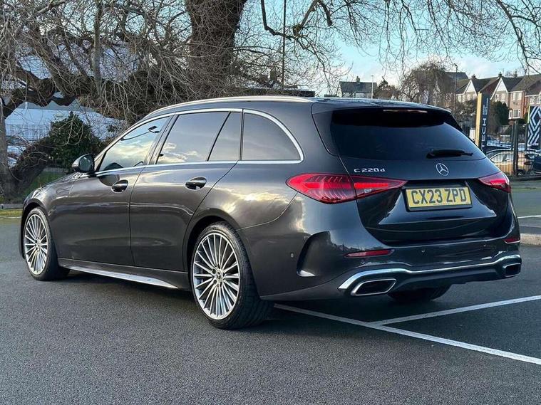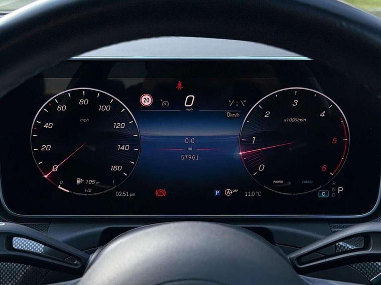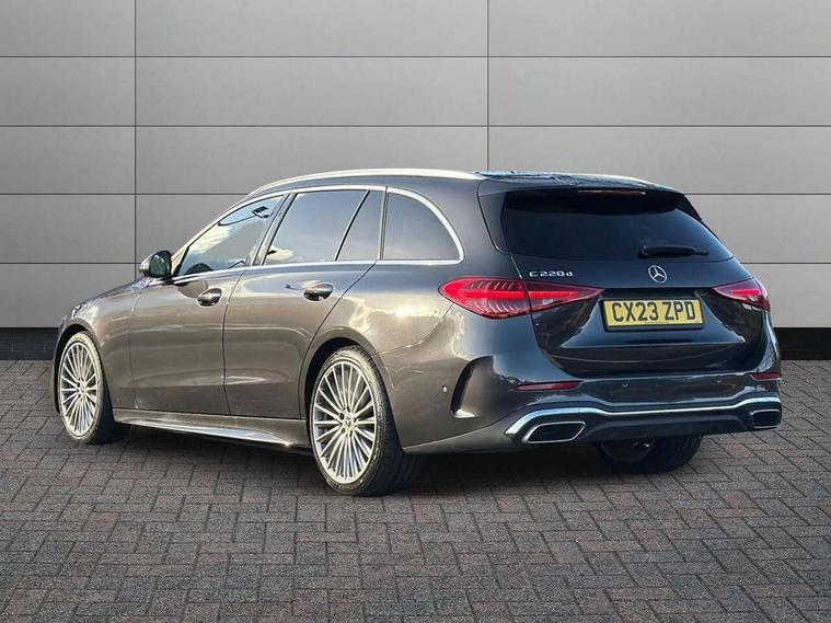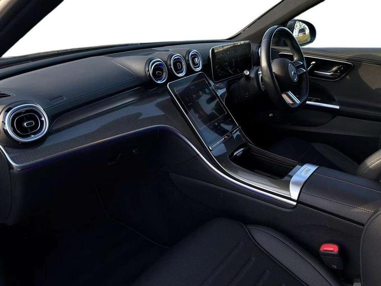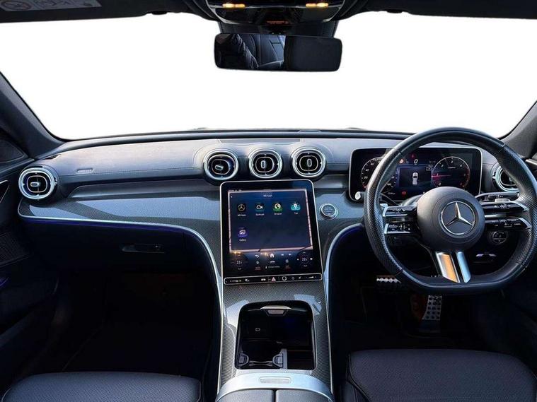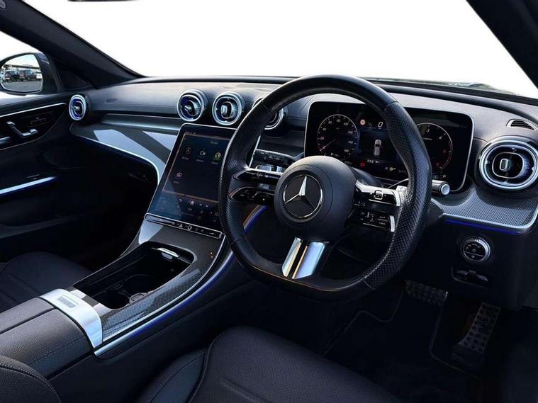 11.9" high resolution multimedia colour display, 12.3" digital instrument cluster display, Active blind spot assist, Active brake assist plus, Active lane keeping assist, AMG DYNAMIC SELECT with a choice of driving modes (Slippery, Comfort, Sport, Sport+, Individual), Attention assist, Cruise control with speedtronic variable speed limiter, E-call, Easy pack automatic powered tailgate, Extended MBUX functions, Finger print sensor, Fluorescent jacket for driver, MBUX augmented reality for navigation, MBUX navigation premium, MBUX voice control activated by keywords "Hey Mercedes", Mercedes connect me, Mercedes me remote services, Outside temperature gauge, Pre-installation for digital key transfer, Remote boot release, Service indicator (ASSYST), Smartphone integration, Speed limit assist, Sports direct steer speed sensitive steering, Status display for rear seat belts in instrument cluster, 66l fuel tank with increased capacity, 9G TRONIC 9 speed automatic transmission, Agility control sports suspension and lowered by 15 mm, Diesel particulate filter, DAB Digital radio, MBUX multimedia system, Adaptive brake lights, Adaptive high beam assist plus, AMG body styling front apron, rear apron and side skirts, AMG front bumper with sporty air intakes and chrome elements, AMG rear bumper with high gloss chrome elements, AMG side skirts in vehicle colour, B-pillar trim in glossy black, Body coloured bumpers, Body coloured door mirrors, Chrome beltline trim, Chrome roof rails, Daytime running lights, Digital light LED headlamps, Electric windows with one touch opening/closing and obstruction sensors, Electrically adjustable and heated door mirrors, Green tinted glass, LED Indicators, LED tail lights, LED third brake light, Powerdomes on bonnet, Privacy glass, Radiator diamond grille with integrated Mercedes Benz star and louvre silver with chrome pins, Radio aerial integrated into rear window, Rain sensor with automatic windscreen wiper activation, Rear side wing doors, Rear wiper, Two visible exhaust pipes integrated into rear bumper, 3 seat bench in 2nd row, 3 spoke flattened bottom AMG multifunction steering wheel in black nappa leather with chrome inserts and perforated leather in grip area, 40:20:40 split folding rear bench seat, AMG sports seats, Artico man-made leather upholstery, Audio and onboard settings control on multifunction steering wheel, Auto Mercedes-Benz child seat recognition sensor, Black air vents with silver chrome elements, Black floor mats with AMG lettering, Black roof liner, Door trim elements high gloss black with silver chrome surroundings and switches, Double cupholder in centre console, Electrically height/reach adjustable steering column, Folding rear seat backrest, Front and rear head restraints, Front centre armrest with storage compartment, Gearshift paddles on steering wheel, Heated front seats, Illuminated door sills with Mercedes Benz lettering, Illuminated glove compartment stowage, Interior lighting - 64 colour Ambient lighting, Load compartment cover, Overhead control unit in high gloss black, Rear top tether child seat ISOFIX attachment, Single front passenger seat, Sports pedals with stainless steel surfaces and rubber studs, Sunvisors with illuminated vanity mirrors, THERMATIC 2 zone automatic climate control, Interior lighting package - C Class, Memory package - C Class, Mirror pack - C Class, Parking package with 360 degree camera - C Class, Seat comfort pack - C Class, Stowage space pack - C Class, USB package - C Class, 3 rear 3 point seatbelts, Active bonnet pedestrian safety measure which detects an impact and raises bonnet, Adaptive brake system with HOLD function and brake drying in the wet, Anti-lock braking system (ABS), Black seat belts, Brake calipers with Mercedes-Benz lettering + perforated front brake discs, Child proof door locks, Drivers knee airbag, Drivers pelvis airbag, Dual stage driver/passenger airbags, Electric parking brake, Electronic Stability Programme (ESP), Front centre airbag between driver and front passenger seats, Front side airbags, Larger brake discs on front axle, Rear seatbelt warning indicator, Sports braking system with perforated front disc brakes, Tyre pressure monitoring system, Warning triangle and first aid kit, Window airbags for driver, front passenger and rear passenger, Central locking with interior switch, automatic locking and crash sensor with emergency opening function, Chrome surround in electric key, Keyless Go, URBAN GUARD vehicle protection (Thatcham Category 1) consisting of break-in, anti-theft alarm system (ATA), interior monitoring and tow-away protection, Artico man-made leather dashboard with contrast stitching, Centre console trim in metal weave, 19" AMG multi spoke light alloy wheels painted himalayas grey with high sheen finish, Summer tyres, TIREFIT with tyre inflation compressor,