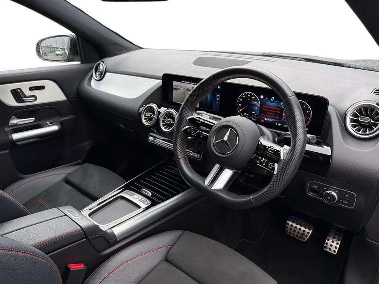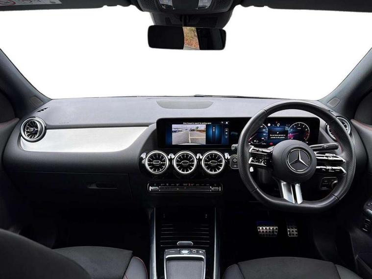 10.25 inch touchscreen central media display, 10.25" Digital instrument cluster display screen, Attention assist, Blind spot assist, Direct steering, DYNAMIC SELECT with a choice of driving modes (ECO, Comfort, Sport and Individual), Easy-pack tailgate, ECO start/stop function, Fingerprint scanner, Fluid level warning indicator for fuel, oil, coolant and washer fluid, Hard-disk navigation, Hey Mercedes Voice activation, Lamp failure indicator, Lane keeping assist (LKA), Mercedes me connect including emergency call system, accident recovery, breakdown and maintenance management, Mercedes me remote services, Multi function trip computer, Outside temperature gauge, Owners manual and service booklet in English, Pre-installation of private car share, Radio aerial integrated into front and rear windshields, Service indicator (ASSYST), Smartphone integration with Apple CarPlay and Android auto, Speed limit assist, Wireless charging, Lowered comfort suspension, Rear axle multi-link, Bluetooth connectivity including audio streaming, DAB Digital radio, MBUX multimedia system, Mercedes-Benz (225w) sound system with 10 speakers, Adaptive brake lights, Adaptive highbeam assist, Aluminium roof rails, AMG front apron with front splitter in the colour of the vehicle with chrome trim element, AMG rear apron with visible tailpipe trim and chrome trim element, AMG specific/dual flow exhaust pipes in chrome (non-functional), Automatic headlamp activation, Beltline trim and window line trim strip in high gloss aluminium, Black grained side sill trim with chrome inlay, Body coloured door handles with chrome insert for keyless entry, Car wash function, Dark privacy glass from B-pillar backwards, Electric front windows, Electric rear windows, Electrically adjustable and heated door mirrors with integrated LED indicators, Exhaust system with 2 Visible tailpipe trim elements and rear apron with trim in chrome, Heat insulating dark tinted glass, Heated glass rear windscreen + timer control, Illuminated door sill panels with Mercedes-Benz lettering, Interior mirror with black reading lamps and frameless, LED high performance headlamps with integrated LED daytime running lights, LED tail lights, LED third brake light, Radiator diamond grille with chrome pins and central Mercedes star, single louvre in matt grey with chrome inserts and black highlights, Rain sensor windscreen wipers, Rear fog lights, Rear side wing doors, Rear wiper, Wheel arch liners in the colour of the vehicle, 3 seat bench in 2nd row, 3 spoke flat bottom multifunction nappa leather steering wheel, 40:20:40 split folding rear seat backrests, Adjustable head restraints, Air conditioning - air vents with silver chrome surround, Air conditioning - Two zone thermotronic luxury automatic climate control with display, AMG floor mats, Auto Mercedes-Benz child seat recognition sensor, Black roof lining, Courtesy light in boot, Electrically adjustable front memory seats with four way lumbar support, Fluorescent jacket, Front centre armrest with stowage, Galvanished gear shift paddles on steering wheel in silver chrome, Heated front seats, Illuminated glovebox, Interior lighting - 64 colour Ambient lighting, Luggage net on driver/front passenger seat backrest, Manually height and reach adjustable steering column, Single front passenger seat, Sports pedals in brushed stainless steel with black rubber studs, Sports seats, Sports steering wheel, Stowage compartment in centre console, Stowage compartment with retractable cover, Sunvisors with illuminated vanity mirrors, Twin front cup holders, Two outer rear seat isofix and top tether child seat fixing points, Comfort seat pack - GLA Class, Interior lighting with light and sight pack - GLA, Keyless go comfort package - GLA, Mirror pack - GLA Class, Parking package with reversing camera - GLA, USB package plus - GLA, 3 rear 3 point seatbelts, ABS with Brake Assist, Active bonnet pedestrain safety measure which detects an impact and raises bonnet by 65mm, Active brake assist includes forward collision warning system with autonomous braking, Adaptive brake assist with hold function and hill start assist, Black seatbelts, Bonnet with power domes, Brake pad wear warning indicator, Childproof locks manually operated for rear doors and electrically operated for rear power windows, Crash responsive emergency lighting, Driver and passenger head and side airbags, Drivers knee airbag, Dual stage driver/passenger airbags, Electronic parking brake, ESP curve dynamic assist, ESP with ASR, Front and rear seatbelt reminder, Front brake callipers with Mercedes Benz logo lettering on front, Front brake discs internally ventilated and perforated, Front passenger seat occupancy sensor, Sports braking system, Tyre pressure monitoring system, Warning triangle and first aid kit, Window airbags, Alarm system with immobiliser and interior protection -Thatcham category 1, Guard 360 degree vehicle protection, Keyless Go starting function, Remote central locking and crash sensor with emergency opening function, Light longitudinal grain aluminium trim, 20" AMG multi spoke light alloy wheels aerodynamically optimised and painted in black with a high-sheen finish RVU, Summer tyres, Tirefit tyre sealant kit,