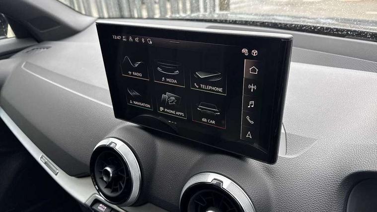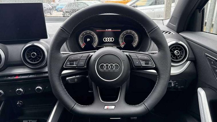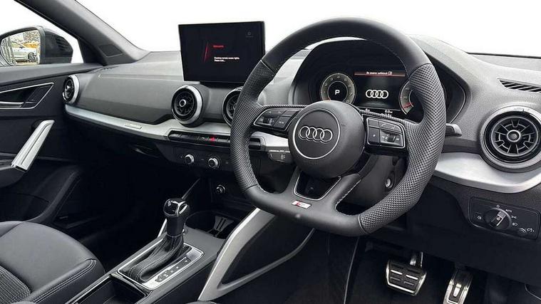 3D map display, Audi connect navigation and infotainment includes innovative services, Audi connect remote and control connects your vehicle to your smartphone, Audi drive select: S tronic - power steering assistance + engine + gearshift (modes: comfort, auto, dynamic, efficiency, individual), Audi smartphone interface - Apple carplay/Android Auto, USB connect, 2xSDXC card readers, voice control for navi, telephone, music and 3rd party apps, Audi virtual cockpit, Automatic start/stop system with recuperation, Bluetooth interface includes bluetooth audio streaming, Camera based traffic sign recognition, Cruise control, Distraction and Fatigue warning, E-call, Jukebox hard drive memory for music (10GB), Lane departure warning, MMI navigation plus with 8.8" touchscreen, Natural voice recognition, Power operated tailgate, Progressive steering, Rear parking sensors, Sport suspension, 6 passive loudspeakers, DAB Digital radio, USB type C port, Audi beam, Auto dimming rear view mirror, Black window trims, Bumper in full body colour paint finish, Electrically adjustable, folding, auto dimming and heated door mirrors with integrated LED side indicators, Front windscreen with grey tinted sunband, LED daytime running lights, LED headlights with dipped beam, high beam, position lights, indicators, LED rear lights, LED third brake light, Privacy glass - dark tinted rear and rear side windows from B-pillar backwards, Rear side wing doors, Rear wiper, Variable front intermittent wipers, Wheel arch trims in manhattan grey, 12V socket in front, 3 seat bench in 2nd row, 3 spoke flat bottomed multi-function leather sport steering wheel with gear shift paddles with S logo, 4-way electric lumbar support for front seats including manual seat height adjustment for both front seats, 60/40 split folding rear seat bench, Black carpets, Black cloth headlining, Front and rear head restraints, Front centre armrest, Front sport seats, Front/rear floor mats, Height/reach adjust steering wheel, Illuminated door sill trims with S logo, ISOFIX child seat mounting in front passenger and rear outer seats, Manual air conditioning, Single front passenger seat, Stainless steel pedals, Black styling pack - Q2, 3x3 point rear seatbelts, 6 airbags - Front, curtain and front side airbags, Electromechanical parking brake, Electronic stabilisation control including ABS, ASR and EDL, Front passenger airbag deactivation, Hill hold assist, Pre-sense front with pedestrian recognition, Seatbelt monitoring, Tyre pressure warning light with visual and acoustic warning, Warning triangle and first aid kit, Anti theft wheel bolts, Electronically operated child locks, Remote central door locking, Thatcham category 1 alarm, Aluminium interior element, Black dashboard, Gloss black centre console, Matt brushed aluminium trim inlays, Tool kit,
