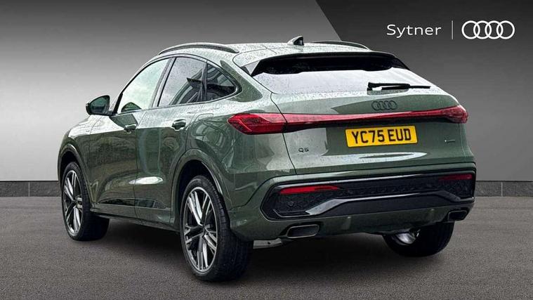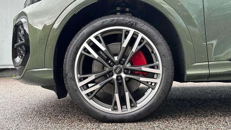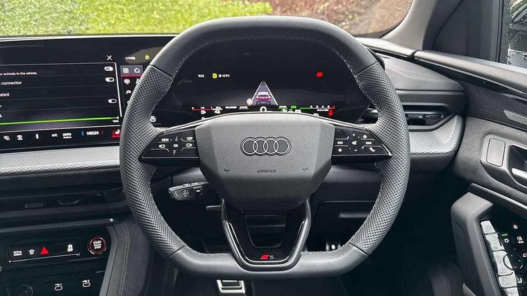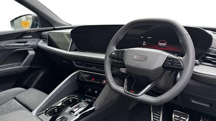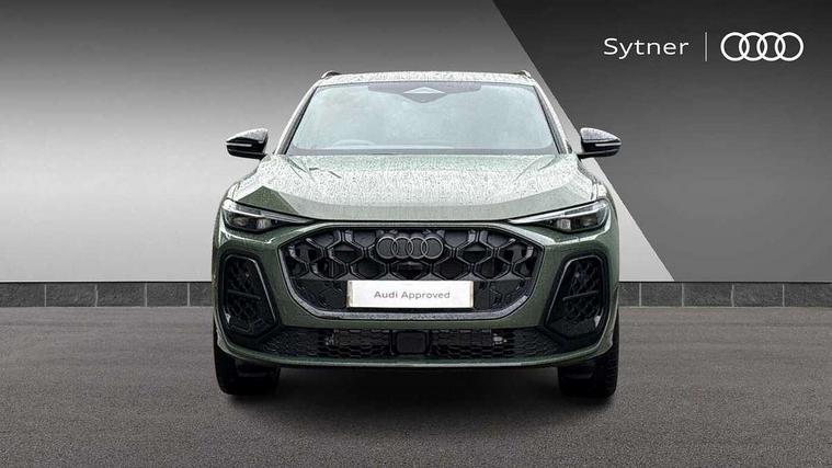 Adaptive cruise assist plus, Attention and drowsiness detection with driver observation, Audi application store, Audi connect emergency call and service, Audi digital key, Audi drive select, Audi smartphone interface, Audi virtual cockpit plus with 11.9" OLED colour display, Camera based traffic sign recognition, Front cross traffic intersection assist, Lane change assistant with exit warning system, rear cross traffic alert and rear turn assist, Lane departure warning with emergency assist, MMI 10.9" front passenger touch display, MMI navigation plus with high resolution 14.5" OLED touchscreen colour display, Park assist plus, PAS, Reversing camera, Swerve assist and front turn assist, Traffic sign based speed limiter, Compact e-tron charging system, Household plug type G for the e-tron charging system, Hybrid propulsion system, Industrial connector CEE 32A, 230V, long and straight for the e-tron charging system, Mode 3, Type 2 AC charging cable 22kW - capable of charging speeds up to 11kW for use at AC charging points including a home wallbox, Audi sound system impressive sound with 8 loudspeakers including centre speaker and subwoofer, 6-channel amplifier with a total output of 180 watts, DAB Digital radio, Smartphone compartment with wireless charging, Active digital light signatures - Six additional combinations of active daytime running light signature, All weather light, Auto dimming rear view mirror, Automatic dynamic headlight range control, Dynamic light scenarios of the coming home/leaving home function when stationary, Electrically adjustable heated and folding + automatically dimming exterior mirrors, Exhaust tailpipes in dark chrome, Front and rear electric windows, Front door sill trims with aluminium inlays, illuminated with 'S' logo, Full body paint finish, Grill frame, inlay and front air inlets in matt anthracite chrome, Headlight cleaning system, Heated rear window, High beam assist, High gloss window surrounds, LED daytime running light with 8 digital light signature, LED rear lights pro incl. dynamic rear indicators and illuminated light strip with animated coming and leaving home function, Logo projection light in exterior mirrors, Manoeuvring light, Matrix LED headlights, Memory function for door mirrors, Motorway light, Privacy glass, Projection third brake light for rear window in LED, Radiator grille in phantom black, Rear and side windows with heat insulating glass, Rear honeycombe grille in matt black with inlay in matt anthracite chrome, Rear side wing doors, Rear wash/wipe, S Line badge on the front wings, Static cornering light, Turning light, Windscreen with acoustic glazing, 3 rear head restraints, 3 seat bench in 2nd row, 3 spoke leather steering wheel with multi-function buttons with touch control, flattened on top and bottom, with S badging and contrast stitching, 4 way electric lumbar support for driver and front passenger, Auxiliary air conditioning, Black carpets, Comfort centre armrest front, Deluxe 3 zone electronic climate control, Dinamica microfiber/leather upholstery with diamond stitching, Electrically adjustable front seats with memory function for driver's side, Front and rear floor mats, Front sport seats with integrated head restraints, Headlining in black cloth, Heated front seats, i-Size child seat mounting on the front passenger side and outer rear seats, i-Size and top tether on the outer rear seats, Increased charging capacity for USB ports 2X100 Watts in rear, 2X60 Watts in front, Interior trim in aluminium look, Luggage compartment lid, electrically opening and closing, Manual steering column adjustment, S embossed logo on front sport seats, Single front passenger seat, Softwrap in black, Softwrap in Dinamica, Stainless steel pedals and footrest, Steering wheel grips in perforated leather and shift paddles, Ambient lighting package plus - Q5, Black styling package plus - Q5, Rear seat bench plus pack - Q5, Storage and luggage compartment pack with luggage net - Q5, 3x3 point rear seatbelts, ABS, Acoustic vehicle alerting system, Convenience key with safelock, Driver and front passenger airbag with passenger airbag deactivation, Electric child safety locks, First aid kit with warning triangle and high visibility vests, Front emergency brake assist, Hill hold assist, Proactive passenger protection system for front, sides and rear, Rear seat occupant reminder, Red brake calipers, Side airbags in front and rear with head airbag system and front interaction airbag, Tyre pressure loss indicator, Anti-theft wheel bolts, Thatcham approved category 1 anti theft alarm, Black dashboard with contrast stitching, Upper and lower interior elements in dinamica microfiber, Tyre repair kit,