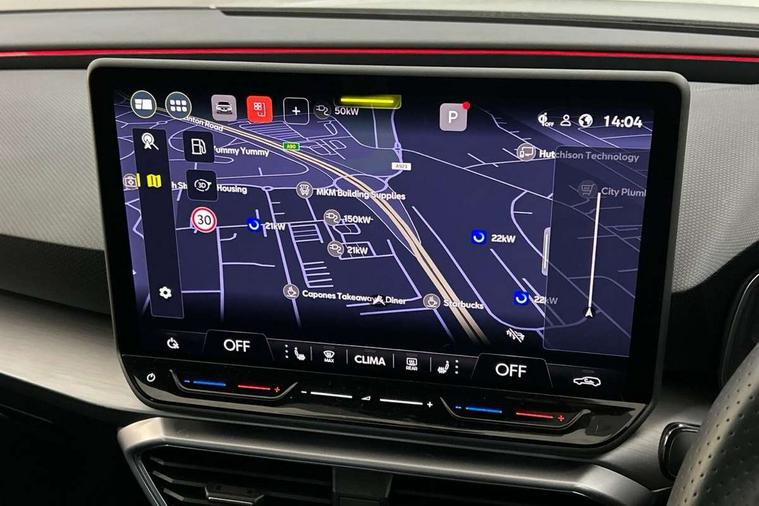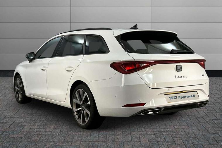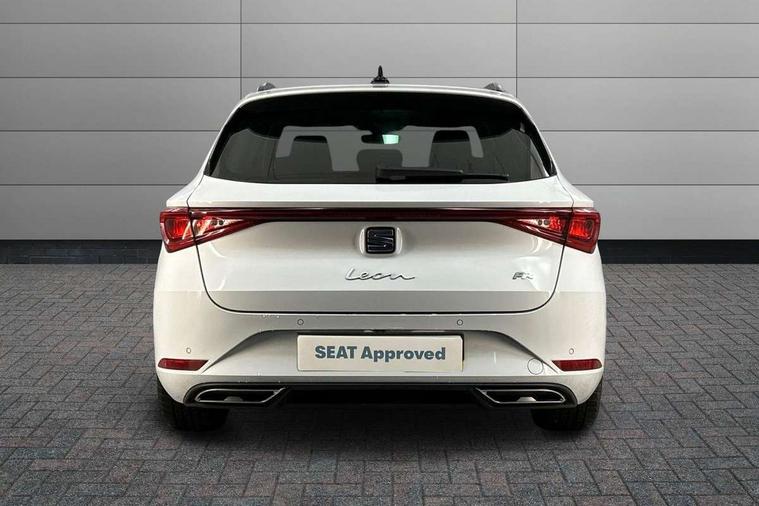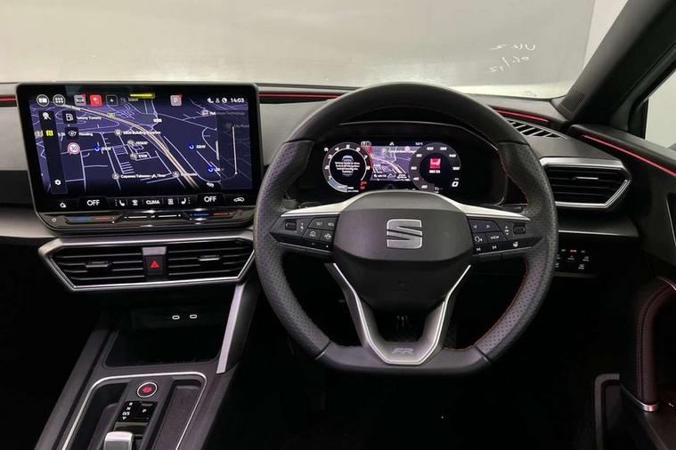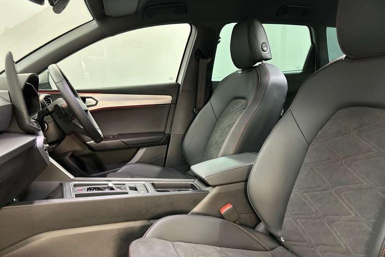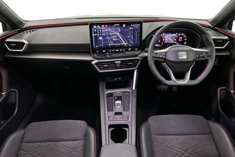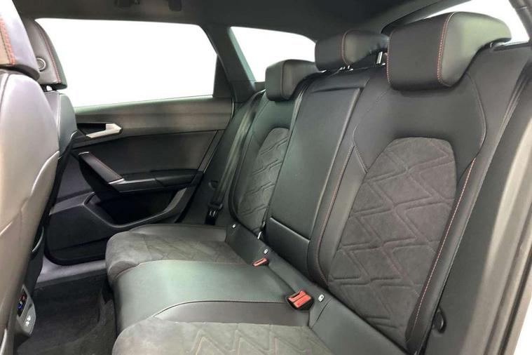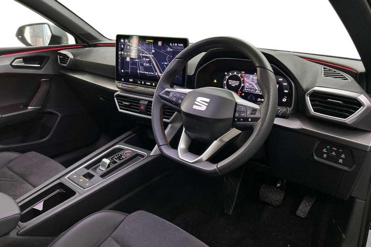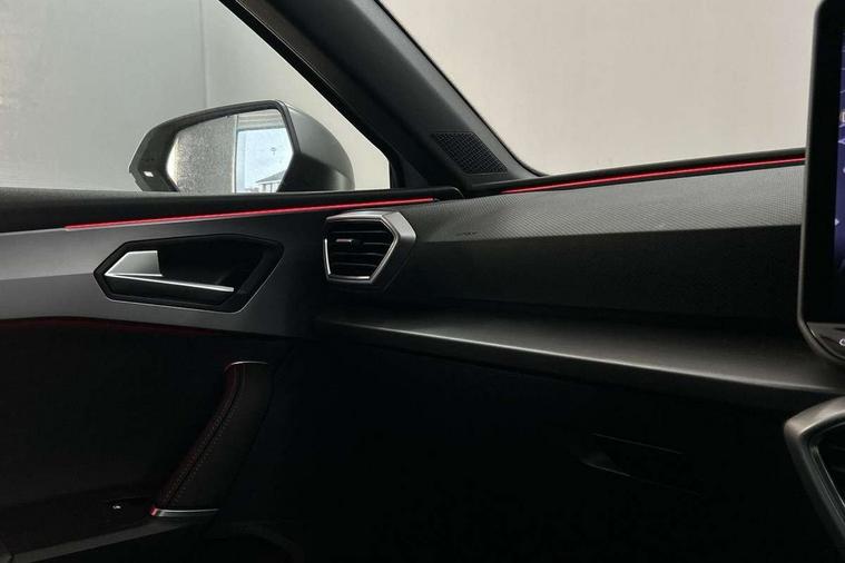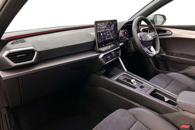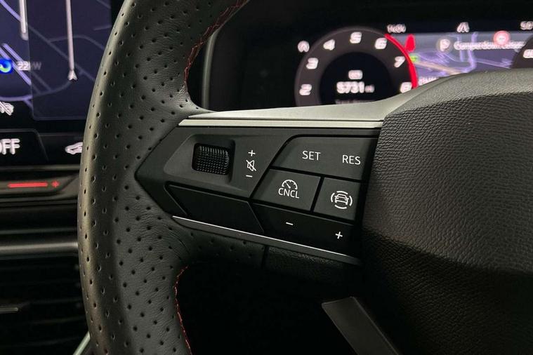 Digital cockpit, E-call, Front assist with forward collision warning braking reaction to vehicles, pedestrians and cyclists, Full link smartphone integration with Mirror Link, wireless Apple CarPlay and wired Google Android Auto, Lane assist, Lockable tailgate, Park assist (inc front/rear parking sensors), Power assisted speed sensitive electro-mechanical steering, Rear view camera, RPM, trip computer, outside temp gauge, instrument light brightness, low fuel warning light, lights on reminder, gearshift indicator, SEAT drive profile with 4 modes (Eco/Normal/Sport/Individual), throttle response and gearshift mode, Service interval indicator, Start/stop system with regenerative braking, Sports suspension, XDS electronic differential lock and dynamic traction support, 7 speakers, Auxiliary input socket, Auto dimming rear view mirror, Body colour door handles, Body coloured bumpers, Dark tinted rear windows, Door mirror LED indicator lights, Dynamic headlight range control, Electric adjustable/heated/folding door mirrors with memory, Electric front/rear windows, FR sports bumper, Illuminated front door sill, LED front fog lamps, LED Headlights with dynamic turn signals, LED tail lights and rear fog lights with rear coast to coast lighting, Matt black roof rails, Rear side wing doors, Rear wash/wipe, Separate daytime running light with automatic headlight control and coming home feature, Third brake light, Welcome light silhouette from exterior mirrors, Windshield wiper intermittent control with light/rain sensor, 12v power point in centre console, 3 seat bench in 2nd row, 60/40 split rear bench seat with armrest, Ambient lighting with glovebox, footwell and single monocolour, Black headlining, Dust/pollen filter, Four x USB Type C ports, Front and rear height adjustable headrests, Front and rear reading lights X 4, Front centre armrest, Front seatback storage pockets, Heated front seats, Height/reach adjust steering wheel, Interior wraparound lighting (FR), ISOFIX points in outer rear seats with top tether anchorage points, Luggage tie-down hooks, Lumbar adjustment for front seats, Manual driver seat with memory and height adjustable passenger seat, Microsuede cloth upholstery, Single front passenger seat, Sliding boot cover, Sunvisors with covered illuminated mirror, Three zone climate control, Media system plus with navigation - Leon, 3 point seatbelts on all rear seats, ABS, Brake control system - ESC and brake booster, Child proof door locks, Driver and front passenger airbags with front passenger airbag de-activation, front side and curtain airbags, Electronic parking brake, Extended safety system - seat belt tensioner, window closure and hazard lights, Hill hold control, Rear disc brakes, Seat belt reminder for front and rear seats, Tiredness recognition system, driver alert system, Tyre pressure monitoring system, Anti theft alarm system with interior monitoring in cab, backup horn and towing protection, KESSY Go (Keyless start), Locking wheel bolts, Wireless phone charging, Chrome interior detailing, 18" Performance machined alloy wheels with 92Y tyres, Tool kit,