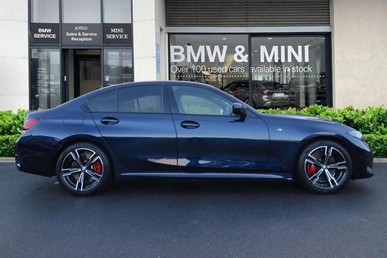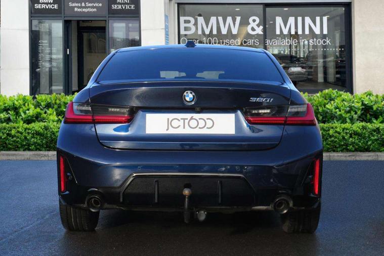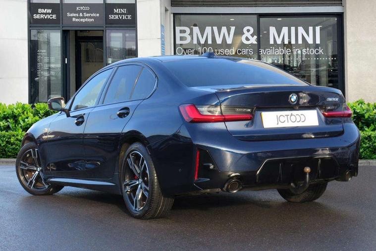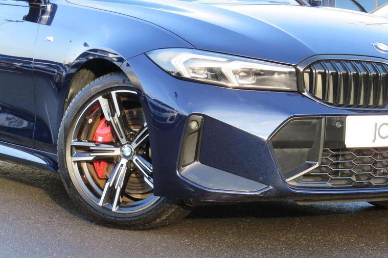 Active guard plus, Attentiveness assist, Automatic Start/stop button, Bluetooth Wi-Fi interface, BMW iDrive, BMW Teleservices, ConnectedDrive Services - last state call, Live cockpit plus with Navigation + 12.3" instrument display + 14.9" display, Intelligent voice assist, 2 USB, 4G LTE connect, Oil sensor for level and grade, Personal e-SIM, Shifting point display, Variable sport steering, Double joint spring strut front axle, Electronic differential lock control (EDLC), Fuel tank breather system, Steptronic Sport automatic transmission with steering wheel mounted gearshift paddles launch control and xtreme drive lever control, DAB tuner, 3rd brake light, Auto dimming rear view mirror, Automatic headlight beam throw control with load dependent regulating reaction, dynamic compensation of braking dive and acceleration squat, Bi-LED Low and high beam headlights, BMW emblem, engine compartment lid and tailgate, Body colour roof fin, Door sill strips, Electric windows - front and rear, with open/close fingertip control, anti-trap facility and comfort closing, Fading support, Follow me home headlight function, Front and rear bumper system with replaceable deformation elements, Front apron plastic in body colour, Fuel filler flap - right rear in body colour, Heat protection glazing on front windows and windscreen, Heated washer jets, High gloss chrome kidney frame with high gloss black kidney struts, LED daytime running lights, LED rear lights, LED turn indicator, Licence plate panel integrated into front bumper and tailgate, M high gloss shadow line exterior trim, Matt black B-pillar finsher, Matt black window recess cover, One piece front bumper cover including towing eye cover in body colour, Rain sensor with automatic headlight activation, Rear boot, Rear side wing doors, Reversing lights, Side frame decorative moulding black matt, Trailer stabilisation logic, Visible exhaust tailpipe finisher, Welcome lights in interior and door handle area, 12V power socket in front storage compartment, 2 front cupholder in centre console with clamping elements and matt black inlay, 3 seat bench in 2nd row, 3 spoke M Sport multifunction flat bottom leather steering wheel, 3 zone automatic air conditioning, 40:20:40 split folding rear seat with loading system, Anthracite headlining, Armrest integrated in front and rear door trim + front centre console armrest, BMW ID, Cruise control operation in steering wheel, Driving experience mode switch, Folding rear centre armrest with 2 cupholders, Front and rear headrests, Front and rear velour floor mats, Front reading light, Heated front seats, Height adjustable mechanically and infinitely variable steering column, Illuminated armrest storage compartment, Illuminated glove compartment, Illuminated luggage compartment, Lashing eyelets in luggage compartment, Single front passenger seat, Sunvisors with illuminated vanity mirrors and ticket pocket, Toolkit located in luggage compartment, Connected pack professional - 3 Series Saloon/Touring, Interior and exterior mirror pack - 3 Series Touring/Saloon, M sport exterior styling pack - 3 Series Saloon/Touring, Parking assistant pack - 3 Series, 3x3 point rear seatbelts, BMW emergency call, Child locks on rear doors, Crash sensor activating of airbags, Unlocking doors, hazard warning lights, interior light, safety battery terminal, Drive-off assistant, Driver and front passenger with seat occupancy detection for driver's and passenger side, Driver and passenger side airbags, body protection at side and airbags deploy from seat backrests, Dry braking, Dynamic brake control, Dynamic stability control + (DSC+) - Anti-lock Braking System (ABS) with brake assist and cornering brake control + Automatic Stability Control (ASC), Dynamic Traction Control - DTC, Electric parking brake including automatic hold function and automatic release of the parking brake when driving off, Front airbag deactivation, Front airbags for driver and front passenger, Head airbags in 1st and 2nd row, head protection at side, curtain airbags open from headliner above 1st and 2nd row, Plastic fuel tank, Side impact protection, Tyre pressure sensors, Ventilated front and rear disc brakes, Warning triangle and first aid kit, Alarm system, Centre lock switch, Closing system with central locking, Electronic vehicle immobiliser, Locking wheel bolts,