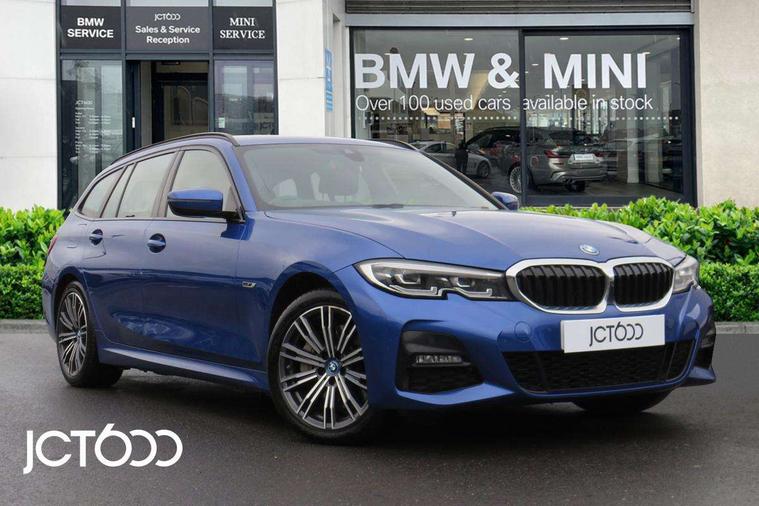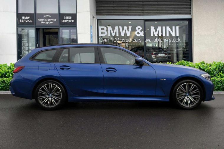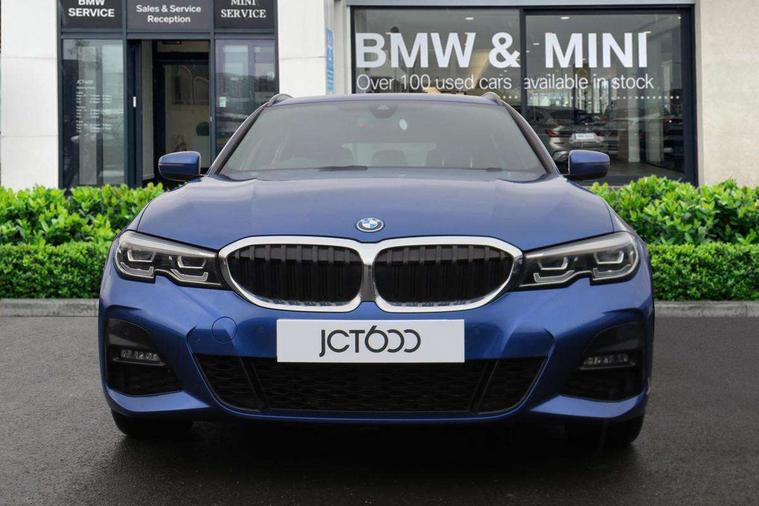 Active guard plus, Attentiveness assist, Auto start-stop, Bluetooth hands free facility with USB audio interface with audio streaming, BMW ConnectedDrive oline services with BMW apps, BMW iDrive controller on centre console, BMW Live Cockpit Professional Nav with 12.3" instrument display + 10.25" display, Intelligent Voice Assist, BMW OS 7, HDD, 2USB, 4G LTE connect, BMW service history, BMW Teleservices, Brake pad wear indicator in front and rear, Check Control warning system for monitoring of lights and door/luggage compartment open warning, Condition based service, Cruise control with brake function + speed limiter, Electric power steering with Servotronic steering optimised at all speed ranges, Gearshift time display in manual mode, Instrument cluster with speedometer with mph readout, tachometer, fuel gauge and oil temperature gauge, Integrated owners handbook, Oil sensor for level and grade, warning by check control system, On board computer - average speed+fuel consumption, service interval, clock/date, odometer/trip meter, outside temperature display and ice warning, Optimum shift indicator, Personal Profile - automatic lock when driving away selectable, Balanced 50/50 weight distribution, Battery cut-out switch, Charging cable - Mode 2, Drive performance control - ECO PRO, comfort and sport modes, EU6 emissions management, Stroke dependent dampers, DAB tuner, Electronic service booklet, Acoustic glazing, Active airstream chrome frame kidney grille with 8 high gloss black vertical slats, Automatic headlight activation/adjustment, Automatic headlight beam throw control with load dependent regulating reaction, dynamic compensation of braking dive and acceleration squat, Black roof mouldings, Body colour door handles, Body colour fuel filler flap, Body colour mirror caps with bottom segment in matt black, Dynamic brake lights, Electric windows - front and rear, with open/close fingertip control, anti-trap facility and comfort closing, Exhaust tailpipe - split left and right, Exterior mirrors - electrically folding with anti-dazzle, Fading support, Front and rear bumper system with replaceable deformation elements, Front black door sill finishers with BMW designation, Green tinted heat protection glazing, High gloss black exterior B pillar, Interior rear view electrochromatic mirror with automatic anti dazzle function, LED daytime running lights, LED front fog lights, LED third brake light, Lightweight engineering, M designation on front side panels, left and right, Model designation on right side of tailgate, Rain sensor, Rear side wing doors, Rear wiper, Shark fin antenna, Two part LED tailights in L-shape with components in smoked glass, brake light, LED turn indicator and rear fog light, Visible VIN plate, Welcome lights in interior and door handle area, Windscreen wipers with integrated washing jets, 12V power socket in front storage compartment, 2 front cupholder in centre console with clamping elements and matt black inlay, 3 seat bench in 2nd row, 3 zone automatic air conditioning, 4 pieces lashing eyelets in luggage compartment, 40:20:40 split folding rear seat with loading system, Ambient lighting with welcome carpet light, Anthracite headlining, Armrest integrated in front and rear door trim + front centre console armrest, Backrest width adjustment, Centred top Luggage compartment lights, Four grab handles integrated in roof lining, Front and rear door exit lighting (left / right), Front and rear door pockets, Front and rear reading lights, Front and rear velour floor mats, Front head restraints, Front sport seats, Heated front seats, Height adjustable mechanically and infinitely variable steering column, Illuminated armrest storage compartment, Illuminated glove compartment with separate small compartment, Interior lighting - front centre over interior mirror with soft light, rear centre and front and rear footwell lighting, Make-up mirror lights, Rear centre armrest with 2 cupholders, Rear centre console with storage compartment and ventilation grille, Single front passenger seat, Sunvisors with vanity mirrors and ticket pocket, Three spoke multifunction M sport leather steering wheel, Toolkit located in luggage compartment, Connected pack professional - 3 Series Saloon/Touring, M sport exterior styling pack - 3 Series Saloon/Touring, 2 tone horn, 3 rear seats with non folding headrests, Airbags activation controlled with intensity and scope, BMW emergency call, Brake energy regeneration, Braking pre-tensioning, Child proof locking system in rear door, Child seat ISOFIX attachment rear outer seats, Coasting in idle in ECO PRO mode, Crash sensor activating of airbags, Unlocking doors, hazard warning lights, interior light, safety battery terminal, Deactivation of fuel pump in the event of a crash, Driver and front passenger side airbags, integrated in the door side seat backrest bolsters for all seat variants, Driver/Front Passenger airbags, Dry braking, Dynamic brake control, Dynamic stability control + (DSC+) - Anti-lock Braking System (ABS) with brake assist and cornering brake control + Automatic Stability Control (ASC), Dynamic Traction Control - DTC, Electric parking brake including automatic hold function and automatic release of the parking brake when driving off, Electronic differential lock control (EDLC), Front passenger manual airbag deactivation, Head airbags for all 4 outer seats, Hill start assist, Seat belt security check for driver and front passenger, Side impact protection, Three 3 point seat belts on all seats including front belt stopper, pyrotechnic belt tensioners and belt force limiters, Tyre pressure monitoring with three level warning strategy, Ventilated front and rear disc brakes, Warning triangle and first aid kit, Alarm system (Thatcham 1) with remote control and electronic engine immobiliser, Central locking switch for all doors, fuel filler cap and luggage compartment, Remote control with integrated key one button open/close vehicle and win