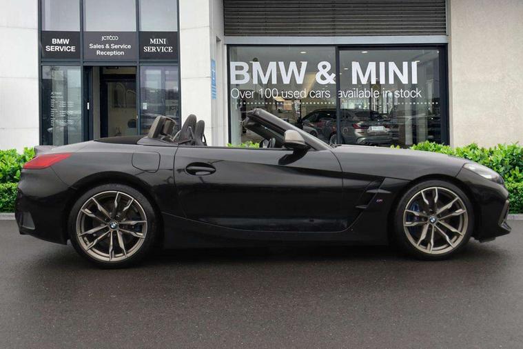 Active Guard, Auto start-stop, Bluetooth hands free telephone connection with USB audio interface + audio streaming, BMW ConnectedDrive online services, BMW Live Cockpit Professional with 10.25" high resolution instrument and control display, BMW Teleservices, Electric power steering, Fuel gauge, Instrument cluster, Oil sensor for level and grade, warning by check control system, Oil temperature gauge, Optimum shift indicator, Pull away assistant, Run flat indicator, Speedometer with mph readout, Tachometer, Variable sport steering, Adaptive M suspension, Double joint spring, Double VANOS, Drive performance control with ECO PRO comfort + sport mode, Eight speed steptronic sport transmission, with gearshift paddles, Fuel tank breather system, High precision injection, M Sport differential, HiFi loudspeaker system, USB connection, Automatic headlight beam throw control with load dependent regulating reaction, dynamic compensation of braking dive and acceleration squat, Cerium grey exterior mirror housing, Door sill finishers with M designation, Door sill strips, Dynamic braking lights comprising activated hazard warning flashers and third brake lights, Electric heated rear window, Exhaust tailpipe - split left and right, Exterior mirrors - electrically folding with anti-dazzle, Fingertip control / anti-trap function on electric window, Follow me home headlight function, Front and rear bumper system with replaceable deformation elements, Green tinted heat protection glazing, Heated windscreen washer jets, High gloss black window recess finisher, High gloss shadow line, Interior rear view electrochromatic mirror with automatic anti dazzle function, Kidney grille in mesh design, LED daytime driving lights, LED Indicators, LED rear lights, Lightweight engineering, Model logo, Tailgate release handle, Two stage brake force display, Visible VIN plate, Welcome lighting, Windscreen wipers with adjustable interval, 12V power socket in front storage compartment, Activation of interior lighting, Additional storage compartment - 4 lashing eyes, strap and storage net, Ambient lighting, Battery in luggage compartment, Child seat ISOFIX attachments for passenger seat, Cupholder, Driver and front passenger heated seats, Driver and front passenger lumbar support, Electrically adjustable front driver and passenger seats with memory, Front and rear velour floor mats, Front headrests, Height adjustable mechanically and infinitely variable steering column, M sport leather steering wheel, M Sport seats for driver and passenger, Microfilter and active carbon filter, Sunvisors with vanity mirrors, Two zone automatic air conditioning, Vernasca leather upholstery, Connected package professional - Z4, 3 point front seat belts, Airbags - Front driver and passenger, front and side impact protection, Anti lock braking system (ABS) with brake assist, Automatic Stability Control (ASC), BMW emergency call, Brake energy regeneration, Braking readiness, Cornering brake control (CBC), Crash sensor activating central locking release, hazard warning lights, fuel cut off, interior lighting, safety battery terminal clamp and airbags, Deactivation of fuel pump in the event of a crash, Dry braking, Dynamic brake control, Dynamic stability control + (DSC+), Dynamic Traction Control - DTC, Electromechanical parking brake with automatic drive away release and auto hold function, Front and rear brake discs with interior ventilation, M Sport brakes with blue calipers M designation in front, M sport seatbelt, Plastic fuel tank, Pyrotechnic seat belt tensioners, Roll over protection, Seat belt force limiter, Seat belt stopper, Seat occupancy protection, Two tone horn, Tyre pressure monitoring with three level warning strategy, Centre lock switch, Closing system with central locking, Electronic vehicle immobiliser, Start/stop button with Comfort Go keyless engine start and auto Start/stop deactivation button, Thatcham cat 1 remote alarm, Sensatec dashboard, 19" Double spoke M light alloy wheels in bicolour cerium grey - style 800M, Reduced rolling resistance tyres, Tyre repair kit,