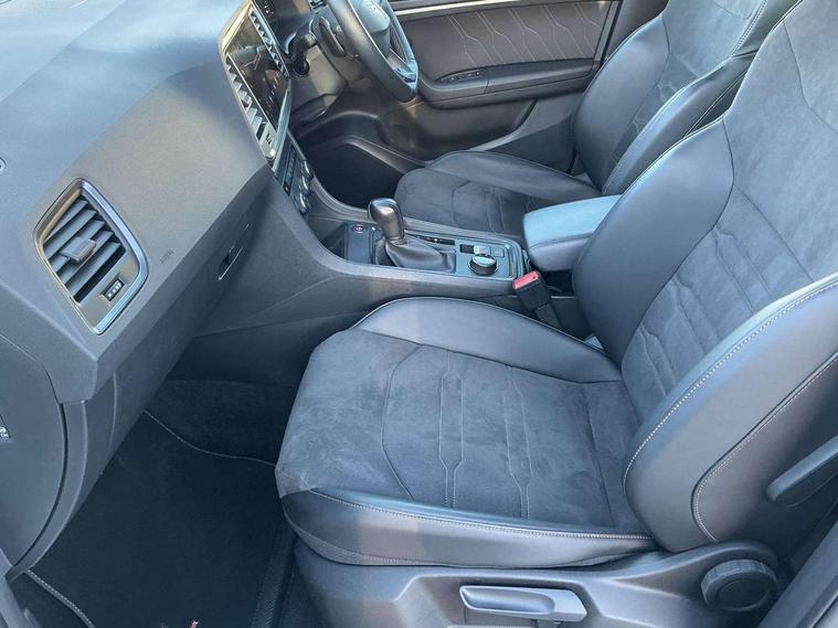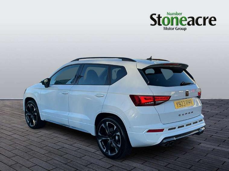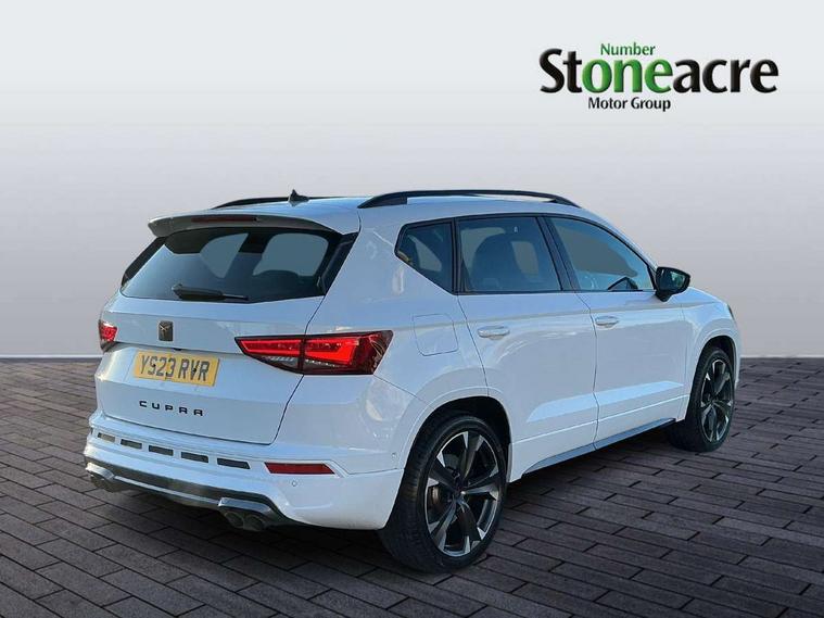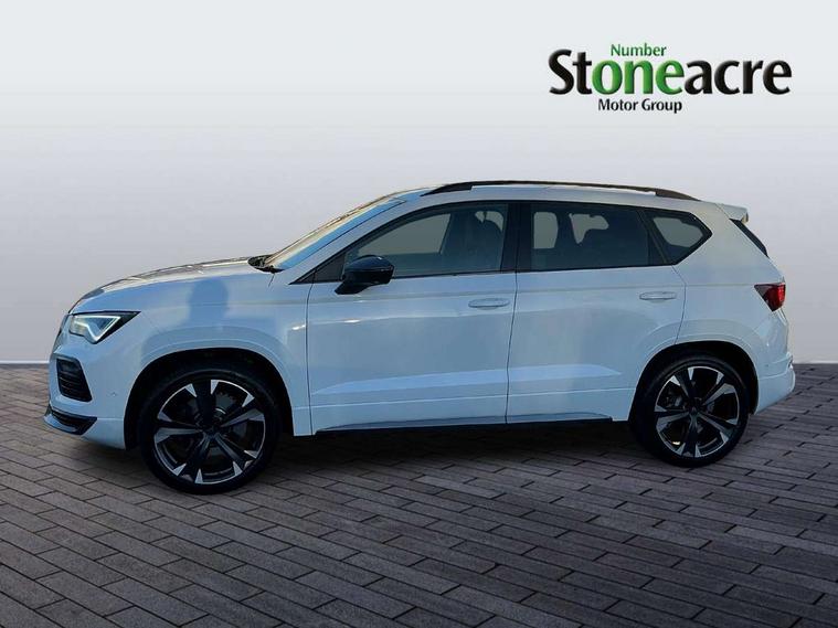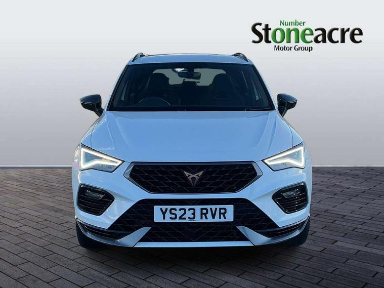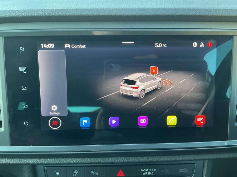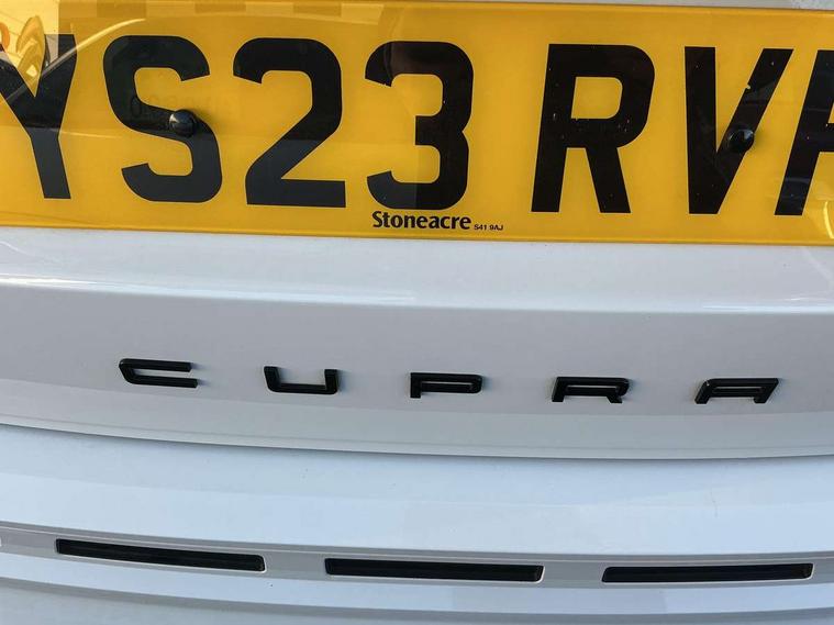 Cruise control system with speed limiter, CUPRA drive profile -Normal, Sport, CUPRA and Individual modes, steering/throttle response, gearshift mode, sound actuator and dynamic chassis control, Digital cockpit, E-call, Front and rear view camera, Outside temperature gauge, Progressive power assisted steering, Self parking functionality (includes front and rear parking sensors), Top view camera, Trip computer, Wireless full link smartphone integration, Wireless phone charger, CUPRA sport suspension, Beats audio system, Steering wheel mounted audio/phone controls, Body colour bumpers with dark aluminium diffusor, Body coloured wheel arch surrounds, Dark tinted rear windows, Daytime running lights, Door mirrors with welcome CUPRA light silhouette, Dynamic headlight range control with self adjusting whilst driving, Electric adjustable/heated/folding door mirrors, Front and rear electric windows, Front grille frame in chrome, Full LED headlamps with lens and LED front fog lamps with cornering function, Gloss black door mirrors, Gloss black roof rails, Gloss black side mouldings, Gloss black side window trim, Illuminated aluminium front door sill, LED rear tail lights with dynamic indicators, Rear fog lights, Rear side wing doors, Rear spoiler, Rear wash/wipe, Specific CUPRA design front bumper, Third brake light, Visible twin black exhaust pipes in both sides with dark aluminium diffuser, 12V socket in front, 3 seat bench in 2nd row, 60/40 split folding rear seat, Aluminium pedals, Bucket sport seats in dinamica upholstery, Cupra steering wheel emblem, Document holder under left front seat, Dual zone climate control, Front and rear head restraints, Front centre armrest, Front seat back storage pockets, Heated steering wheel, Height adjustable driver and passenger seat with lumbar adjustment, ISOFIX points in outer rear seats with top tether anchorage points, Leather steering wheel and gear knob, Multicoloured ambient lighting with LED interior illumination, Pedal cluster, Rear armrest and easy back seat release mechanism from boot, Single front passenger seat, Steering wheel mounted gearshift paddles, Storage compartment in roof console for sunglass, Storage compartment under driver's seat, Convenience pack - Ateca, Interior lighting pack - Ateca, Navigation system plus pack with DAB - Ateca, 3x3 point rear seatbelts, ABS, Traction control system (TCS), Electronic stability control (ESC) and Electronic differential lock system (XDS), Airbags - Driver and front passenger airbag with deactivation, front side, two curtain and driver's knee airbags, Black brake callipers with CUPRA logo, Electric parking brake with auto hold function, Front and rear seatbelt reminder, Front assist with autonomous emergency braking, Hill hold control, Manual rear child locks, Single tone horn, Tiredness recognition system, Tyre pressure monitoring system, Alarm, Keyless entry, Locking wheel bolts,