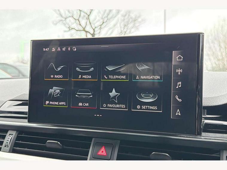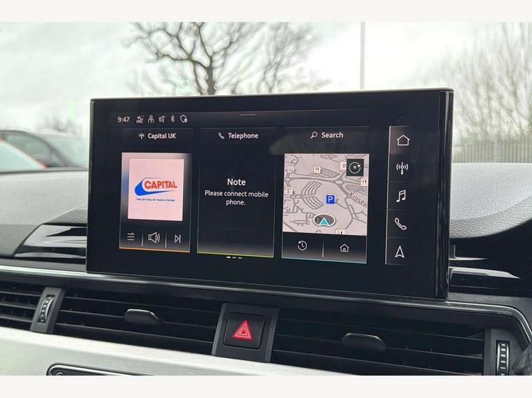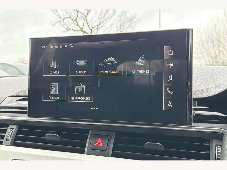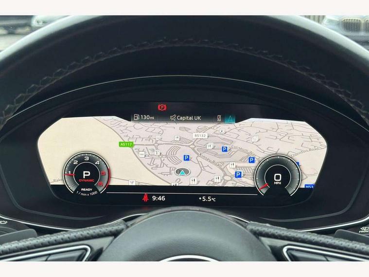 Audi connect safety and service (e-call), Audi connect with Amazon Alexa Integration, Audi drive select (Auto, Comfort, Dynamic, Efficiency and Individual), Audi parking system plus with front and rear sensors, Audi smartphone interface, Audi virtual cockpit - 12.3" full colour digital instrument cluster, vehicle/engine speed, Radio/media information+Driver assistance systems, Automatic start-stop system with coasting functionality and efficiency programme, Bluetooth interface, Electro-mechanical power steering, Email, calendar and text messages displayed via MMI, MMI nav+ with MMI touch - 10.1" high resolution MMI display, touch sensitive, 3D map, route/country info, dynamic route guide, personal route assist, Power operated tailgate, Rear view camera, Service interval indicator, Voice control system, Diesel particulate filter, Sports suspension lowered by 23mm, 8 passive loudspeakers, CD player, DAB digital radio reception, Two additional USB ports for rear passenger in rear centre console, Two SDXC card slots, Audi matrix LED headlights with LED rear lights + dynamic front and rear indicators, Auto dimming door mirrors, Auto dimming rear view mirror, Body colour bumpers, Body colour door handles, Body colour front spoiler lip, Body colour side sill trim, Body coloured door mirrors, Electric adjustable heated door mirrors, Electric folding door mirrors, Electric front windows, Front fog lights, Honeycomb structure radiator grille in grained matt black, Kerb-view function for passenger side, LED daytime running lights, LED side indicator lights integrated into door mirrors, LED third brake light, Matt aluminium silver tailpipe trim, Privacy glass, Rain and light sensors, Rear side wing doors, S line badges on front wings, S line front and rear bumpers with side skirts, S Line rear diffuser in matt titanium black with trim strip in matt aluminium silver, Side air inlets in grained matt black with matt aluminium silver inlay, Variable front intermittent wipers, Windscreen with acoustic glazing, 3 seat bench in 2nd row, 4 way electric lumbar support for driver and front passenger, 40/20/40 split folding 3 seater rear bench seat, Adjustable steering column, Black cloth headlining, Black perforated leather gearknob, Contrast stitching on seats, steering wheel and gear lever gaiter, Deluxe 3 zone electronic climate control, Front centre armrest, Front head restraints, Front/rear floor mats, Heated front seats, Illuminated door sill trim with S logo, ISOFIX child seat mounting and top tether, Luggage compartment mat, Manual seat adjustment, Rear centre armrest, Rear headrests, Single front passenger seat, Stainless steel pedals, Sunvisors with vanity mirrors, LED interior light pack - A5/RS5, 3x3 point rear seatbelts, 6 airbags - Driver, front passenger, curtain and side airbags, Electromechanical parking brake, Electronic Stabilisation Control (ESC) including ABS, ASR and EDL, Front passenger airbag deactivation, Height adjustable front seatbelts, Hill hold assist, Manual child lock in rear doors, Multi collision brake assist, Pop-up bonnet for pedestrian protection, Pre sense city, Seatbelt monitoring, Tyre pressure warning, Variable restraint system, Warning triangle and first aid kit, Anti theft alarm system, Anti theft wheel bolts, Immobiliser, Keyless Go, Remote central locking, Matt brushed aluminium inlays, Tool kit, Tyre repair kit,