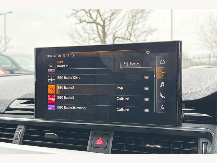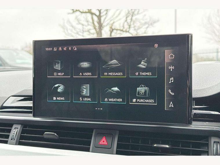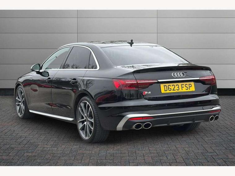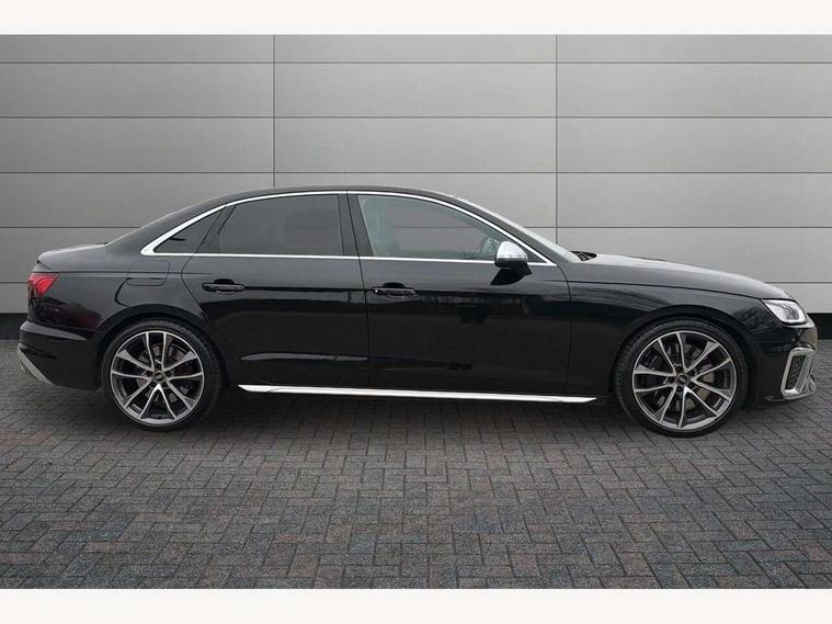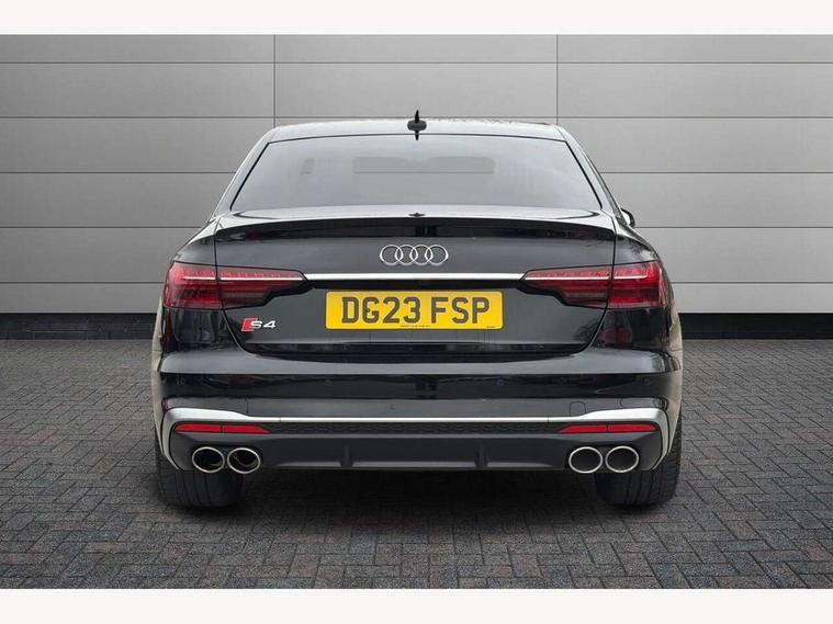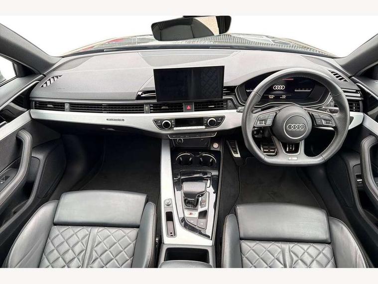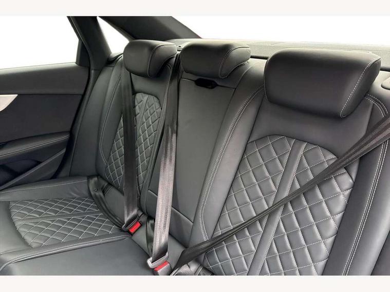 Audi connect safety and service (e-call), Audi connect with Amazon Alexa Integration, Audi drive select, Audi smartphone interface, Audi virtual cockpit, Automatic start-stop system with coasting functionality and efficiency programme, Bluetooth interface, Electric boot lid release, Electromechanical power steering, Email, calendar and text messages displayed via MMI, MMI Navigation plus with MMI touch includes 10.1" high resolution colour MMI display, 3D map, S instrument dials, Voice control system, 58 Litre fuel tank, S sports suspension, 2 USB charging ports, Audi sound system with 10 loudspeakers, DAB digital radio reception, Aluminium effect door mirror housings, Audi Beam uses LEDs to project the Audi logo, Auto dimming rear view mirror, Body colour door handles, Body colour front spoiler lip, Body colour side sill trim, Electrically folding auto dimming/adjustable/heated door mirrors with LED side indicators and kerb view function for passenger side, Front and rear bumpers with side skirts, High beam assistant, LED headlights with LED rear lights + dynamic rear indicators + headlight adjustment and high beam, turning light + LED daytime running lights, LED third brake light, Privacy glass, Rain and light sensors, Rear boot, Rear side wing doors, S Line badges on the front wings, S radiator grille in twilight grey matt with dual struts in aluminium and S4 logo, S rear diffuser in twilight grey matt and honeycomb grille in black, S specific dual branch chrome tailpipes with twin oval pipes on left and right, S specific side air inlets in titan black with chrome inlays in unique S design, S Style rear spoiler, Variable intermittent front wash/wipe, Windscreen with acoustic glazing, 40/20/40 split folding 3 rear seat bench in 3 parts with rear centre armrest, Black cloth headlining, Black leather gear lever knob, Contrast stitching on seats, steering wheel and gear lever gaiter, Deluxe 3 zone electronic climate control, Door sill trims with aluminium inlay, Electrically adjustable front seats, Fine nappa leather upholstery with S embossed logo + super sports seats, Front and rear head restraints, Front centre armrest, Gear lever with diamond S badge, Heated front seats, Illuminated door sill trims with S logo, ISOFIX child seat mounting and top tether, Key with S logo, Pneumatically adjustable lumbar support with massage function, Single front passenger seat, Stainless steel pedals and foot rest, Extended leather pack - A4/S4, High gloss package - A4, LED Interior light pack - A4/S4, 3 rear seatbelts, 6 airbags - Driver, front passenger, curtain and side windows, Electronic Stabilisation Control (ESC) including ABS, ASR and EDL, Front brake calipers painted in black with S4 logo, Hill hold assist, Multi collision brake assist, Pop-up bonnet for pedestrian protection, Pre sense city, Rear door child safety locks, S model enhanced braking system, Seatbelt monitoring, Warning triangle and first aid kit, Anti theft alarm, Anti theft wheel bolts, Central locking, Keyless Go, Matt brushed aluminium inlays, 19" 5 spoke V design contrasting grey alloy wheels, Tool kit, Tyre repair kit,