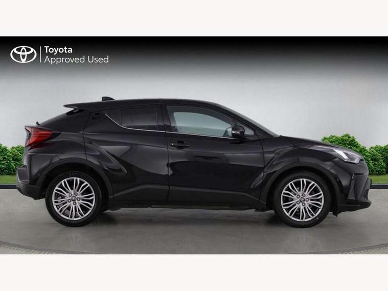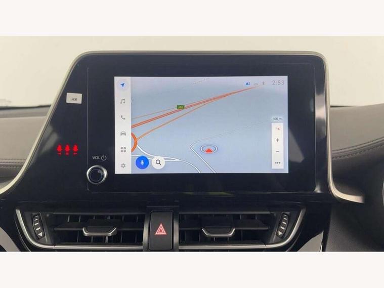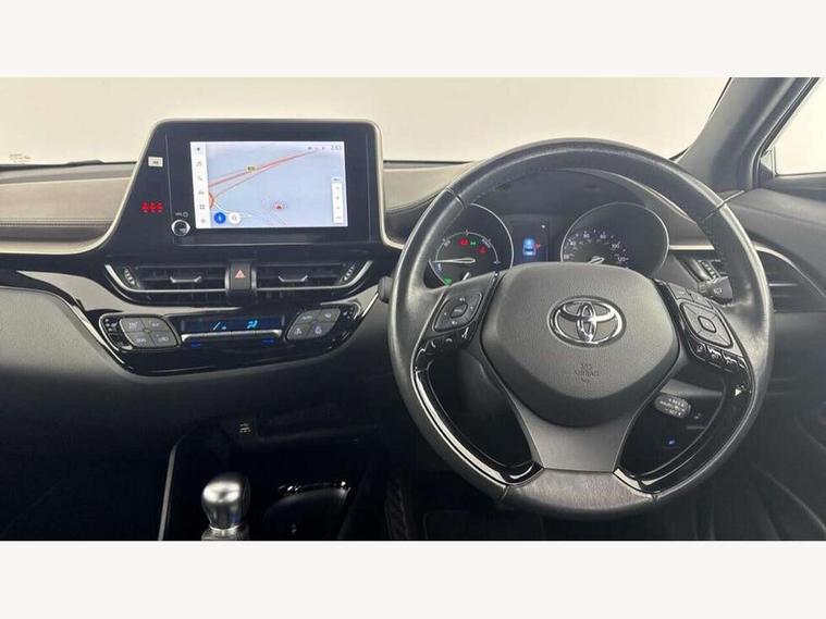 4.2" coloured TFT screen for multi-information display, Adaptive cruise control, Bluetooth connectivity, E-call, Electric power steering, Hybrid system indicator, Lane departure alert with steering control, Remote boot door release in cabin, Remote boot door release in key, Reversing camera, Road sign assist - RSA, Simple Intelligent parking assist, Touch 2 Go navigation system, Trip computer, Voice recognition, Vehicle Stability Control (VSC), 6 speakers, AM/FM radio, DAB Radio (Digital Audio Broadcasting), Toyota touch 2 multimedia system with 8" display, USB connector, Wi-fi connectivity, Adaptive front light system, Adaptive LED Headlights, Anti-jam protection on power windows, Auto high beam, Auto up and down function on all power windows, Automatic headlight levelling, Automatic headlights, Automatic headlights cut-off, Black and body coloured rear bumper, Black upper front grille, Body colour door handles, Body colour door mirrors, Body colour front spoiler lip, Body coloured front bumper, Boot door release with push button, Electric heated door mirrors, Follow me home headlights, Front and rear power windows, Honeycomb lower front grille, LED daytime running lights, LED fog lights, LED front light guide, LED High mounted stop light, LED rear brake lights, LED rear combination lights, Noise reduction layer on front windows and windscreen, Power adjustable door mirrors, Privacy glass, Rain sensor, Rear sequential indicators, Rear side wing doors, Rear spoiler, Rear tailgate, Rear window defogger, Rear window wiper, Shark fin antenna, UV-filter on driver and passenger windows, UV-filter on rear windows, 12v power outlet - front, 3 rear headrests, 3 seat bench in 2nd row, 3 spoke leather steering wheel, 60/40 split folding rear seat, Adjustable rear headrests, Adjustable speed limiter switch on steering wheel, Assist grips front and centre pillar, Audio and telephone switches on steering wheel, Black front door assist grips, Blue ambient lighting on front cup holders, Blue ambient lighting on front doors, Boot light, Chrome interior door handles, Driver and front passenger personal light, Driver and front passenger Whiplash Injury Lessening seats, Driver and passenger seatback pockets, Dual zone automatic air conditioning, Floor mats, Front cupholders, Front head restraints, Front sports seats, Glovebox with internal light, Hard tonneau cover, Heated driver and front passenger seats, Heated steering wheel, Hooks for luggage holding net, Humidifying Nanoe air purifier, Illuminated entry system, Isofix attachments on outer rear seats, Leather gearshift, Light on driver sun visor, Light on passenger sun visor, Manual telescopic steering wheel, Manual tilt steering wheel, Microphone on front personal light, Mirror on driver sun visor, Mirror on passenger sun visor, Multimedia switches on steering wheel, Pollen filter, Power adjustable lumbar support on driver seat, Power tilting cushion on driver seat, Shopping bag hooks, Single front passenger seat, Slow opening on lower glovebox, Voice recognition switch on steering wheel, Leather pack - C-HR, Tech with parking sensor pack - C-HR, 16 Disk front wheel brake, 3x3 point rear seatbelts, ABS+EBD+Brake assist, Electronic parking brake, Front and rear seatbelt reminder, Front passenger airbag on/off switch, Hill start assist control (HAC), Pre collision system with pedestrian detection, Pre-tensioners and force limiters, Rear door child safety locks, SRS Airbags - Driver + Front passenger, front side, front and rear curtain and driver's knee airbags, Toyota safety sense, Tyre pressure monitoring system, Acoustic vehicle alert system (AVAS), Glass-breaking alarm sensors, Immobiliser, Intrusion alarm, Intrusion sensor, Motion sensor alarm, Power door locks, Power passenger window lock, Remote central locking, Black lower dashboard, Dark brown upper dashboard, Piano black console, Silver deco line on upper dashboard, Tyre repair kit,