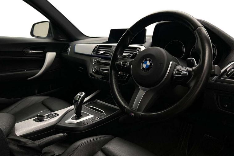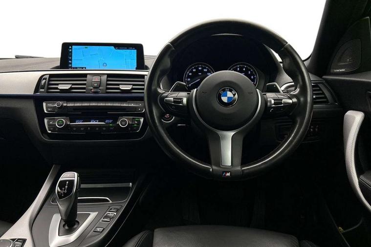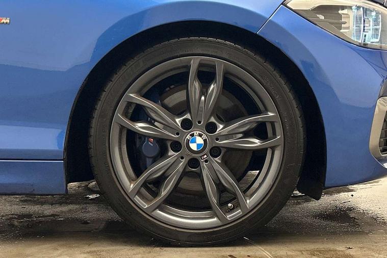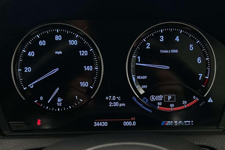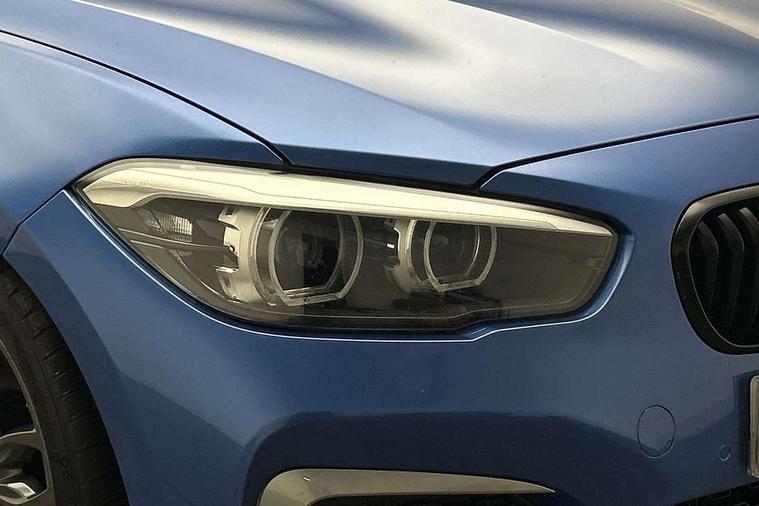 Automatic start/stop system, BMW Online services, BMW remote services, BMW Teleservices, Brake force display, Brake pad wear indicator in front and rear, Check Control warning system for monitoring of lights and door/luggage compartment open warning, Cruise control with brake assist, Eco pro mode, Instrument cluster with speedometer with miles per hour read out, tachometer and fuel gauge, Lights on warning by audio warning signal when ignition is switched off, Oil temperature display via on board computer in instrument cluster, On board computer - average speed+fuel consumption, service interval, clock/date, odometer/trip meter, outside temperature display and ice warning, On board diagnostics, Optimum shift indicator, Personal Profile, Real time traffic information, Speed limiter, Variable sport steering, Battery age recognition function, Drive Performance Control, Sport automatic transmission with Launch Control, Sports function on gearbox with steering wheel mounted gearshift paddles, BMW professional radio with CD player, DAB Digital radio, Harman/Kardon loudspeaker system, Body colour door handles, Body colour front and rear bumpers, Body colour roof mouldings, Clear lenses direction indicator lights, Dark chrome exhaust tailpipes in dual, round and split, Darkened rear lights with LED light bars, Daytime driving lights, Direction indicator side lights in exterior mirrors, Dynamic brake lights, Electrically adjustable heated door mirrors and washer jets, Ferric grey air blades, Ferric grey mirror caps, Follow me home headlights, Front and rear bumper system with replaceable deformation elements, Front electric windows with open and close fingertip control, anti trap facility and comfort closing, Green tinted heat protection glazing, Headlight beam throw control, Heated windscreen washer jets, High gloss black kidney grille with black slats, High level third brake light, LED exterior front door handle lights, Lightweight engineering, M aerodynamic bodystyling, Nearside reverse light in rear light cluster, Offside rear fog lights, Rain sensor including auto headlights activation, Rear window aerial, Rear window wiper, Shark fin antenna, Sun protection glass, Visible VIN plate, Welcome lighting, 12V power socket in centre console, 12V power socket in passenger footwell, 60/40 split folding rear seat, Ambient lighting - switchable BMW classic orange/ cold white LED, Ambient lighting front and rear, Anthracite headlining, Anthracite Velour front floor mats, Conditioned based service, Dakota leather upholstery, Door sill finishers with M140i designation, Driver and passenger illuminated vanity mirror, Front and rear side armrest integrated into door trim, Front door exit lights, Front folding sliding armrest with storage compartment, Front footwell lights, Front head restraints, Front LED reading lights, Front sports seats with electric side bolster adjustment, Front storage compartment in centre console and in door trim, Front/rear courtesy lights with soft on/off dimming, Glove box handle with chrome surround, Glovebox, Interior light in front centre interior mirrors and rear centre auto interior light activation when door is opened when ignition switched off, Isofix child seat for two outer rear seats, Leather gear knob and handbrake grip, LED luggage compartment lighting, LED rear interior light with centre reading lights, Luggage compartment access via BMW roundel, Luggage compartment lighting, M sports multi function leather steering wheel, Manually adjustable steering column, Multi-function controls for steering wheel, Rear folding head restraints, Sunvisors with vanity mirrors and ticket pocket, Two cupholders with sliding cover and inlay mat, Two grab handles integrated in roof lining, Two sills lashing eyes in the luggage compartment, Two zone automatic air conditioning, 3 point seatbelts on all seats, front pyrotechnic belt tensioners, stopper and belt force limiters, rear coded belt buckles, Active differential brake (ADB), electronic differential lock in DSC-OFF mode, Airbags - Front driver and passenger, front and rear head, front side, curtain head protection, Anti lock braking system (ABS) with brake assist, Automatic Stability Control (ASC), Battery safety cut-off, BMW emergency call, Brake drying, Brake energy regeneration, Braking readiness, CBC - (Cornering brake control), Crash sensor activating central locking release, hazard warning lights, Driver and front passenger seat belt security check, DSC+, Dynamic brake control, Dynamic Traction Control - DTC, Front passenger manual airbag deactivation, Front ventilated brake disc, Hill start assist, M Sport braking system, Rear brake discs, Rear child proof door locks, Side impact protection, Twin horns, Tyre pressure monitoring system, Warning triangle and first aid kit, Automatic drive away locking facility, Central locking switch for all doors, fuel filler cap and luggage compartment, Locking wheel bolts, Remote central locking with two Integrate key, one button for opening and closing all lock, open and close window, button for open luggage compartment, Remote control integrated key with blue inset, Start/stop button with comfort go keyless engine start and auto start stop deactivation button, Thatcham Cat.1 alarm and immobiliser, High performance tyres, Reduced rolling resistance tyres,