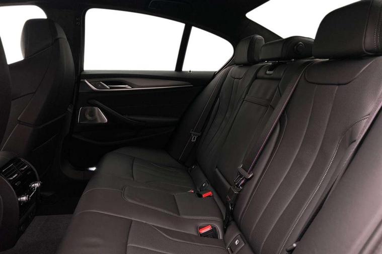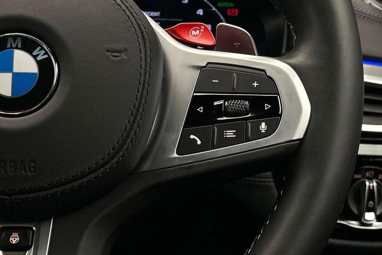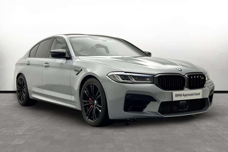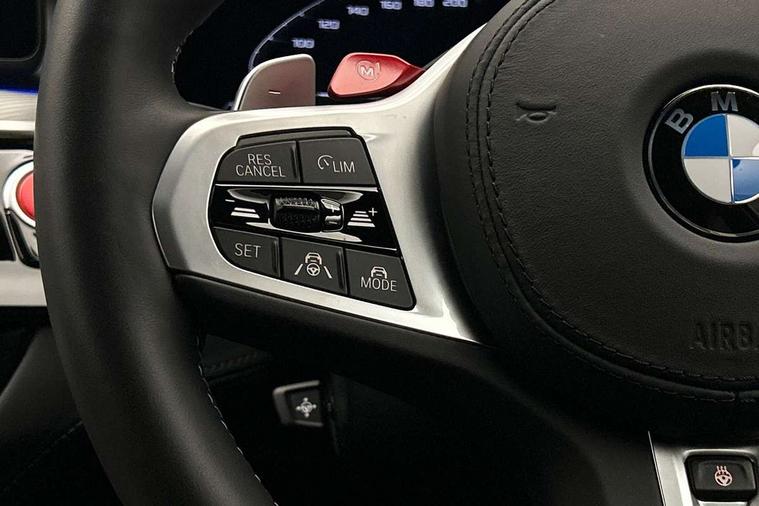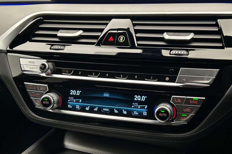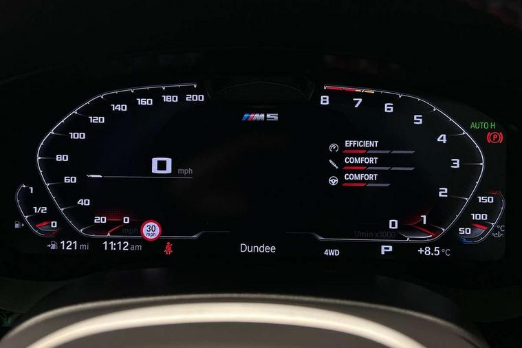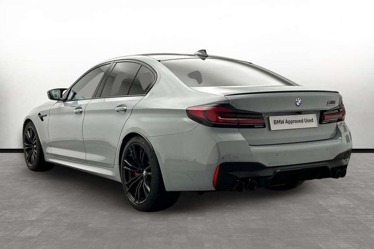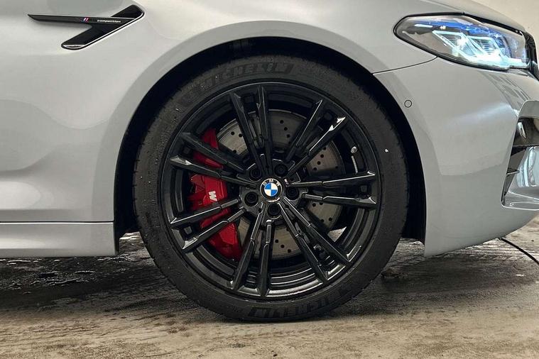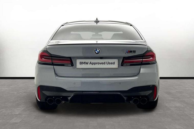 32GB hard disc drive (HDD) memory, Active Guard, BMW ConnectedDrive online services, BMW Drive recorder, BMW gesture control, BMW Head up display, BMW legal emergency call, BMW Live Cockpit Professional sat nav system with 12.3" instrument display and high resolution control display, BMW Teleservices, Brake force display, Comfort access system with smart opener, Electric boot lid - electrically opening/closing rear tailgate, Enhanced bluetooth with wireless charging, iDrive touch controller with shortcut buttons, M Servotronic steering, Oil sensor for level and grade, On board computer (OBC) includes average speed, fuel consumption and range, journey computer, outside temperature display, personal profile functions, On-board diagnosis - OBD, Powered by Operating System 7.0, Service interval indicator, Start/stop button in red, Wi-Fi hotspot, Adaptive suspension with dynamic damping control, Catalytic converter, Double wishbone front axle, Eight speed M Steptronic sport transmission with drivelogic and gearshift paddle switches on steering wheel includes launch control, Engine cover with M designation, High precision direct injection, Integral rear axle, Petrol Particulate Filter, Rear biased M specific xDrive setup, VALVETRONIC with Double VANOS, DAB tuner, Favourite buttons, All round anti-corrosion system, Auto dimming door mirrors, Black exhaust tailpipes, BMW Individual high gloss shadow line includes exterior mirror frame, window frame surround, B pillar finish, air breather in high gloss black, BMW individual lights shadow line, Body coloured bumpers, Body coloured door handles inserts, Carbon fibre roof, Door handle illumination, Dynamic brake lights with LED technology, Electric front and rear windows with fingertip open/close + anti-trap all round and comfort closing function, Follow me home headlight function, Heated windscreen washer jets, High beam assistant, High level LED brake light, Illuminated door sill finishers with M5 designation, Interior rear view electrochromatic mirror with automatic anti dazzle function, LED daytime running lights, M rear spoiler, M specific electrically adjustable/foldable/heated exterior mirrors with integrated direction indicators, M Sport exhaust system, Rain sensor including auto headlights activation, Rear boot, Rear side wing doors, Sun protection glazing, 12V power sockets 2 x rear, 1 x luggage compartment (additional 1 X double USB adaptor with 2A charging current), 3 seat bench in 2nd row, 4 zone control automatic air conditioning, Ambient interior lighting with 11 pre-defined selectable light designs including 6 colours, Armrest - front and rear integrated door trim, centre console includes storage compartment, rear centre includes 2 cupholders, Battery in luggage compartment with jump start facility in engine bay, Black velour front and rear floor mats with M piping, Child seat ISOFIX attachment with rear outer seats includes top tether, Cup holders (2 front and 2 rear), Driver and front passenger lumbar support, Electric seat adjustment with memory, Front and rear footwell lights, Front and rear reading lights, Headrests for all seats, Height and length electric adjustment steering column, Lockable glove compartment with light, M leather steering wheel, M multifunctional sport seats driver and front passenger with comfort electric height adjust headrests and illuminated M5 logo headrests, Multifunction controls for leather steering wheel, Single front passenger seat, Through loading system with 40/20/40 split folding rear seat, BMW Individual high gloss shadow line with extended contents pack - M5, Connected package professional - M5, Parking assistant plus pack - M5, Airbags - driver/front passenger, rear and side, first and second row seats head airbags, front passenger seat airbag deactivation, Anti-lock braking system (ABS), Automatic Stability Control (ASC), Brake assist function, Brake energy regeneration, Child locks on rear doors, Cornering brake control (CBC), Crash sensor activating central locking release, hazard warning lights, fuel cut off and interior lighting, Deformation zones - front and rear with door reinforcements and bumpers up to 2.5 mph, DSC - Dynamic Stability Control, Dynamic brake control, Dynamic Traction Control - DTC, Electromechanical parking brake with automatic drive away release and auto hold function, Electronic brake force distribution, Impact-dependent airbag system, M Sport seatbelts, Motor Slip Regulation (MSR) - Engine Drag Torque Control, Seat belts front inertia reel with pyrotechnical belt latch tensioner, belt force limiter and belt restrainer, Side impact protection, Three inertia reel rear seatbelts, Two tone horn, Tyre pressure indicator, Warning triangle and first aid kit, Alarm system (Thatcham 1) with remote control and electronic engine immobiliser, Locking wheel bolts, Galvanic embellisher for controls, Tyre repair kit,