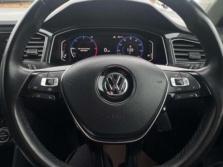 Active Info Display, 10.3" high resolution TFT dash display screen with customised information, Adaptive cruise control, App-Connect, Automatic start/stop system, Bluetooth hands free telephone connection, Car-Net Security and Service, Discover navigation, 8" touch screen navigation/infotainment system with Car-Net, European map, CD/radio, 2D/3D map and speed limiter, Driver alert system with audible and visual fatigue detection system, Driving Mode Selection with four preset modes - Eco, normal, sport or individual modes, Front assist, radar sensor controlled distance monitor, city emergency braking + predictive pedestrian protection, Instrument cluster in white, Lane assist, Multifunction computer with visual gear change recommendation for fuel consumption, Power assisted speed sensitive steering, Voice activation, Warning sound and light for doors and tailgate open, Warning sound and light for front seatbelts unfastened, Battery regeneration during braking, Misfuel prevention device for diesel engine, CD/MP3/WMA, USB and SD card reader, DAB Digital radio, Dynamic navigation based on TMC+, MDI multi device interface, Premium USB cable in choice of either Apple or Android smartphone compatibility, Three route options - Fast, Short, Eco, Auto dimming interior rear view mirror, Automatic hazard lights activation under emergency braking, Black grained lower door protectors, Black grained wheel arches, Body colour bumpers with silver metallic underbody fascia, Body colour door handles, Body colour door mirrors with integrated indicators, Chrome effect left and right trapezoid exhaust tailpipe fascia surround, Chrome trim on upper and lower radiator grille, Door mirror puddle lights, Dusk sensor, Electrically foldable, adjustable and heated door mirrors with puddle lights and reverse activated kerb-view adjustment on passenger's door mirror, Front and rear electric windows, Front fog lights with static cornering function, Front windscreen wiper with intermittent wipe and 4 position delay, Fully galvanised body, Heated rear window, High level 3rd brake light, LED darkened rear light clusters, LED dipped and main beam headlights with automatic range adjustment including signature LED daytime running lights, LED rear number plate lights, Manual coming/automatic leaving home lighting function, Rain sensor, Rear tinted glass from B-pillar backwards approx 65% tinted, Rear windscreen washer and wiper with interval delay, 12V socket in centre console storage area, 2 LED front and rear reading lights, 3 rear head restraints, 4 load lashing points in luggage compartment, Ambient lighting in front footwell and light strips below trim in front doors, Climate control - 2 zone electronic air conditioning with automatic air recirculation and allergy filter, Drawer under drivers seat, Front centre armrest with storage compartment, longitudinal and height adjustable and two rear air vents, Front cupholders x 2, Front footwell illumination, Front seat back storage pockets, Glovebox, Height adjustable front seats, Height/reach adjust steering wheel, Illuminated vanity mirrors, Instrument lighting, white adjustable panel illumination, Interior light delay, Isofix easy fit child seat preparation for 2 outer rear seats, Load through provision with single cup holder when folded down, Luggage compartment cover, removable, Luggage compartment lighting, Split folding rear seat backrests with centre armrest, Storage compartment in left and right luggage area, Storage compartment in rear doors, Storage compartments in driver and front passenger doors, Variable boot floor, height adjustable and removable, 3 rear three point seatbelts, ABS, Driver and front passenger safety-optimised head restraints, Electronic parking brake with auto hold, ESC with EDL, ASR, EDTC and trailer stabilisation function, Front and rear curtain airbags, driver and front passenger airbags with passenger deactivation switch and front side impact airbags, Rigid safety cell with front and rear crumple zones, Three point height adjust front seatbelts + pretensioners, Tyre pressure loss indicator, Ventilated front and rear disc brakes, Volkswagen roadside assistance, Alarm with remote central locking and interior protection, Electronic engine immobiliser, Remote central locking with 2 remote folding keys, Space and weight saver spare wheel,