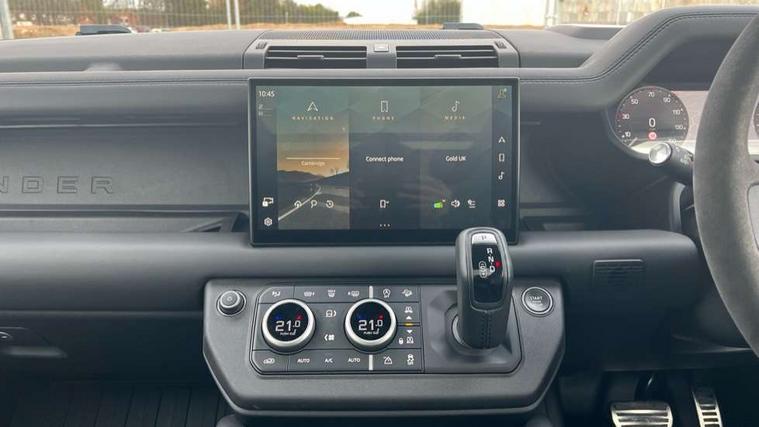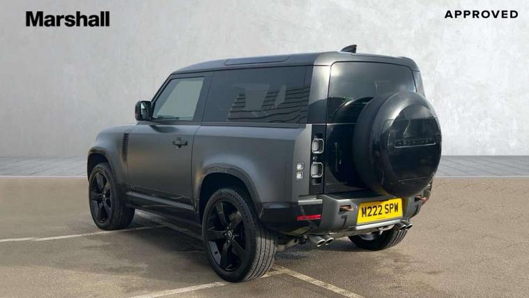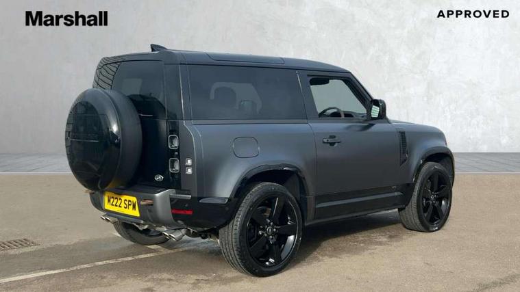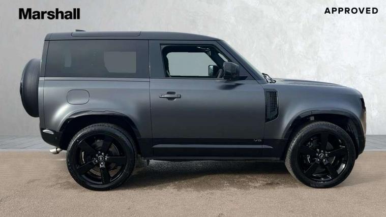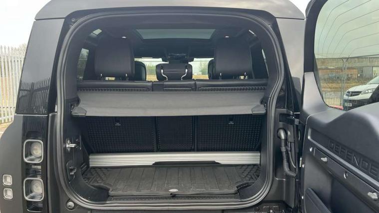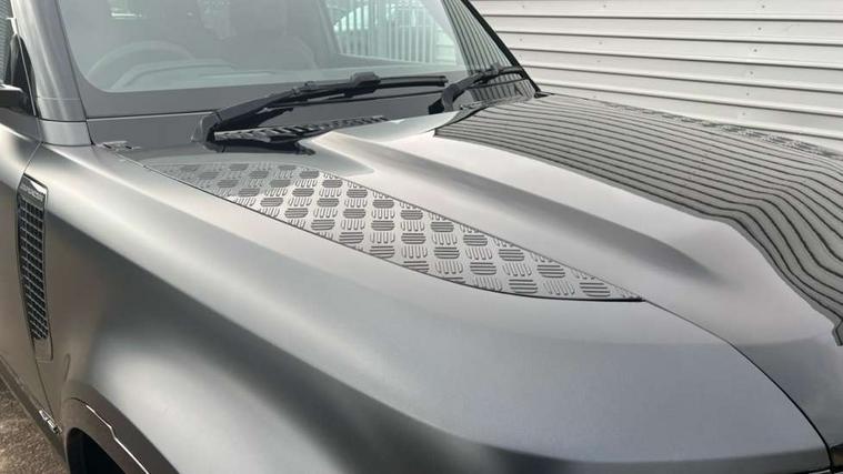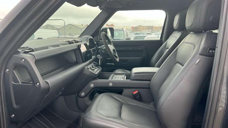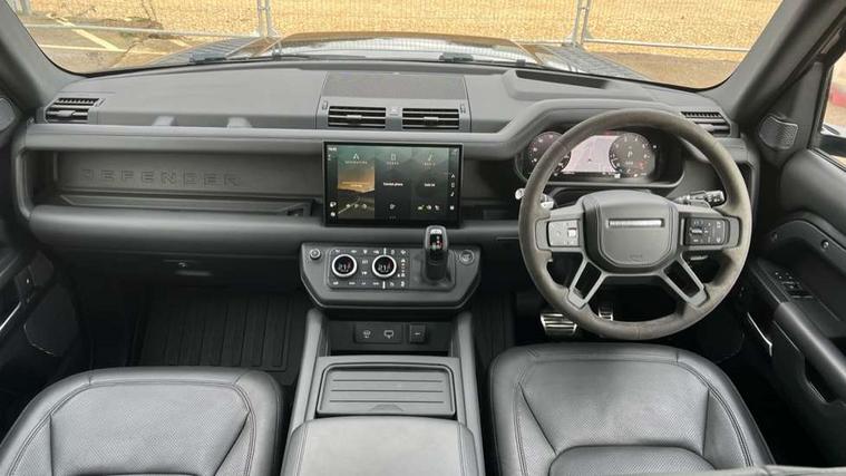 11.4" touchscreen, 360 degree parking aid, 3D Surround Camera with 360 View, 180 Rear View, Front Traffic Detection, Forward Vehicle Guidance, Tow Hitch Assist and clear sight Ground View, Adaptive cruise control, Android Auto, Apple CarPlay, Assisted tailgate with soft close, Blind spot assist, Bluetooth system, Brake pad wear indicator, Clear exit monitor, Connected navigation pro, Driver condition monitor, Electric power assisted steering (EPAS), Garage door opener (Homelink), Head up Display, Lane keep assist, Push button start, Rear collision monitor, Rear traffic monitor, Traffic sign recognition with adaptive speed limiter, Trip computer, Wade Sensing, Wireless device charging with phone signal booster, 8 speed automatic transmission, Adaptive dynamics, All terrain progress control, All wheel drive system, Configurable Terrain Response, Electronic active differential with brake torque vectoring, Electronic air suspension, Terrain Response 2 with dynamic program, Twin speed transfer box, DAB Radio (Digital Audio Broadcasting), Meridian 700w surround sound audio system with 15 speakers, Pivi pro connected, Advanced tow assist, Automatic headlight levelling, Automatic headlights, Black contrast bonnet, Black contrast roof, Black contrast tail door, Centre high mounted stop light, ClearSight interior rear view mirror, Darkened LED tail lights, Electric heated/power fold door mirrors with approach lights and auto dimming driver side, Electric windows with one touch open/close and anti-trap, Electrically deployable towbar, Follow me home lighting, Front fog lights, Gloss black contrast tail door, Headlamp power wash, Heated rear window with timer, Heated washer jets, Heated windscreen, Illuminated metal treadplates with V8 branding, Less roof rack or roof rails, Matrix LED headlights with signature DRL, Panoramic rear side glass, Premium metallic paint, Privacy glass, Puddle lights, Quad outboard mounted exhaust pipes, Rain sensing windscreen wipers, Rear fog lights, Rear wiper, Satin Protective Film, Side hinged tailgate, Sliding panoramic roof, Solar attenuating windscreen, Trailer stability assist, V8 badge, 12V power socket in loadspace, 14 way heated and cooled electric adjustable memory front seats with 4 way manual headrests, 3 seat bench in 2nd row, 40:20:40 fixed heated rear seats with centre armrest, Air quality sensor, Alpine lights, Bright metal pedals, Cabin Air Purification plus, Domestic plug socket, Durable rubber cabin flooring, Durable rubber loadspace flooring, Ebony morzine headlining, Electric cabin pre conditioning, Electric reach + rake adjustable steering column, Extended leather upgrade, Footwell lights, Front centre console refrigerator compartment, Heated steering wheel, Leather gearshift, Loadspace cover, Loadspace Hook, Multifunction steering wheel, Overhead stowage for sunglasses, Premium cabin lighting, Rear headrests, Rear ISOFIX, Rear reading lights, Satin chrome gearshift paddles, Single front passenger seat, Standard seat configuration, Storage glovebox, Suedecloth steering wheel, Sunvisors with illuminated vanity mirrors, Three zone climate control, Twin front cupholders with cover, Carpathian exterior pack - Defender, Online pack with data plan - Defender, 5 x 3 point seatbelts, ABS, Brake hold function, Cornering brake control (CBC), Cross car beam in satin black powder coat brushed finish, Customer configurable autolock, DSC - Dynamic Stability Control, EBD - Electronic brakeforce distribution, Electric parking brake (EPB), Emergency brake assist, Emergency braking, ESP + traction control, Front airbags with passenger seat occupant detector, HDC - Hill descent control, Hill launch assist, Low traction launch, Remote for (e-Call, Optimised assistance call, InControl app, Climate, beep and flash and door), RSC - Roll stability control, Seat belt reminder, TPMS (Tyre pressure monitoring system), Activity key, Alarm, Immobiliser, Intrusion sensor, Keyless entry, Locking wheel nuts, Robustec veneer,