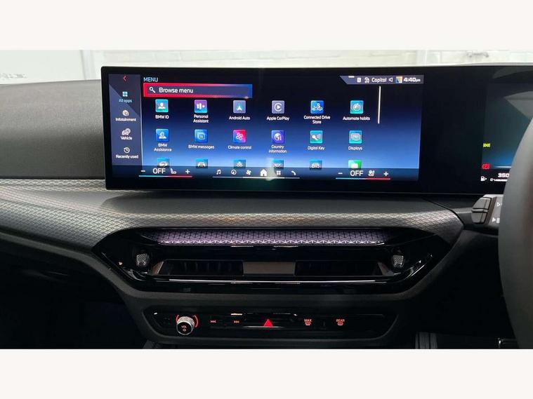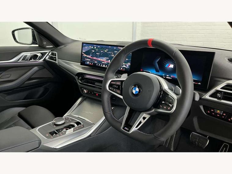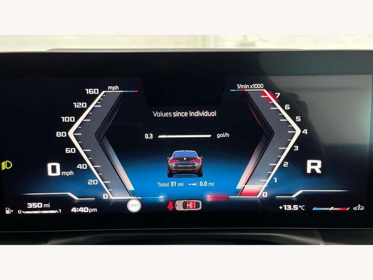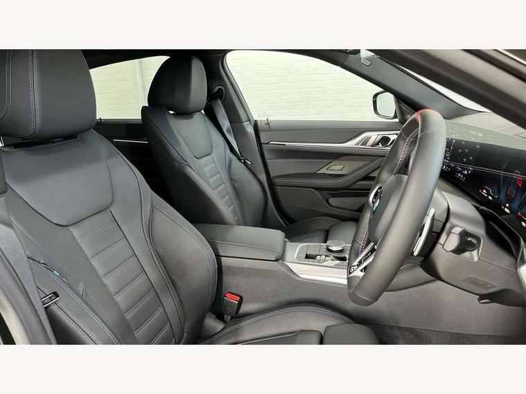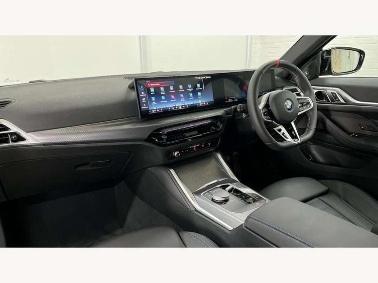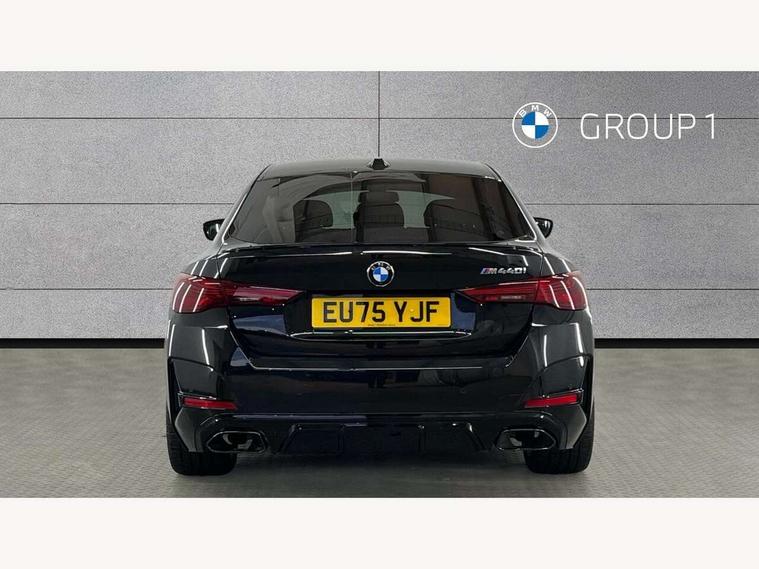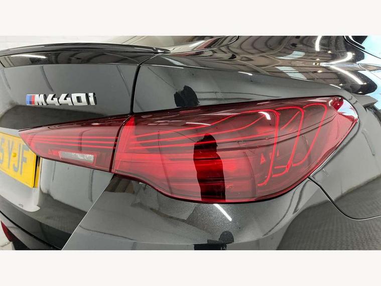 Active guard plus, Attentiveness assist, Automatic start/stop function, BMW ConnectedDrive online services, BMW iDrive controller on centre console, BMW service history, BMW Teleservices, Brake pad wear indicator in front and rear, Check Control warning system for monitoring of lights and door/luggage compartment open warning, Condition based service, Electric bootlid, Electric power steering with Servotronic steering optimised at all speed ranges, Instrument cluster with speedometer with mph readout, tachometer, fuel gauge and oil temperature gauge, Integrated owners handbook, Language version English, Oil sensor for level and grade, On board computer - average speed, fuel consumption, outside temp display with acoustic warning, clock/date, service interval, odometer/trip meter, Run flat indicator, Shifting point display, Start/stop button in black, Variable sport steering, 48V Mild hybrid technology, 8 speed automatic steptronic transmission with gearshift paddles, Balanced 50/50 weight distribution, Double joint spring strut front axle, Drive experience mode switch - Comfort mode, ECO PRO mode and SPORT mode, Electronic differential lock control (EDLC), Low centre of gravity, M Sport differential, Petrol Particulate Filter, Stroke dependent dampers, xDrive system permanent all-wheel drive variable torque distribution, DAB tuner, Personal eSim, Acoustic glazing, Automatic headlight beam throw control with load dependent regulating reaction, dynamic compensation of braking dive and acceleration squat, Body colour fuel filler flap, Body colour roof fin, Bonnet and tailgate badge, Design of radiator grille ring in Black high-gloss with horizontal look and an M badge on the left side, Electric folding wing mirrors - Driver side electrochromic, auto anti dazzle function & front passenger side auto parking function without anti dazzle, Electric windows - front and rear, with open/close fingertip control, anti trap facility and comfort closing function all round, Follow me home headlights, Free form tailpipe finisher and side frame trim strip in high gloss black, Front and rear bumper system, Front apron plastic in body colour, Green tinted heat protection glazing, Illuminated bow type door handles in body colour drivers side with door lock, Interior rear view electrochromatic mirror with automatic anti dazzle function, LED 3rd brake light, LED daytime running lights, LED front fog lights, LED front indicators, Licence plate panel integrated into front bumper and tailgate, M designation on front side panels, left and right, M rear boot spoiler, M Sport entry door sill strips, Model and M badges in pearl chrome, Model designation on right side of tailgate, One piece front bumper cover including towing eye cover in body colour, Rear side wing doors, Rear wiper, Reversing light, Sun protection glass, Two part LED tailights in L-shape with components in smoked glass, brake light, LED turn indicator and rear fog light, Visible exhaust tailpipe finisher, Visible VIN plate, Welcome lights in interior and door handle area, Widened track and increased camber values for max transverse dynamics, agility and steering precision, Windscreen washer jets concealed underneath bonnet, 12V power socket in front centre console, 2 front cupholder in centre console with clamping elements and matt black inlay, 3 rear headrests, 3 seat bench in 2nd row, 3 spoke flat bottom M sport leather multifunction steering wheel, 3 zone automatic air conditioning, 4 pieces lashing eyelets in luggage compartment, 40:20:40 split folding rear seat, folding head restraint of centre seat and rear centre armrest with two cupholders, Anthracite headlining, Armrest integrated in front and rear door trim + front centre console armrest, Battery in luggage compartment, BMW ID, Electric memory seats - electrically adjustable seats with drivers seat memory, exterior mirrors memory and automatic parking function, Extended storage - 2x Dual USB Type C 3A charging function in the rear centre console for the rear, Extended storage - Luggage compartment partition net on left side trim panel, Bag hook on both sides of the luggage compartment, Extended storage - Multifunction hook, Extended storage - Trailer tow hitch button in black (extendable trailer tow hitch) on the right hand side, Four grab handles integrated in roof lining, Front and rear door pockets, Front footwell lights, Heated driver and front passenger seats, Height adjustable front headrests, Illuminated armrest storage compartment, Illuminated glove compartment with separate small compartment, Interior light and front reading light, Luggage compartment light, Single front passenger seat, Steering column adjustment - Infinitely variable in height and length, Sunvisors with illuminated vanity mirrors and ticket pocket, Through load system, Toolkit located in luggage compartment, Velour front floor mats, Ambient lighting pack - 4 Series, Connected professional package - 4 Series, M High gloss shadowline exterior trim pack - 4 Series, M sport exterior styling pack - 4 Series M440i, 3 point seatbelts on all seats, BMW emergency call, Brake energy regeneration, Braking pre-tensioning, Child locks, Child seat ISOFIX attachment for the two outer rear seats, Crash sensor activating of airbags, Unlocking doors, hazard warning lights, interior light, safety battery terminal, Driver and front passenger side airbags, integrated in the door side seat backrest bolsters for all seat variants, Driver/Front Passenger airbags, Dry braking, Dynamic brake control, Dynamic stability control + (DSC+) - Anti-lock Braking System (ABS) with brake assist and cornering brake control + Automatic Stability Control (ASC), Dynamic Traction Control - DTC, Electric parking brake including automatic hold function and automatic release of the parking brake when driving off, Front and rear ventilated brake disc, Front passenger manual airbag deactivation, Head airbags for all 4 outer seats, Hill start assistant, Seat 
