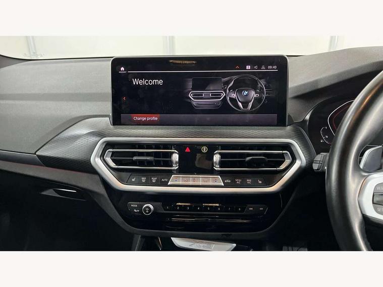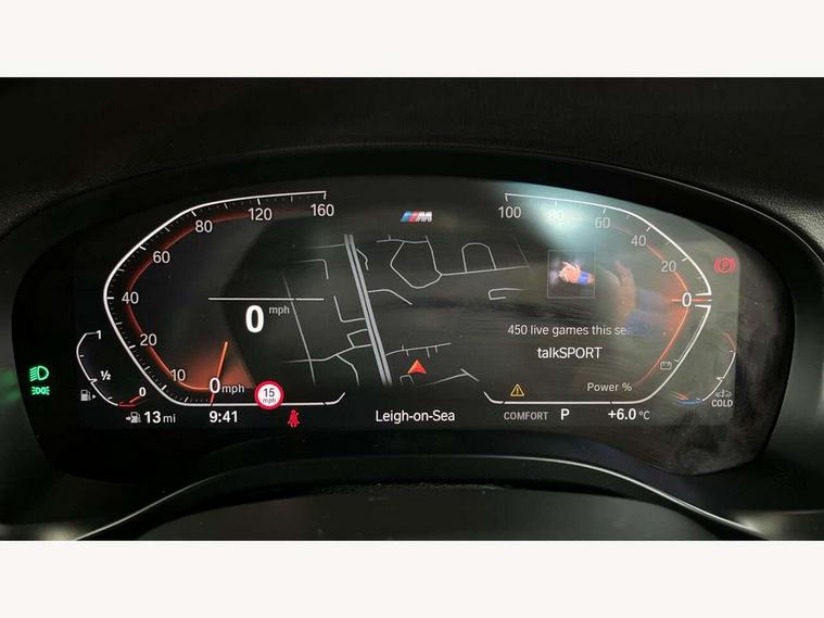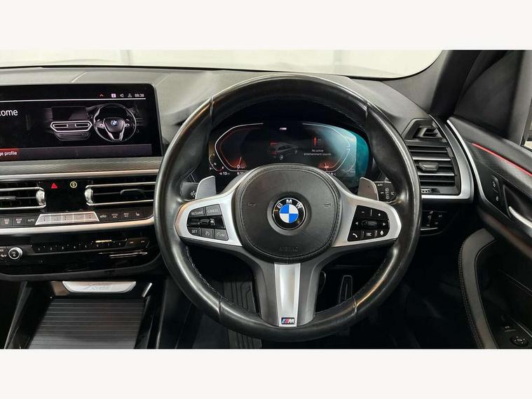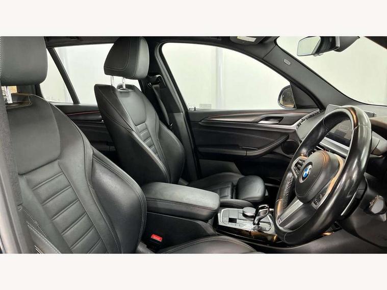 Active Guard, Attentiveness assist, BMW Live Cockpit Professional nav system including 12.3" instrument display + 12.3 high resolution control display, BMW Online services, BMW Teleservices, Brake pad wear indicator in front and rear, Check Control warning system for monitoring of lights and door/luggage compartment open warning, Condition based service - BMW service history, electronic service booklet, integrated owner's handbook, Connected drive services, Cruise control with brake function + speed limiter, Electric boot lid, Front/rear Parking distance control, iDrive Controller with 8 favourite buttons, Instrument cluster with speedometer with mph readout, tachometer, fuel gauge and oil temperature gauge, Lights on warning by audio warning signal when ignition is switched off, Oil sensor for level and grade, warning by check control system, On board computer - average speed+fuel consumption, service interval, clock/date, odometer/trip meter, outside temperature display and ice warning, Optimum shift indicator, Personal Profile - automatic lock when driving away selectable, Stop/start system, Variable sports power steering, Automatic transmission with gearshift paddles, Drive performance control with ECO PRO comfort + sport mode, Incorrect fuelling protection, M sport suspension, Multi-link rear suspension, Performance Control, BMW professional radio/CD/MP3, DAB tuner, Acoustic glazing, Automatic windscreen wipers and automatic headlight, Black finish on B pillars, Body colour door handles, Body colour electric adjust heated aspherical door mirrors, Body colour roof mouldings, Body coloured bumpers, Direction indicator, side repeaters, integrated in exterior mirrors, Dynamic brake lights, Exhaust tailpipes - dual, round, split left and right with chrome finisher, Fingertip control / anti-trap function on electric window, Folding wing mirrors with auto dimming, Follow me home headlights, Front and rear bumper system with replaceable deformation elements, Front and rear electric windows, Gloss chrome tailpipes finishers, Green tinted heat insulating glass, Heated windscreen washer jets, High beam assistant, High gloss black shadow line roof rails, High gloss shadowline exterior trim in decorative moulding side frame/recess cover/guide rail/B, C pillars/mirror frame and triangle with mirror base, High level 3rd brake light incorporating LED Technology, Interior rear view electrochromatic mirror with automatic anti dazzle function, LED tail lights, Lightweight engineering, M aerodynamic bodystyling, Model designation, Rear side wing doors, Rear wing door, Rear wiper, Shark fin antenna, Side exterior M designation badges, Visible VIN plate, Welcome lighting, Windscreen wipers with adjustable interval, 12V power socket in front centre console, 3 rear headrests, 3 zone automatic air conditioning, 4 lashing points to secure luggage, 40:20:40 split folding rear seat with loading system, 5 seats, Ambient lighting, Anthracite headlining, Automatic interior light when door is opened/ignition switched off or via remote key, Foldable storage floor with compartment, Four grab handles integrated in roof lining, Front and rear bottle holders integrated into door trim storage compartments, Front and rear side armrests integrated into door trim, Front centre armrest with storage compartment, Front footwell lights, Front head restraints, Front sports seats, Front/rear courtesy lights with soft on/off dimming, Front/rear reading lights, Heated front seats, Isofix rear child seat preparation, Leather gear knob, Luggage area underfloor compartment, Luggage compartment lighting, M sport leather steering wheel, Multifunction steering wheel, Parcel shelf removeable and storable under boot floor, Reach and rake adjustable steering column, Rear centre armrest with 2 cupholders, Removable / retractable luggage cover, Seat backrest width adjustment, Slope adjustable rear seats, Storage compartment in rear centre console and front/rear door trims, Sun visors with vanity mirrors and ticket pocket, Toolkit located in luggage compartment, Two front cupholders with removable oddments tray/lid, Vernasca leather upholstery, Connected pro pack - X3, Driving assistant pack - X3, ADB - Automatic Differential Brake, Anti-lock braking system (ABS) with brake assist, Automatic Stability Control (ASC), Battery safety cut-off, BMW emergency call, Brake drying, Brake energy regeneration, Braking pre-tensioning, Child locks on rear doors, Cornering brake control (CBC), Crash Sensor - activation of central locking release, hazard warning light and interior lighting, Deactivation of fuel pump in the event of a crash, Driver and front passenger front and side airbags with passenger deactivation and ITS front and rear head airbags, DSC+, Dynamic brake control, Dynamic Traction Control - DTC, Electromechanical parking brake, Hill descent control, Hill start assist, Seatbelt security check for front seats, Side impact protection, Three point seatbelts to all seats with front and outer rear pyrotechnic belt tensioners and seat belt force limiters, Two tone horn, Tyre pressure sensor, Ventilated front and rear disc brakes, Warning triangle and first aid kit, Central locking switch for all doors, fuel filler cap and luggage compartment, Electronic engine immobiliser, Locking wheel nuts, Remote control including two integrated key - one button for open/close all lockable content, windows and separate button for open luggage compartment, Remote control Thatcham category 1 alarm, Start/stop button with Comfort Go keyless engine start and auto Start/stop deactivation button, Low rolling resistance tyres,