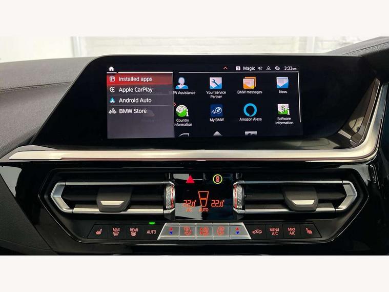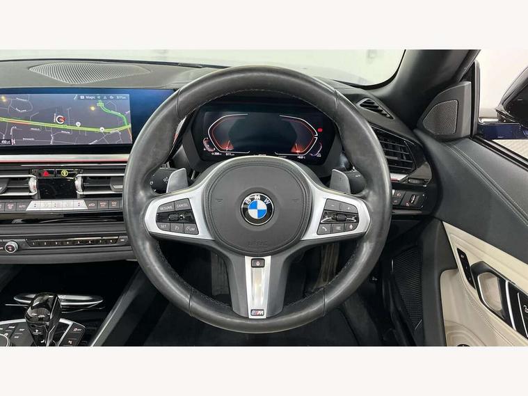 Active guard plus incl speed limit assist, lane departure warning with steering impulse and front collision warning with brake intervention, BMW ConnectedDrive online services, BMW Live Cockpit Professional with nav function/12.3" high resolution instrument +10.25" control display/Intelligent Voice Assist/2 USB/WiFi interface, BMW Teleservices, Condition based service, Electric power steering, Fuel gauge, iDrive touch controller with turn and press function, Instrument cluster, Language version English, Oil sensor for level and grade, warning by check control system, Oil temperature gauge, Optimum shift indicator, Pull away assistant, Run flat indicator, Speed limiter, Speedometer with mph readout, Tachometer, Variable sport steering, Double joint spring, Double VANOS, Drive performance control with ECO PRO comfort + sport mode, Eight speed steptronic sport transmission, with gearshift paddles, Electronic differential lock, Fuel tank breather system, High precision injection, M sport suspension, 2x USB Type C ports in front centre console for charging and data transfer, 2x USB Type C ports in rear centre console for charging, DAB tuner, USB connection, Auto dimming driver's door mirror, Automatic headlight beam throw control with load dependent regulating reaction, dynamic compensation of braking dive and acceleration squat, Door sill finishers with M designation, Door sill strips, Dynamic braking lights comprising activated hazard warning flashers, Electric folding door mirrors, Electric heated rear window, Exhaust tailpipe - split left and right, Extended high gloss shadowline exterior trim, Exterior mirror housing finished in body colour, Fingertip control / anti-trap function on electric window, Follow me home headlight function, Front and rear bumper system with replaceable deformation elements, Green tinted heat protection glazing, Heated windscreen washer jets, Interior rear view electrochromatic mirror with automatic anti dazzle function, Kidney grille in mesh design, LED 3rd brake light, LED daytime driving lights, LED Indicators, LED rear lights, Lightweight engineering, M aerodynamic body kit, M Sport exterior styling, Matt black window recess finisher, Model logo, Rain sensor, Rear boot, Reversing light, Tailgate release handle, Two stage brake force display, Visible VIN plate, Welcome lighting, Wind deflector, Windscreen wipers with adjustable interval, 12V power point in luggage area, 12V power socket in front storage compartment, 2 cup holders in front centre console, Activation of interior lighting, Additional storage compartment - 4 lashing eyes, strap and storage net, Ambient lighting, Battery in luggage compartment, BMW ID, Child seat ISOFIX attachments for passenger seat, Driver and front passenger heated seats, Front and rear armrests integrated in door trim + centre console includes storage compartment and rear centre armrest includes 2 cupholders, Front and rear velour floor mats, Front headrests, Height adjustable mechanically and infinitely variable steering column, Illuminated glovebox, Luggage compartment light, M sport leather steering wheel, M Sport seats for driver and passenger, Microfilter and active carbon filter, Multifunction steering wheel, Single front passenger seat, Sunvisors with vanity mirrors and ticket pocket, Through load system, Two zone automatic air conditioning, Vernasca leather upholstery, Connected package professional - Z4, 3 point front seat belts, Airbags - Front driver and passenger, front and side impact protection, Anti lock braking system (ABS) with brake assist, Automatic Stability Control (ASC), BMW emergency call, Brake energy regeneration, Braking readiness, Cornering brake control (CBC), Crash sensor activating central locking release, hazard warning lights, fuel cut off, interior lighting, safety battery terminal clamp and airbags, Curtain airbags, Deactivation of fuel pump in the event of a crash, Dry braking, Dynamic brake control, Dynamic stability control + (DSC+), Dynamic Traction Control - DTC, Electromechanical parking brake with automatic drive away release and auto hold function, Front and rear brake discs with interior ventilation, Head airbags, Plastic fuel tank, Pyrotechnic seat belt tensioners, Roll over protection, Seat belt force limiter, Seat belt stopper, Seat occupancy protection, Side airbags for driver and passenger, Two tone horn, Tyre pressure monitoring with three level warning strategy, Warning triangle, Centre lock switch, Closing system with central locking, Electronic vehicle immobiliser, Start/stop button with Comfort Go keyless engine start and auto Start/stop deactivation button, Thatcham cat 1 remote alarm, Sensatec dashboard, 18" Double spoke alloy wheels in bicolour ferric grey - style 798M, Reduced rolling resistance tyres, Tool kit, Tyre repair kit,
