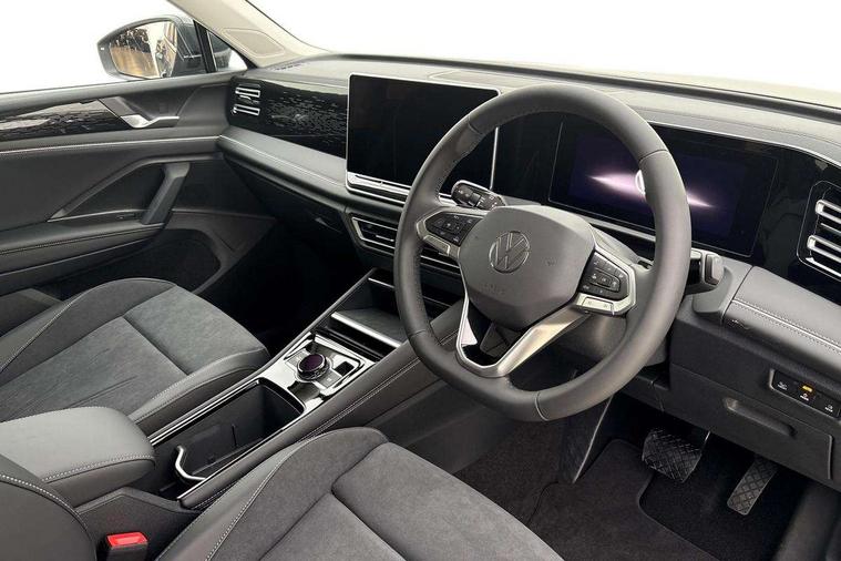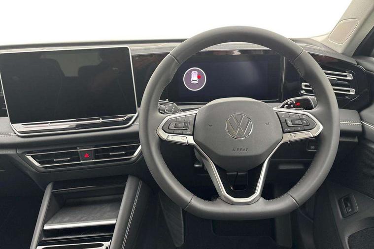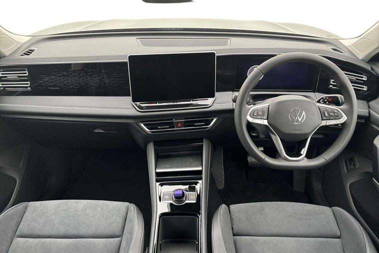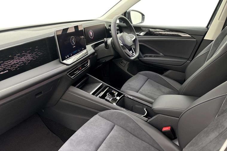 Adaptive cruise control (ACC), Advanced driver attention and drowsiness monitor, Bluetooth mobile phone interface, Car2X technology, Comfort drive travel assist, lane keeping system, lane assist and emergency assist, Digital Cockpit Pro - 10.25" high resolution dash display screen with customisable menus and information, Dynamic road sign display, E-Sim card for online connectivity, eCall emergency call service, Front Assist - Autonomous emergency braking with pedestrian and cyclist monitoring, Lane change system, Side assist, Rear traffic alert and Exit warning system, Multifunction front facing camera, Oncoming vehicle braking when turning including swerve support, Park assist pro with park distance control (Remote park assist), Power assisted steering with speed sensitive, Start/stop system with regenerative braking, Warning signal and warning light for front and rear seatbelts not fastened, Wireless App-Connect, Front wheel drive, Digital radio reception (DAB), Diversity antenna for FM reception, Air intake with Chrome trim, Ambient lighting with logo projection, Auto dimming interior rear view mirror, Automatic headlight control system, Body colored bumpers in R-Line style, Body coloured door handles, Body-coloured exterior mirror housings, Chrome moldings on the side windows, Coming/leaving home lighting function, Heat insulating glass in side and rear windows, Heated rear window, Heated windscreen washer jets, High level 3rd brake light, Illuminated door handle recesses, Illuminated lightline between headlamps, Laminated safety glass from B-pillar backwards 90% tinted, Laminated safety glass windshield, LED Day time running light, Rain sensor windscreen wipers, Rear fog light on one side, reversing light on both sides, Rear side wing doors, Rear wiper, Silver roof rails, 12V outlet in center console rear and in luggage compartment, 12V socket in centre console, 3 bench rear seats in 2nd row, Air care climatronic 3 zone air conditioning system with rear air conditioning control panel, Carpet mats, front and rear, Centre console with illuminated storage compartment with sliding cover and two drinks holders, Ceramique headlining, Chrome elements on the mirror switch and power window switches and door pulls, Door and side trim panel with leatherette insert, Door sill protectors, Front centre armrest, Interior ambient lighting with 30 colour options, ISOFIX anchors for child seats on outer rear seats and front passenger seat compatible with i-Size, Mechanical rear seat release, Power adjustable lumbar support in front, Rear bench seat, split folding, longitudinally movable and folding with load-through hatch and centre armrest, Safety optimised front head restraints, Single front passenger seat, Sports comfort seats in front, Sun visors with illuminated vanity mirrors, Three rear head restraints, Variable luggage compartment floor, Comfort package with park assist plus and Safelock - Tiguan, Driver assistance package - Tiguan, 3 point seat belt for centre rear seats, 3 Point seat belts in front with pretensioners, 3 point seatbelts in outer rear with ECE label, Driver and front passenger airbag with front passenger airbag deactivation, Electronic parking brake with auto hold, Front and rear curtain airbags, Front and rear side airbags, Front centre airbag, Front disc brakes, Hill start assist, Manual child proof rear door locks, Rear disc brakes, Two tone horn, Warning triangle, Decorative inserts Cross in dash and front door panels, Interior door handle in matte chrome, Soul instrument panel,
