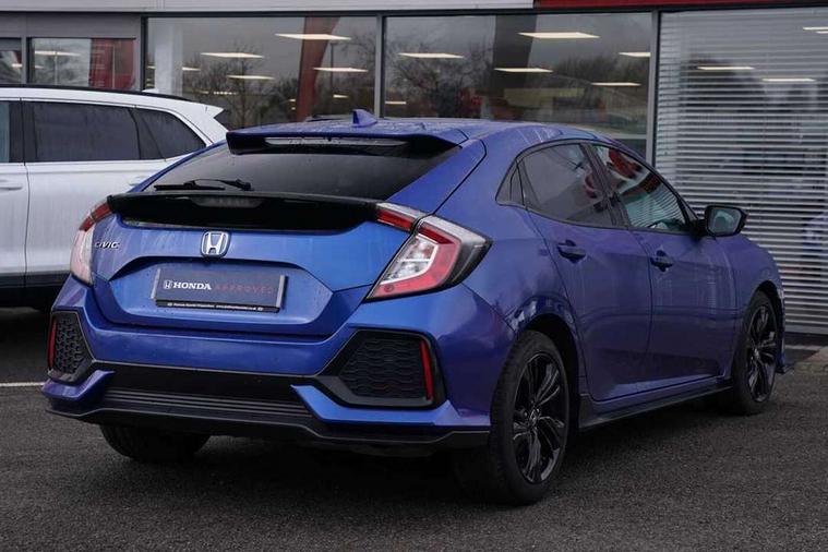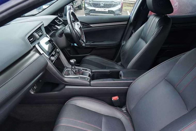 7" touch screen, Adaptive cruise control, Apple car play/Android Auto, Blue dashboard illumination, Bluetooth hands free telephone connection, Colour driver's information system display, Easy fuel capless refuelling system, Economy mode, Electric power steering, Emergency stop signalling system, Forward collision warning, Front and rear parking sensors, Idle stop, Lane departure warning system, Lane keep assist, Rear parking camera, Road departure mitigation, Speed limiter, Traffic sign recognition, Vehicle stability assist, 'Shark fin' mobile antenna, 2x USB and HDMI, 8 Speakers, Connect with Garmin sat nav, touch screen, internet radio/MP3/CD, Aha app, internet, Digital Audio Broadcast (DAB) Tuner, Steering wheel mounted audio controls, Automatic coming/leaving home lighting function, Automatic headlights with dusk sensor, Automatic rain sensing wipers, Automatic retractable door mirrors, Black door mirrors with integrated indicators, Black grille, Body colour door handles, Body coloured bumpers, Electric adjustable heated door mirrors, Electric front/rear windows/one touch operation, Exterior sport garnish includes front and side sills, Front fog lights, Front spoiler, Halogen headlights, High beam assist, High mount brake light, LED daytime running lights, Piano black garnish window surround, Rear wiper, Remote control door mirrors, Remote window closing, Side under spoiler, 4 Trunk cargo hooks, Alloy pedals, Ambient lighting, Centre console storage and sliding armrest, Driver seat back pocket, Driver's electric lumbar adjustment, Driver's seat height adjustment, Dual climate control air conditioning system, Electric lumbar adjustment on passenger's seat, Front accessory power socket, Front map lights, Front/rear courtesy lights, Gear shift indicator, Glovebox light, Isofix system on outer rear seats, Leather gear knob, Leather steering wheel with red stitching, Leather upholstery with red stitching, Passenger seat back pocket, Rear accessory power socket, Rear armrest with cupholder, Sunvisors with illuminated vanity mirrors, Three height adjustable rear head restraints, Tilt/telescopic adjustable steering wheel, Tonneau cover, Trunk light, 15" solid rear disc brakes, 15" Vented front disc brakes, 3 Point ELR front seat belts x2, 3 Point ELR rear seat belts x3, ABS+EBD+Brake assist, Anti-whiplash front headrests, Collision mitigation braking system, Deflation detection system, Dual front SRS airbags, Electronic parking brake with auto hold, Front and rear curtain airbags, Front seatbelt pretensioners, Front side airbags, Hill start assist, Passenger airbag deactivate switch, Tyre pressure warning, ECU immobiliser, Honda super locks, Remote central locking with 2 remote folding keys, Security alarm, Selectable door unlock, Ultrasonic alarm, 17" Dynamic exclusive black alloy wheels, Tyre repair kit,